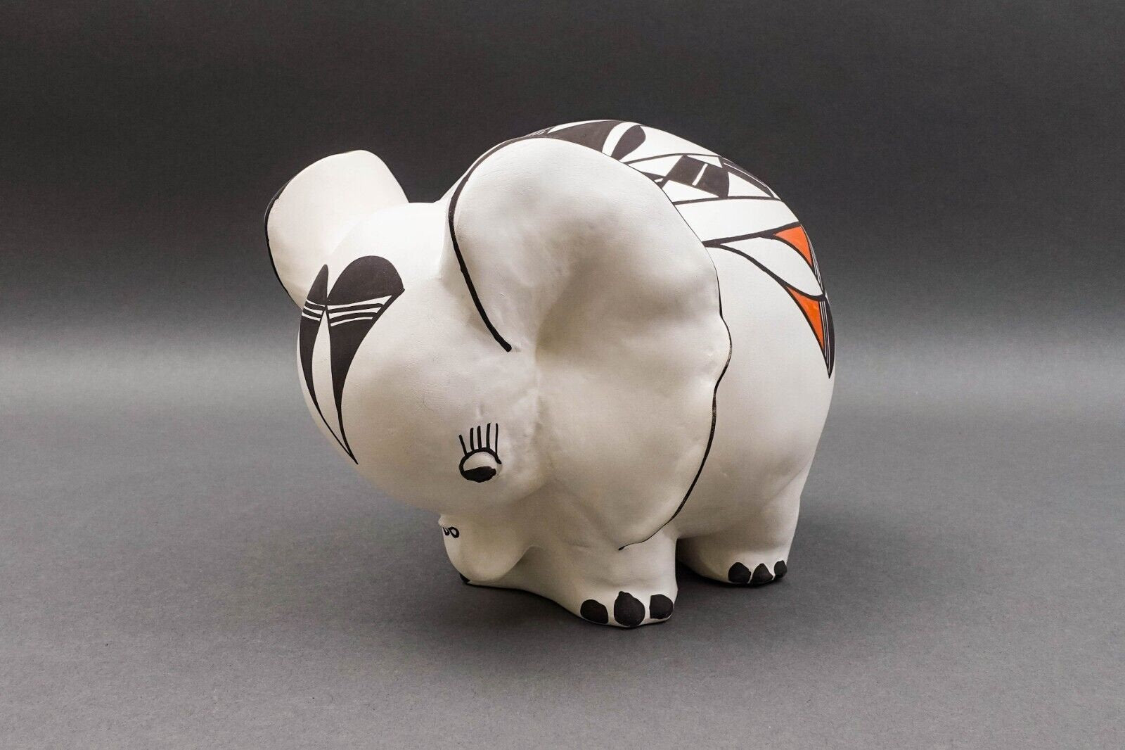 Acoma Pueblo Native American RLC Signed Vintage Elephant Pottery Figurine Effigy