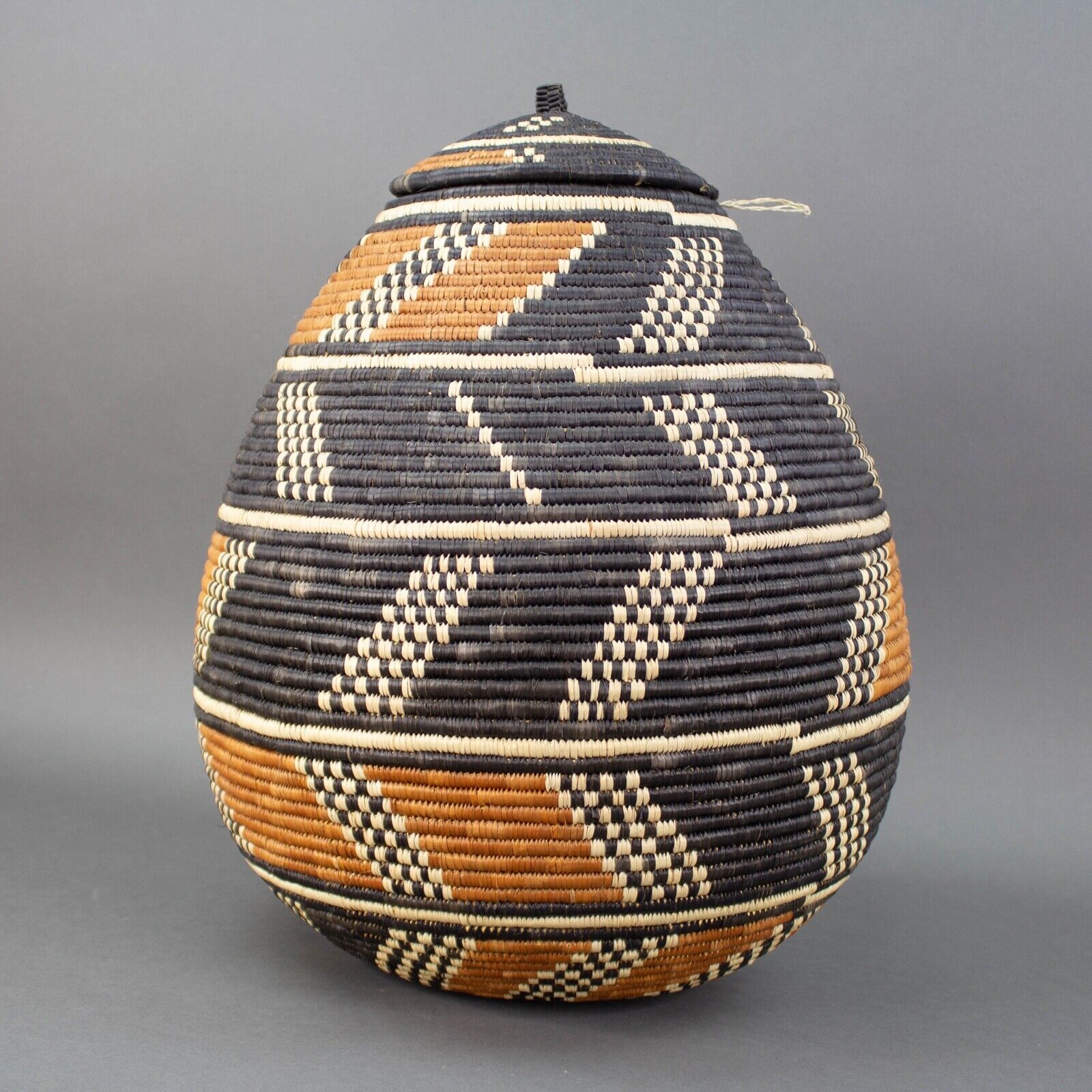 African Traditional Handwoven Zulu Large Basket 19" X 15"