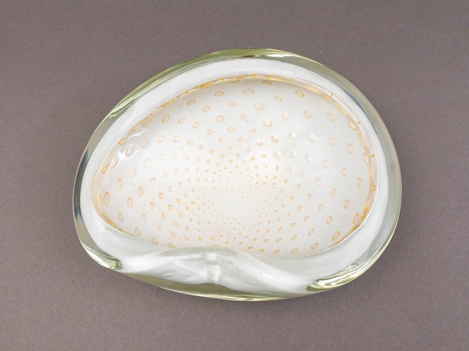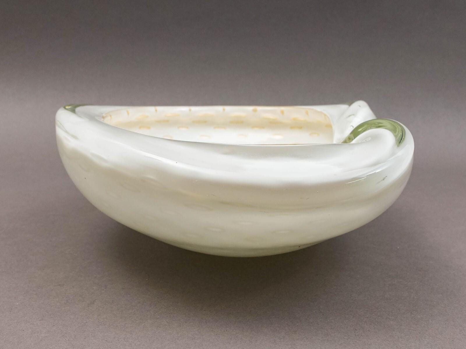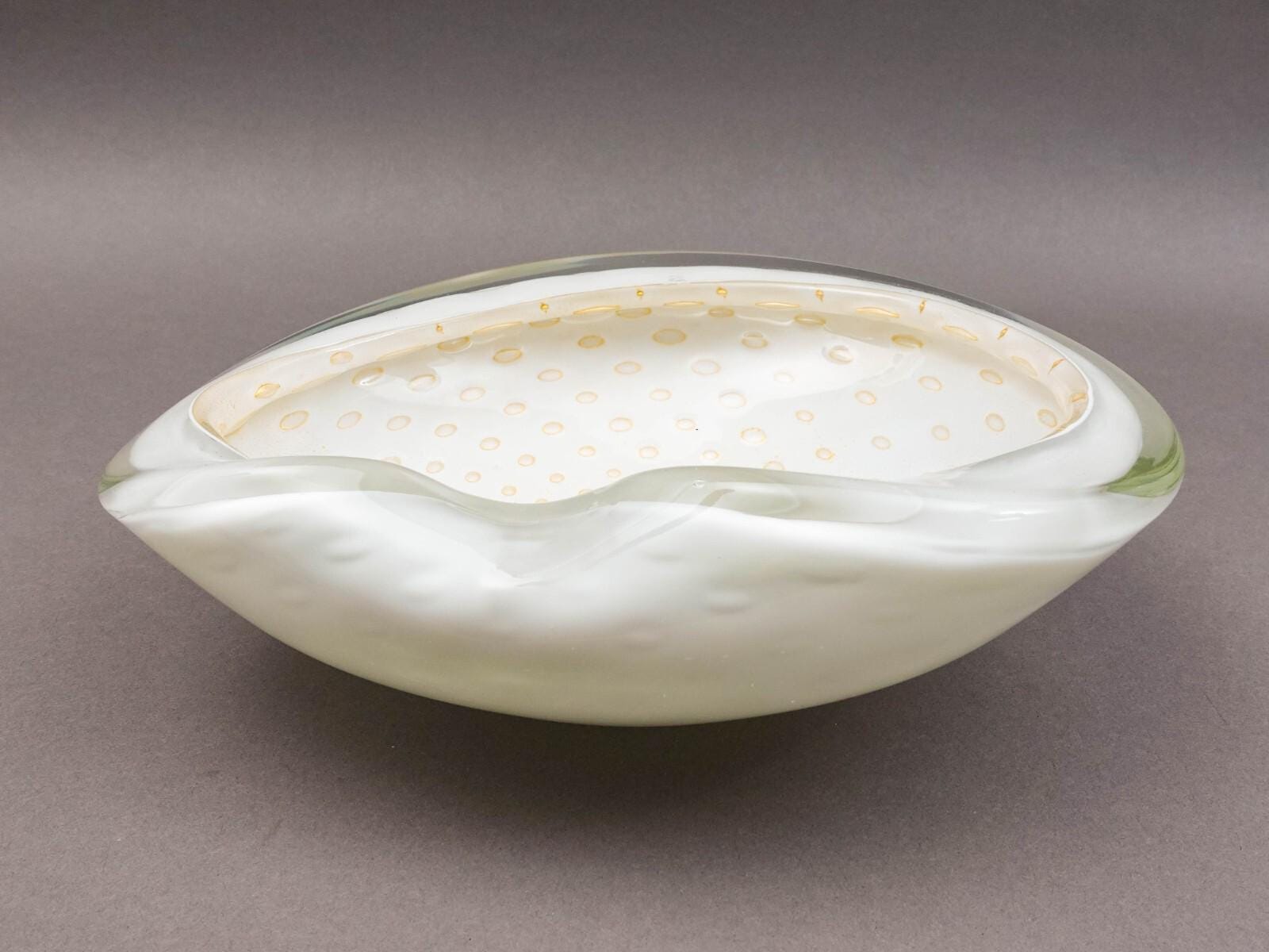 Alfredo Barbini Murano Italy MCM Bullicante White Gold Flecks Art Glass Bowl