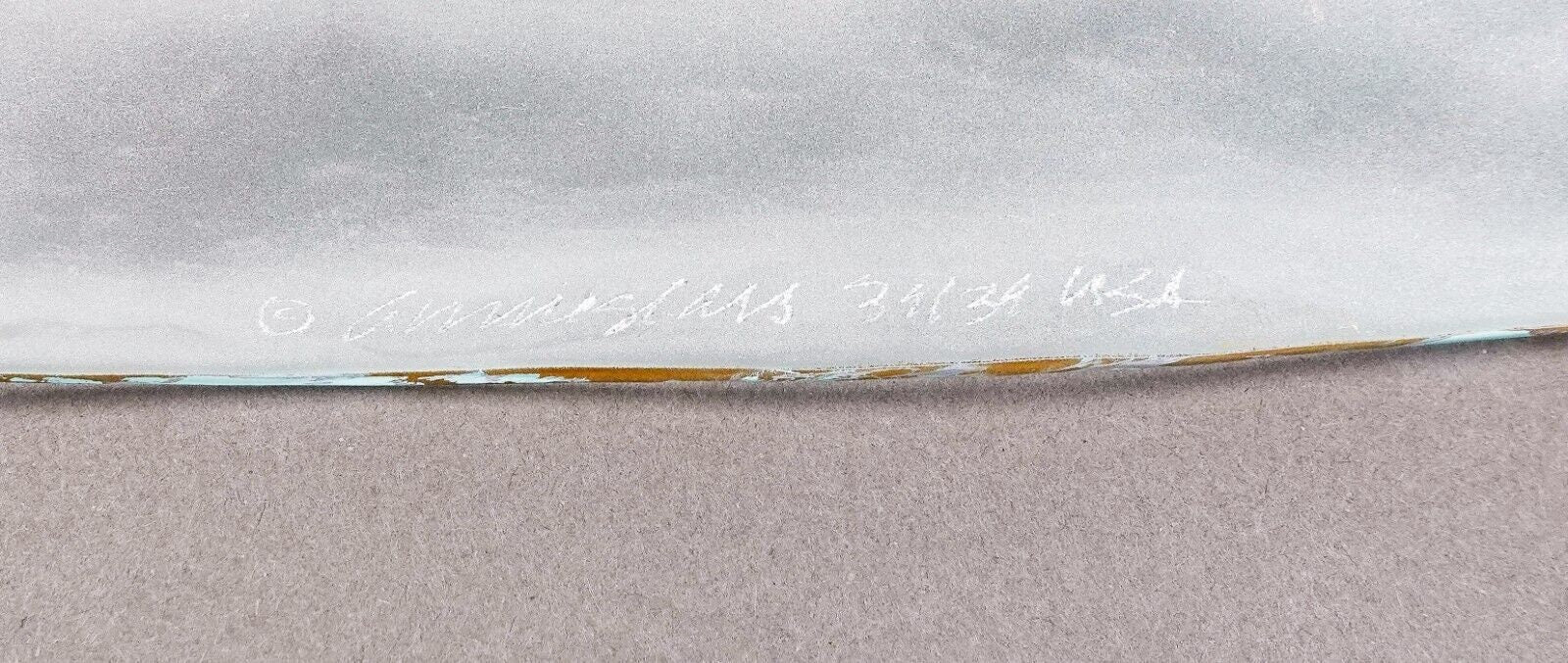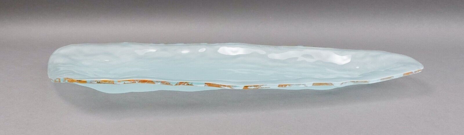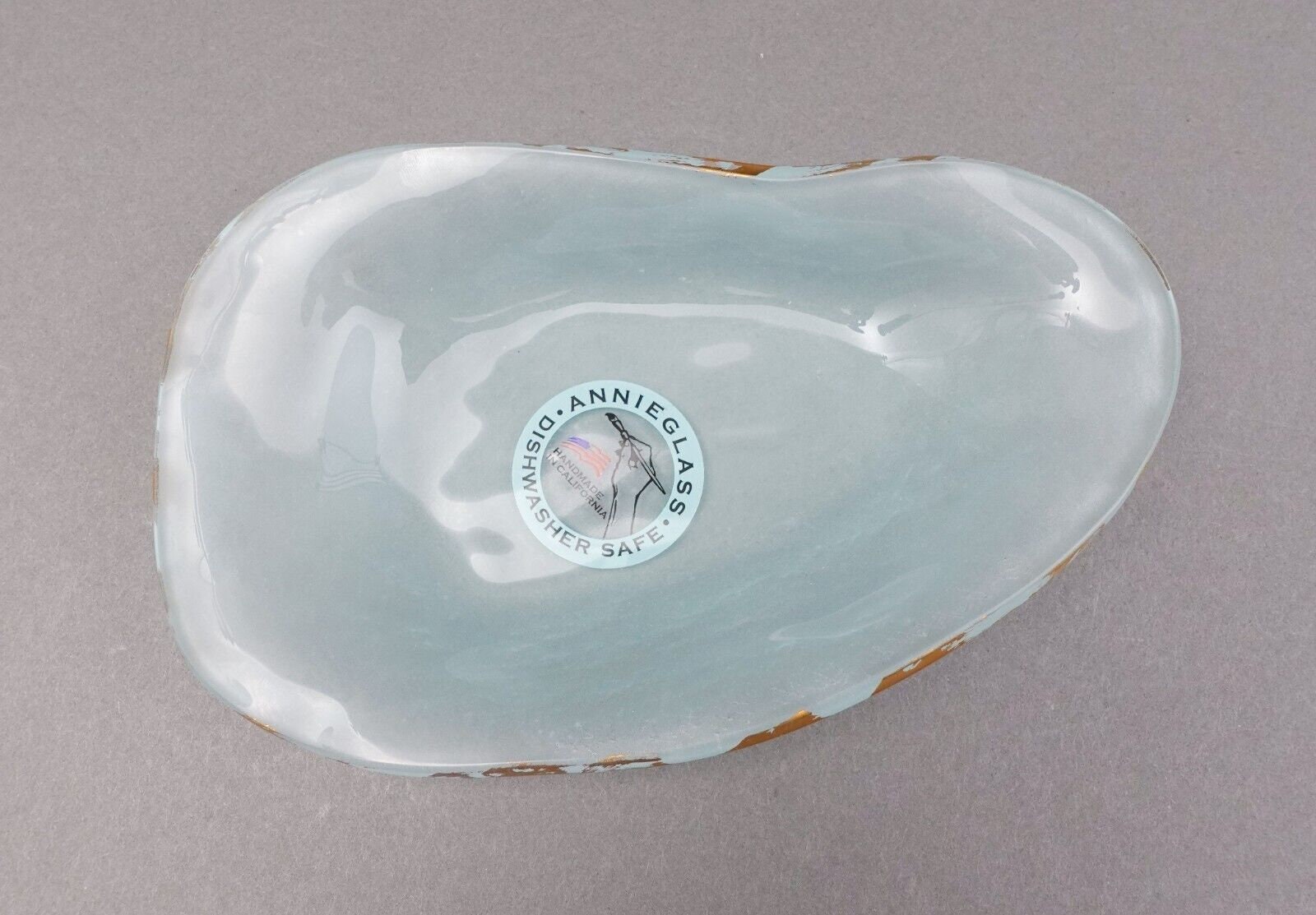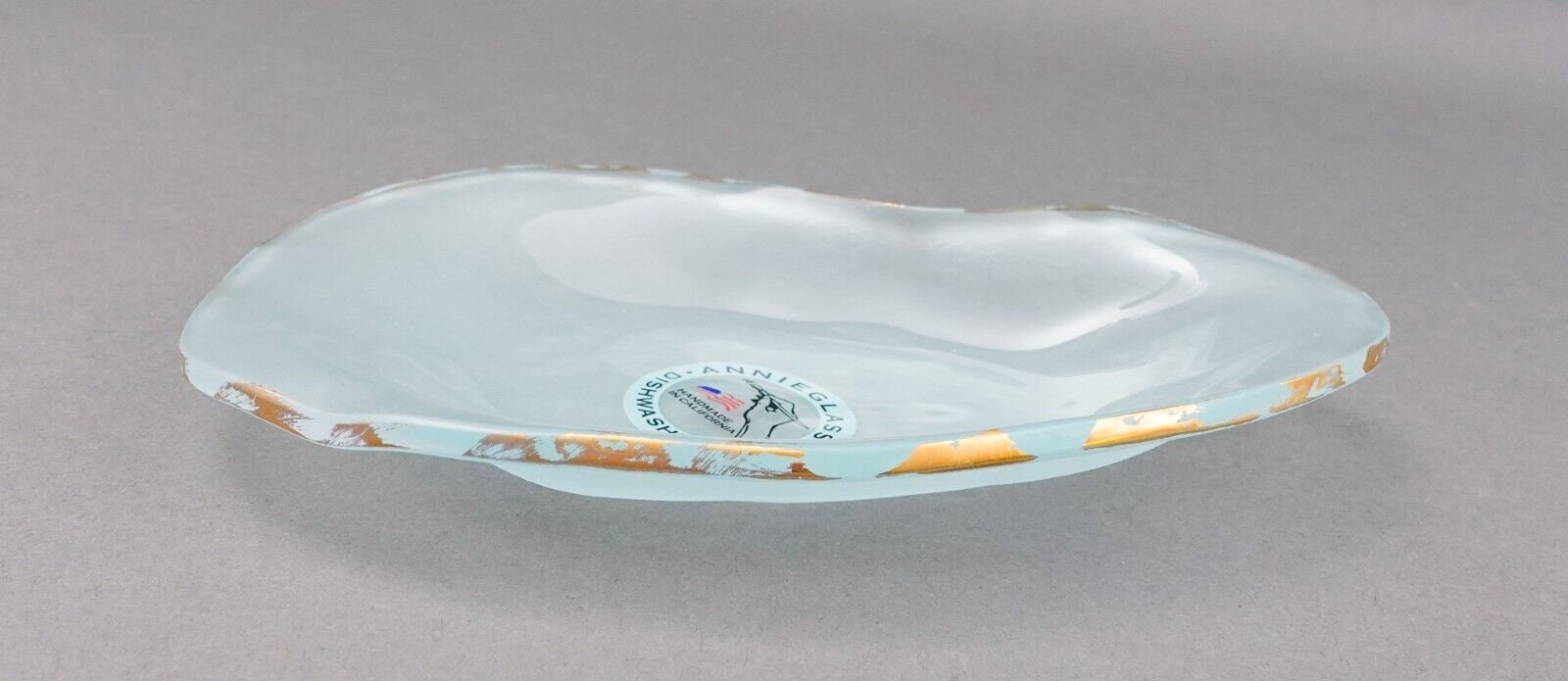 Annieglass Signed Tiburon Coquina Shell Series Frosted Art Glass Gold Rim Tray Set Of 2.