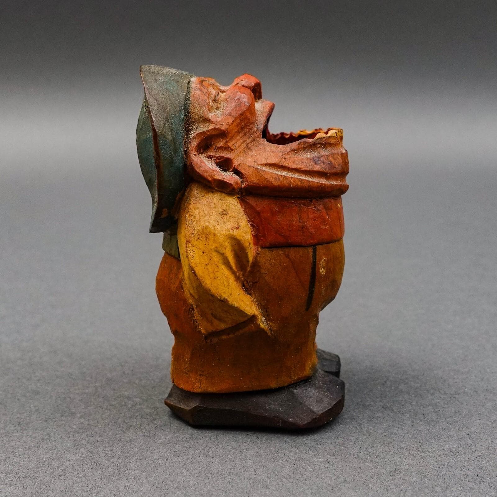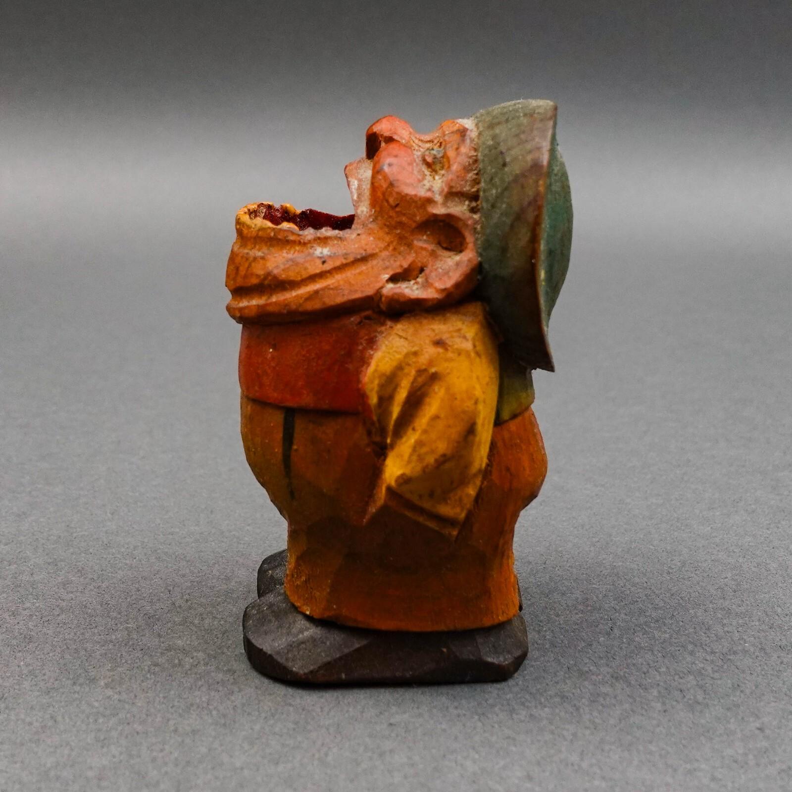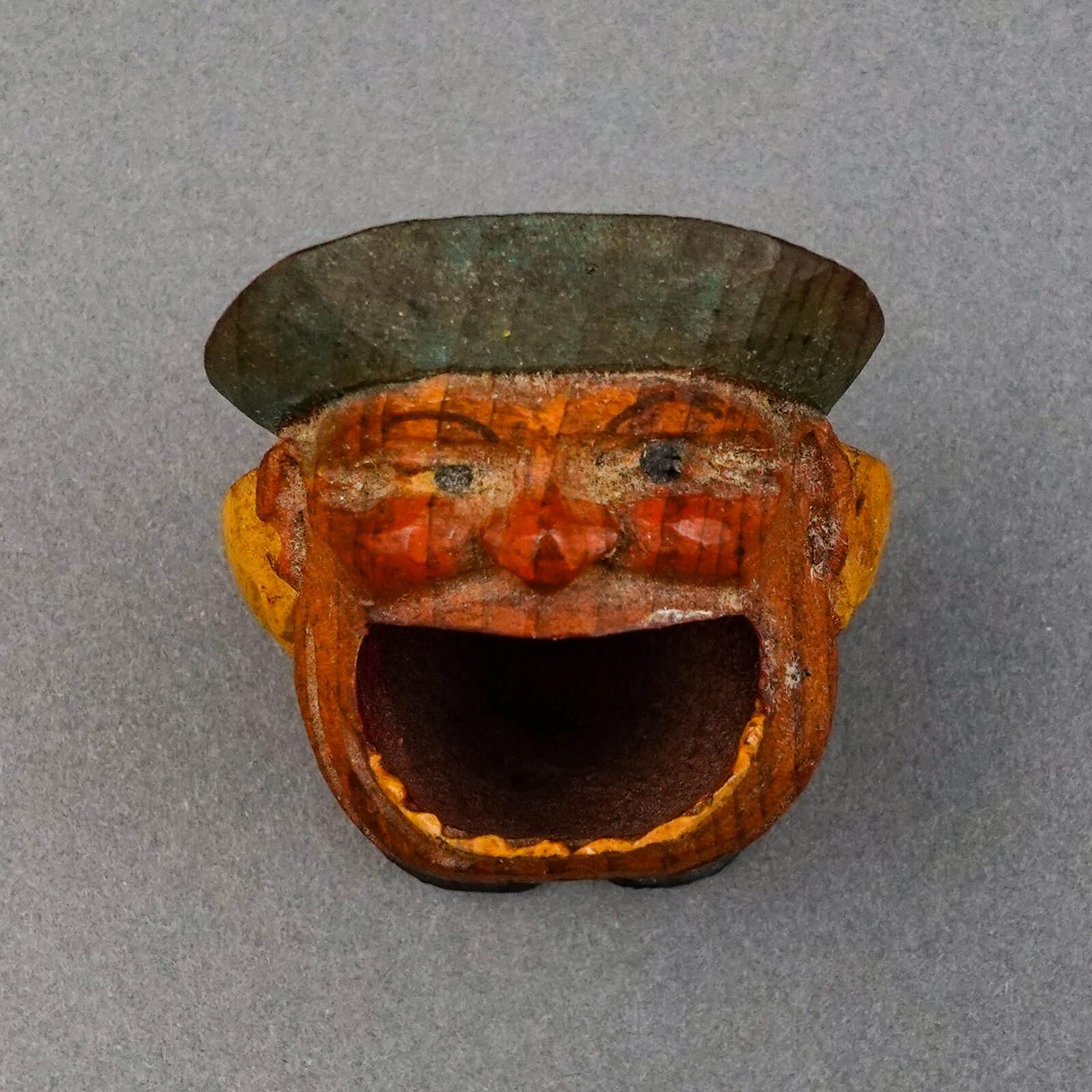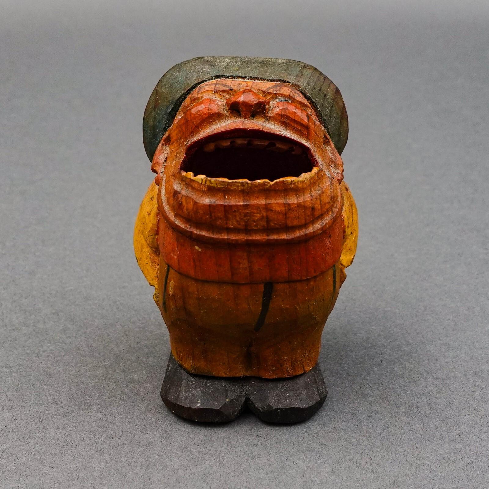 Anri Italy Early Vintage Hand Carved Wood Big Mouth Toothpick Match Holder