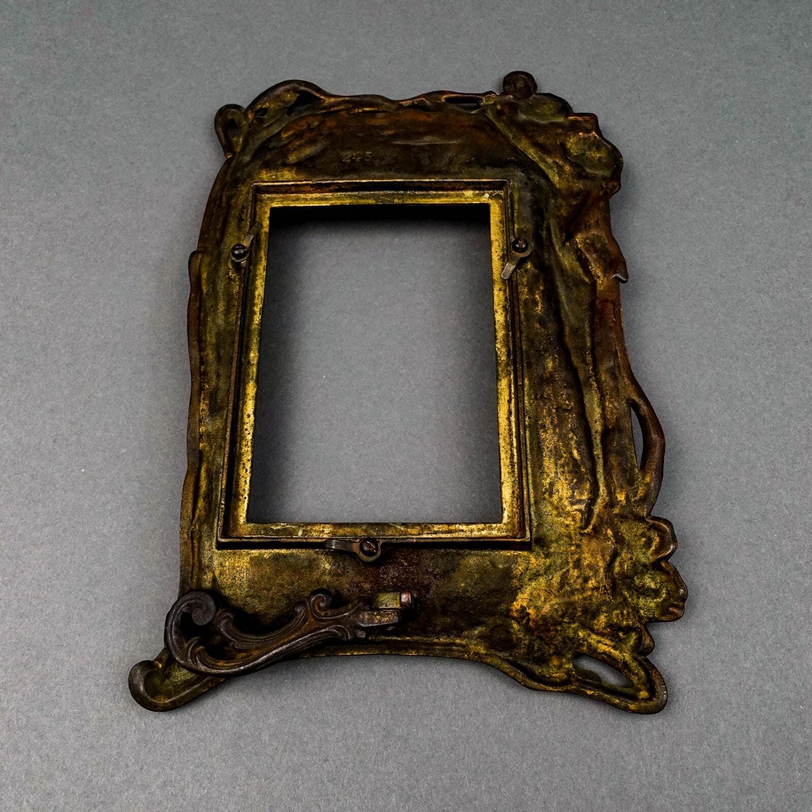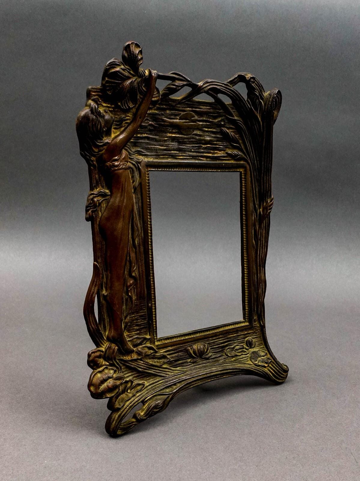 Antique Cast Bronze Art Nouveau Maiden 4" x 6" Picture Photo Easel Frame