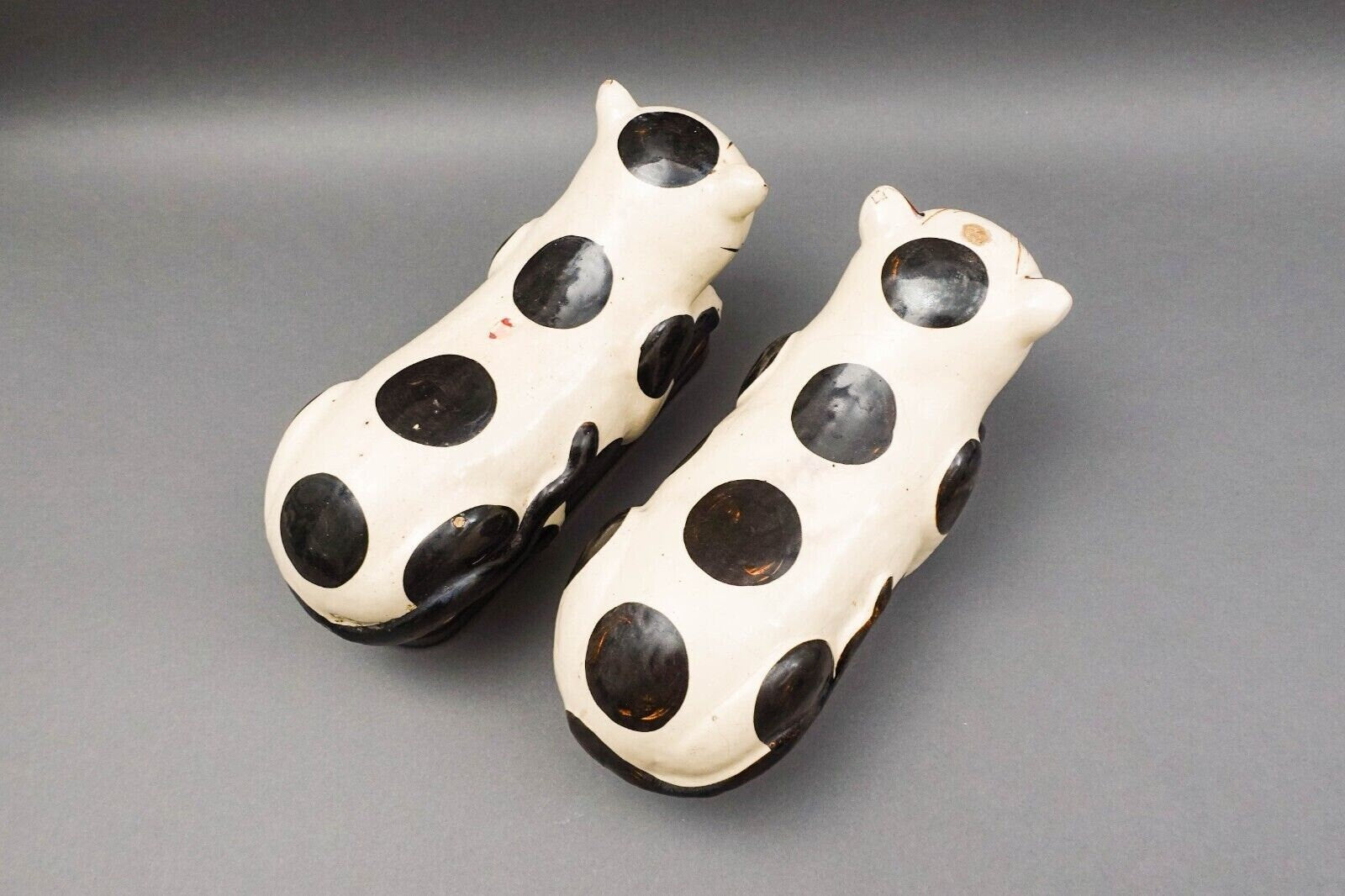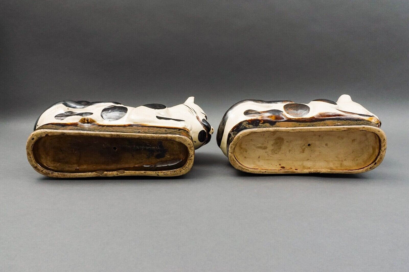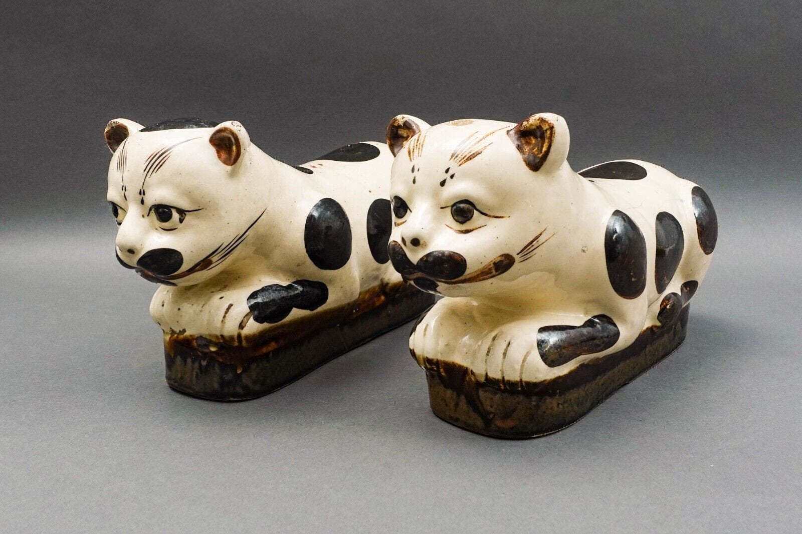 Antique Chinese Large Hand Painted Cat Cizhou Stoneware Pillow Headrest Pair. Chinese export wax seal on one.