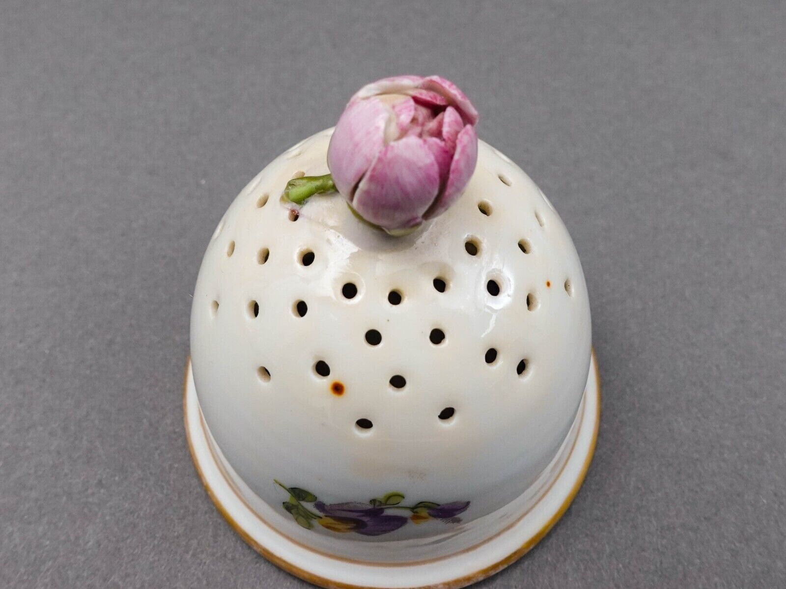 Antique Hand Painted Floral Porcelain Muffineer Sugar Shaker Caster (Read)