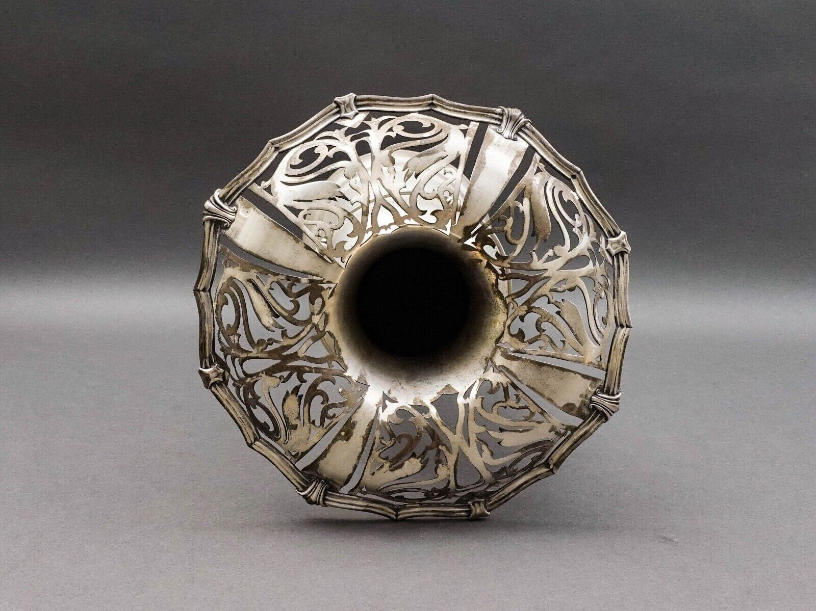 Antique Monumental Hallmarked Sterling Silver Art Nouveau Openwork Everted Rim Vase. Monogram To Base.