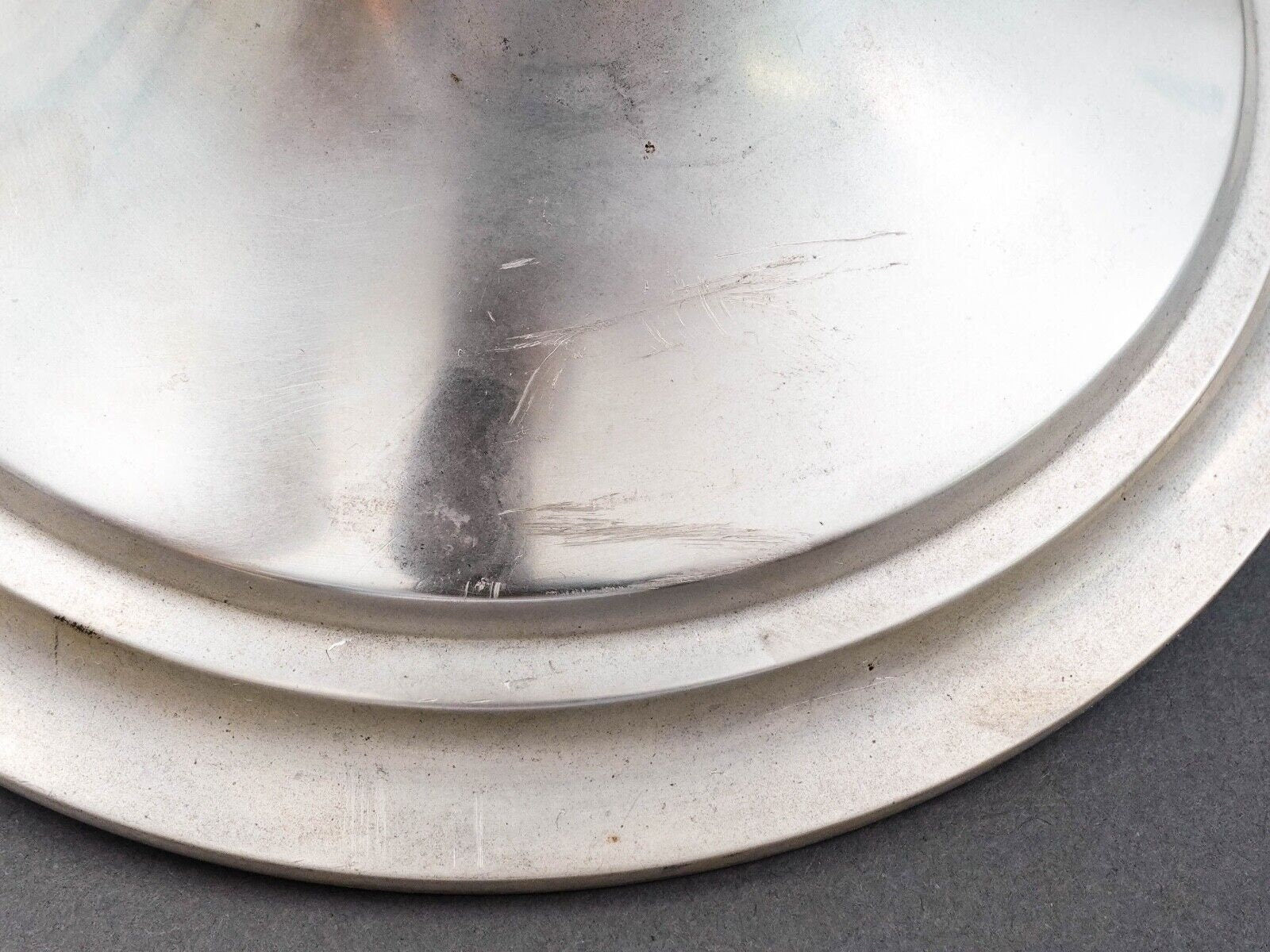 Measures approximately 9 1/4" diameter, 17 1/2" high. Weight 1439 GramsVery good pre-owned condition. Item is being sold as found.Some patina, scratches small dent to bottom edge near front right of monogram only seen under close inspection,some splits to thin metal on top near inner middle.Overall fantastic appearance!!!