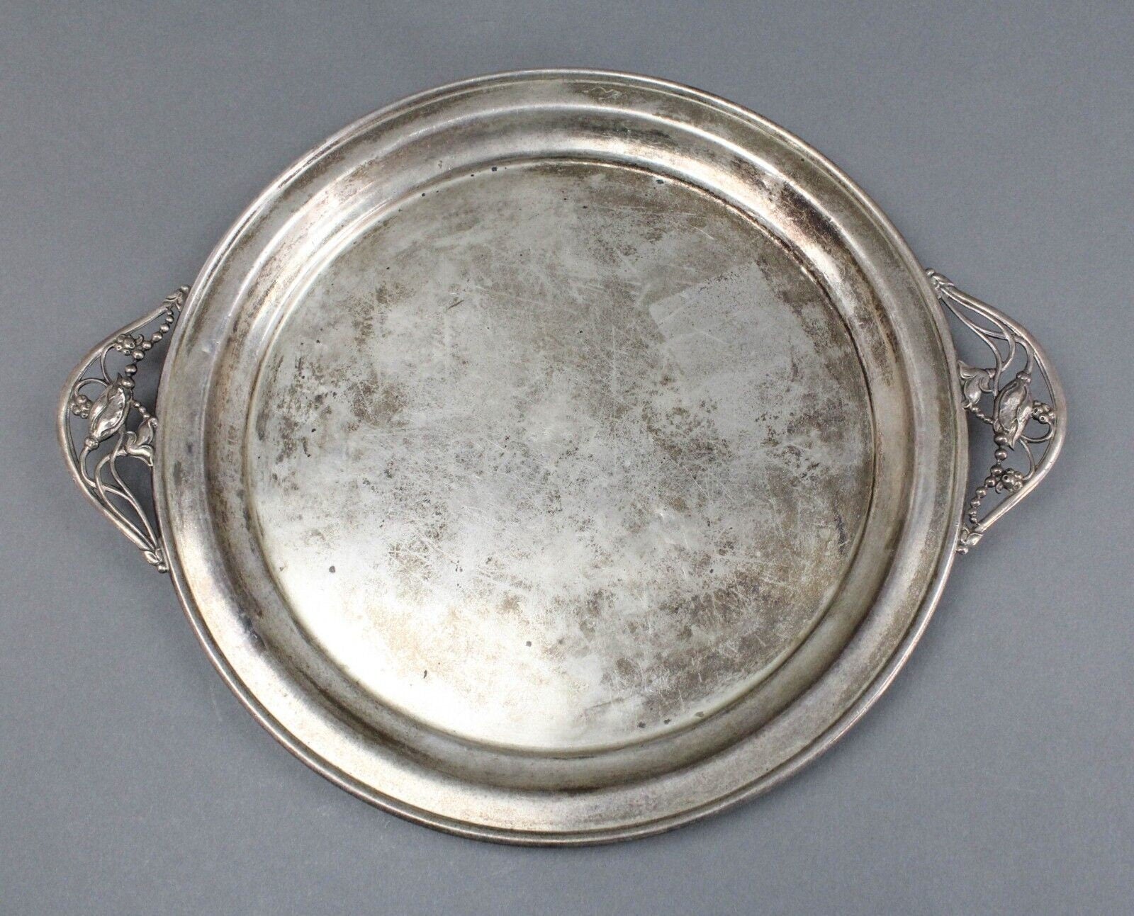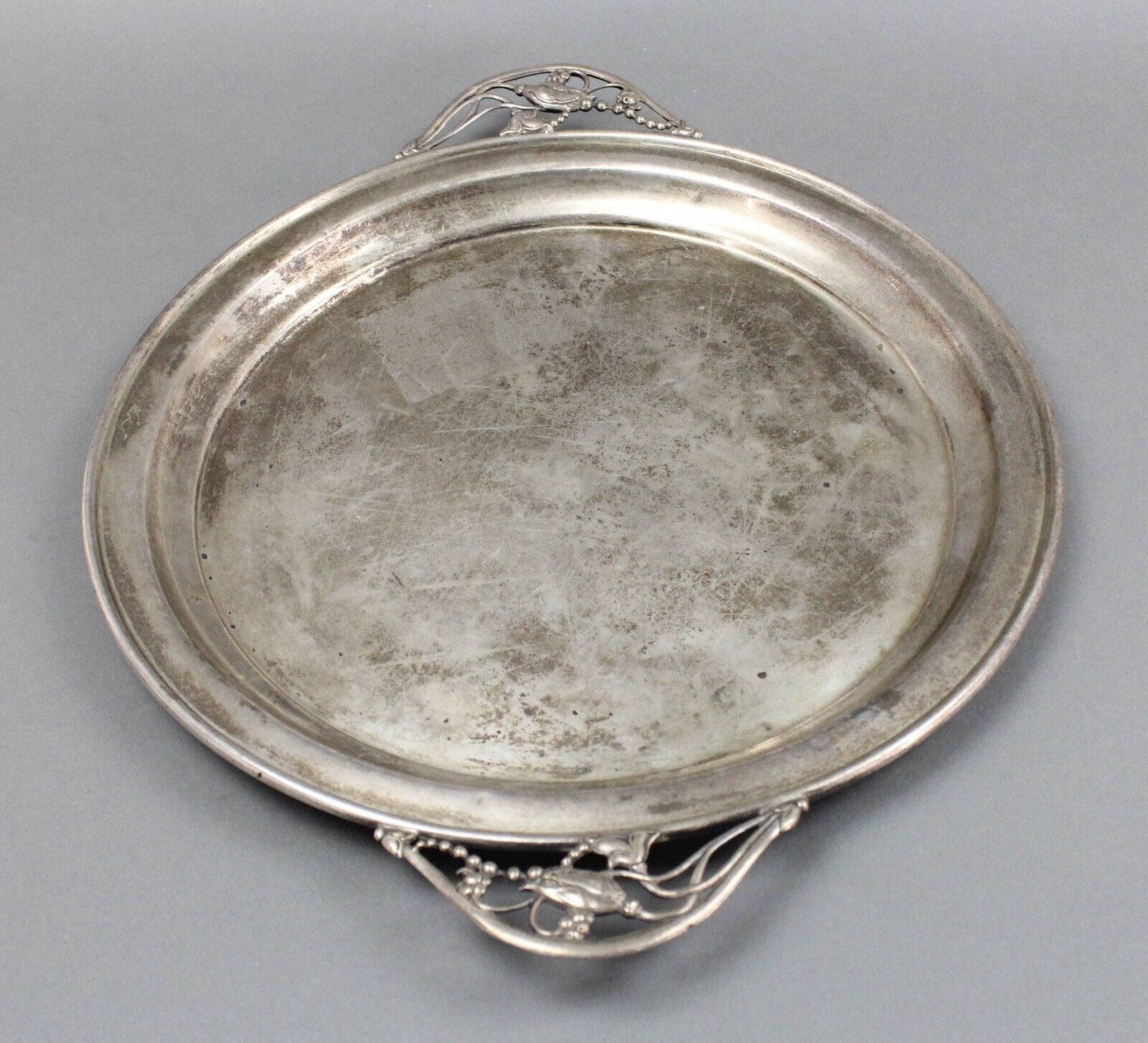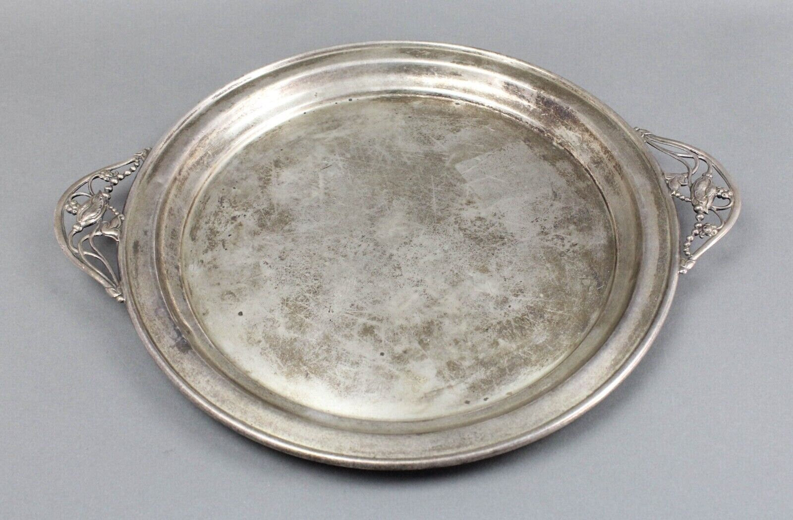 Antique NS 735 Sterling Signed Silver Floral Blossom George Jensen Style Handled Serving Platter Tray 1015 Grams.