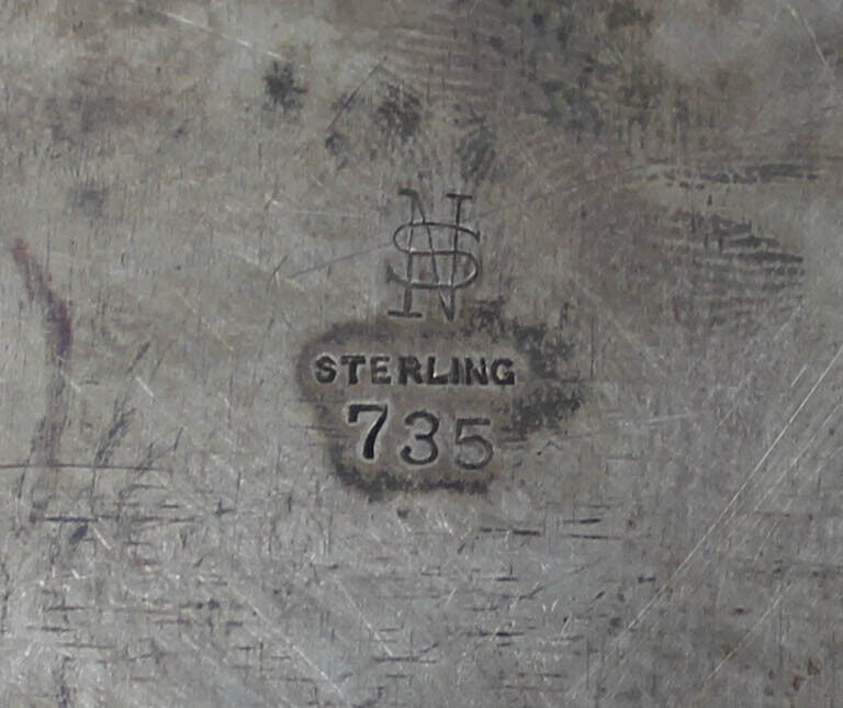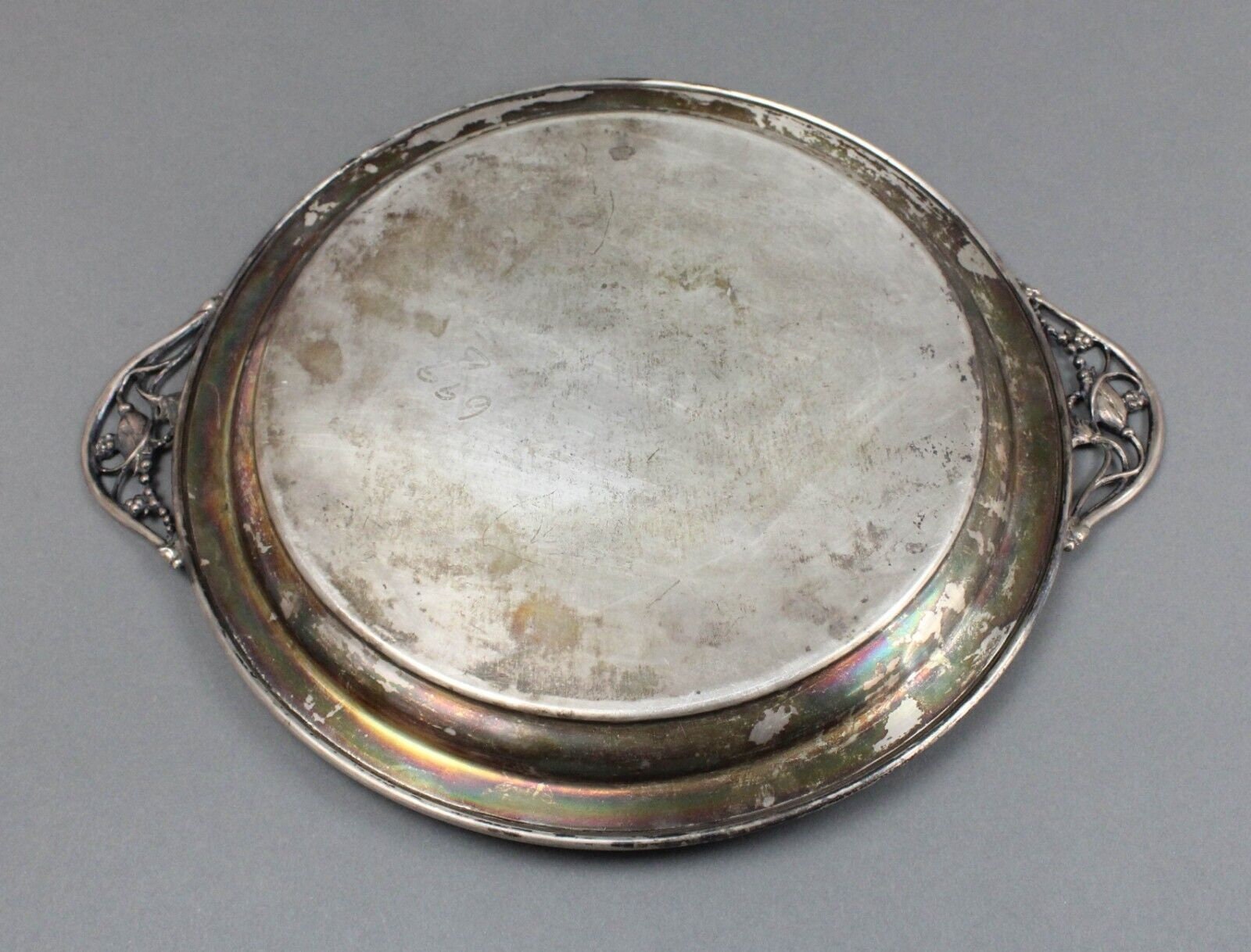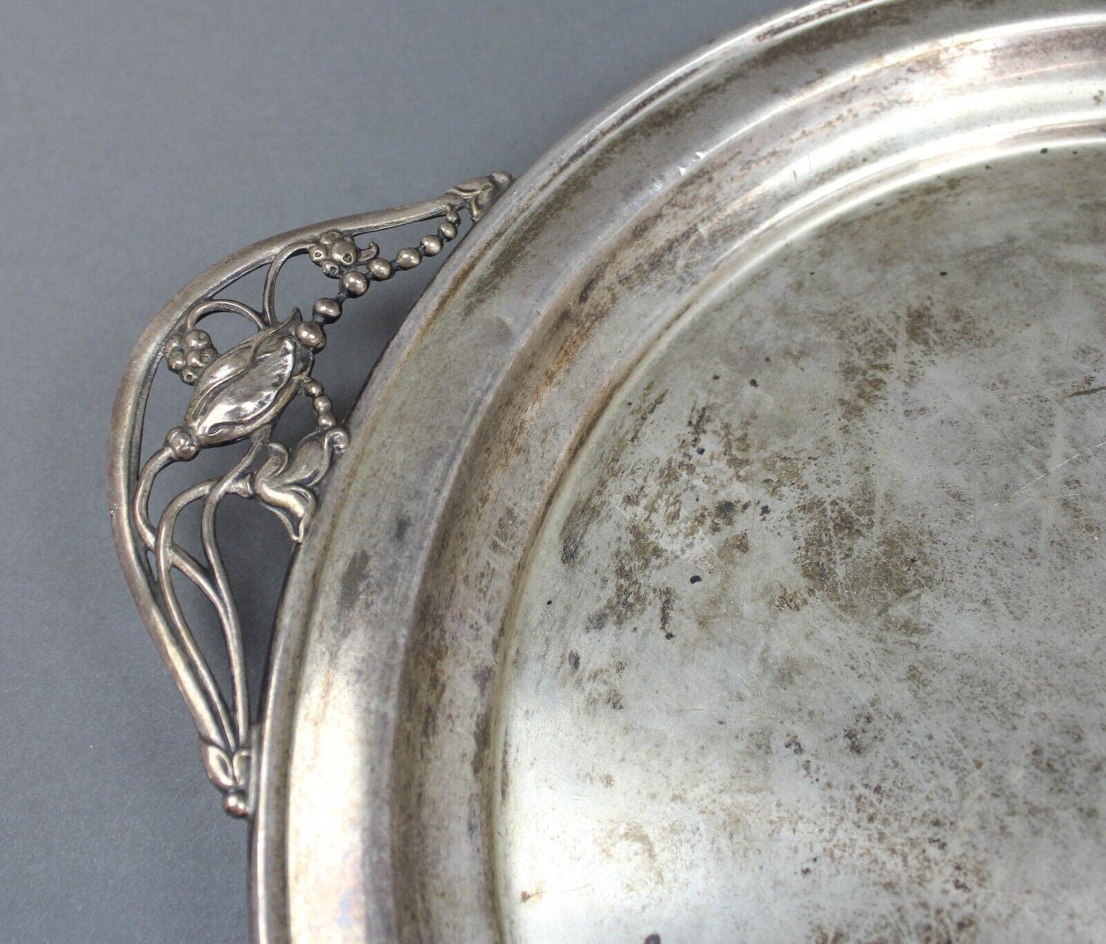Antique NS 735 Sterling Signed Silver Floral Blossom George Jensen Style Handled Serving Platter Tray 1015 Grams.