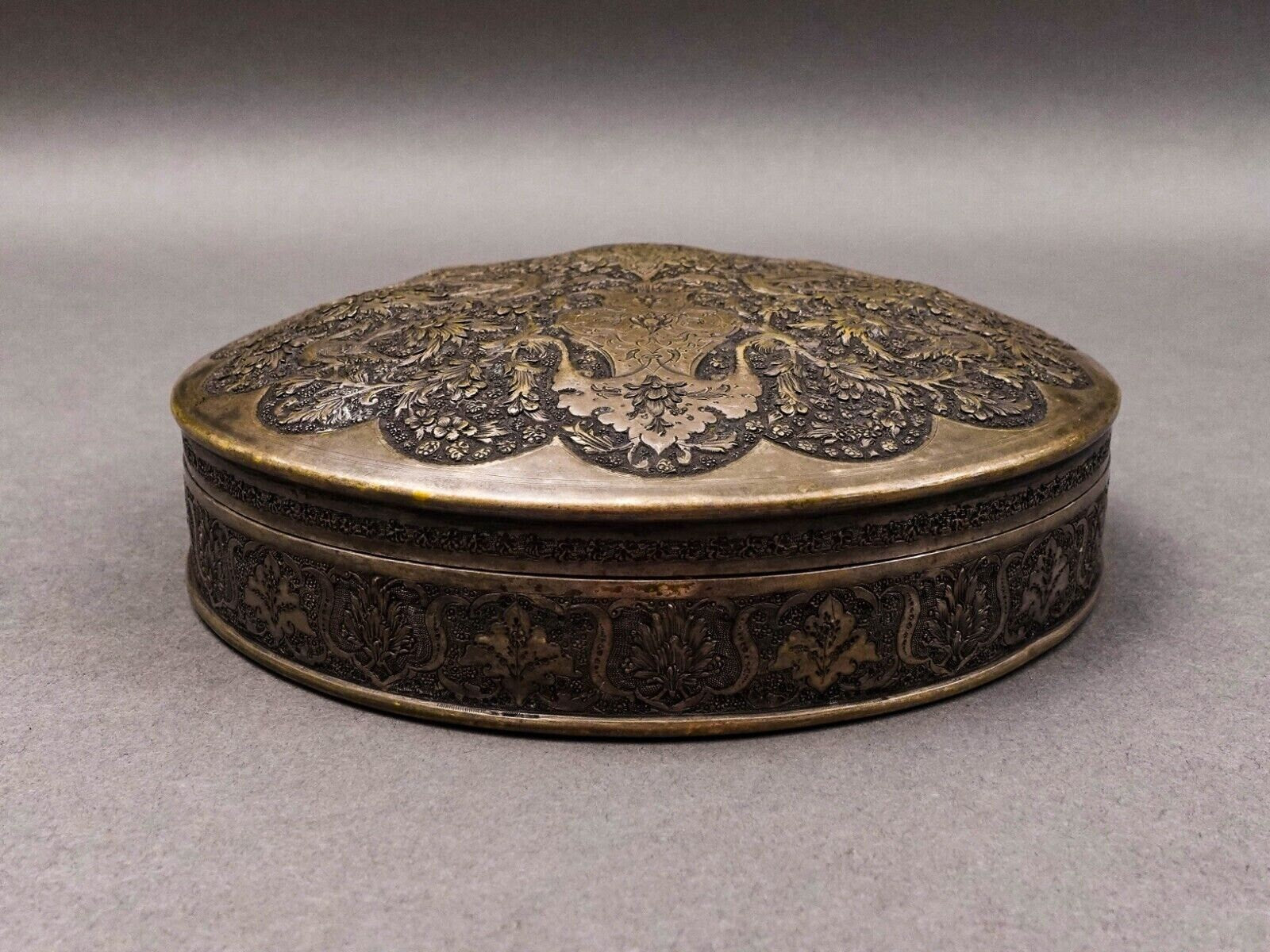 Antique Persian Islamic Middle East Silver Repousse Round Trinket Box 425 Grams