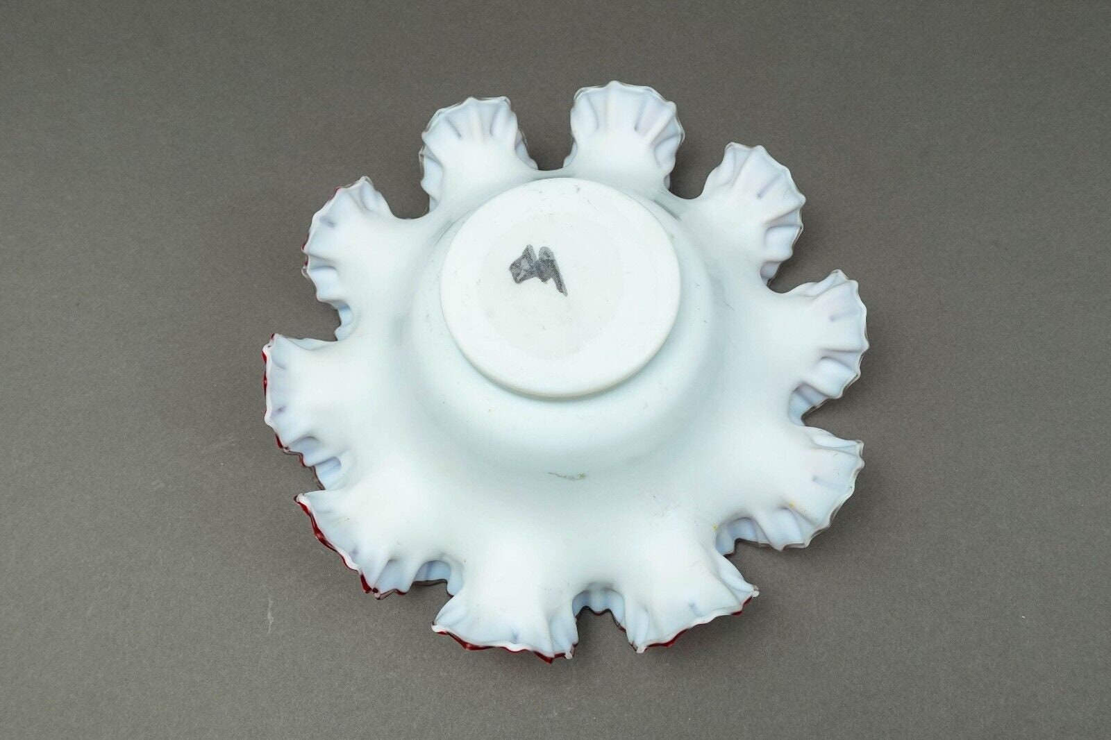 Antique Victorian Hand Painted Cranberry Ruffled Edges Glass Brides Basket Bowl.