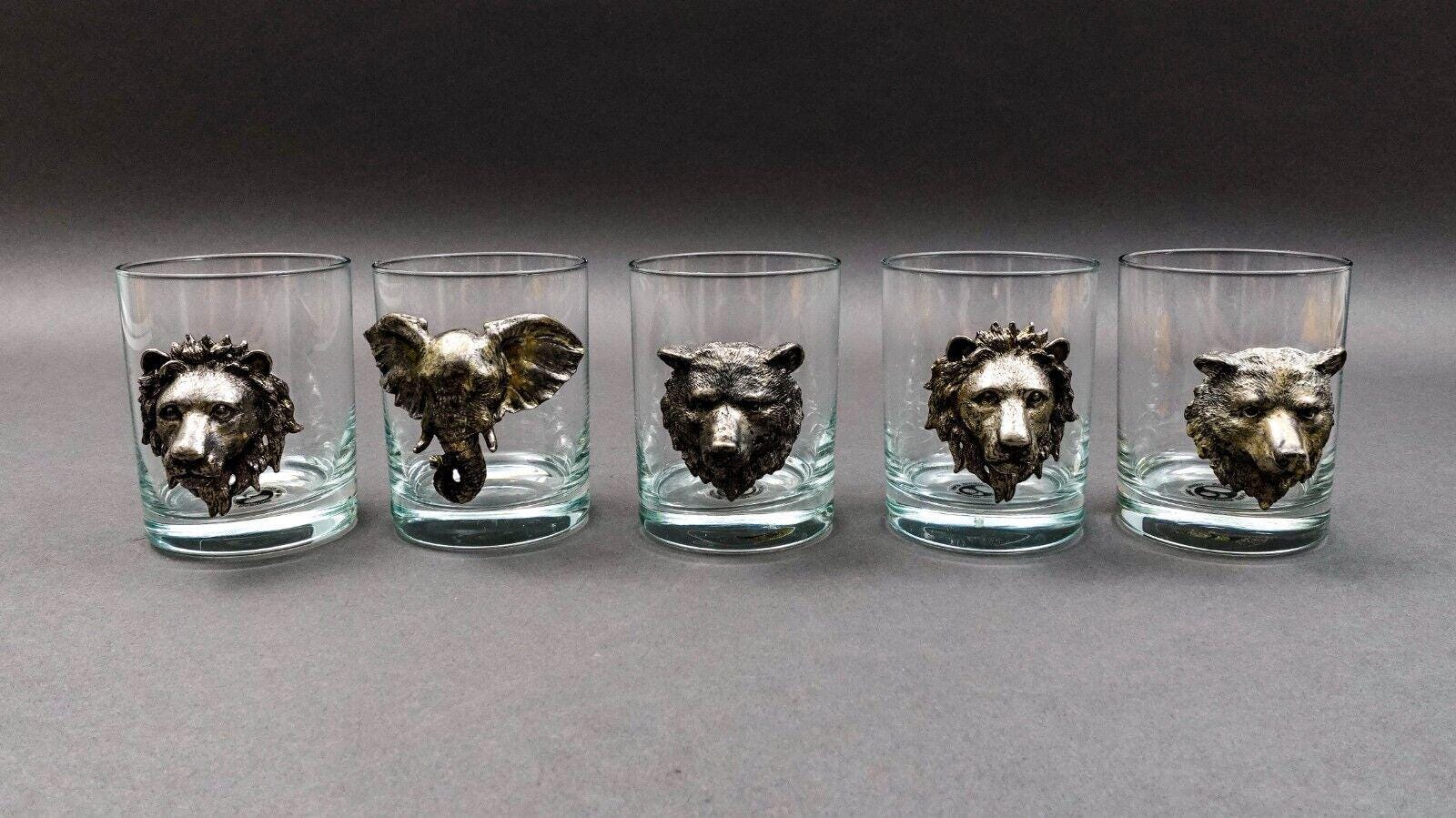 Arthur Court Safari Animals Rocks Double Old Fashioned Glasses Tumblers Set Of 5