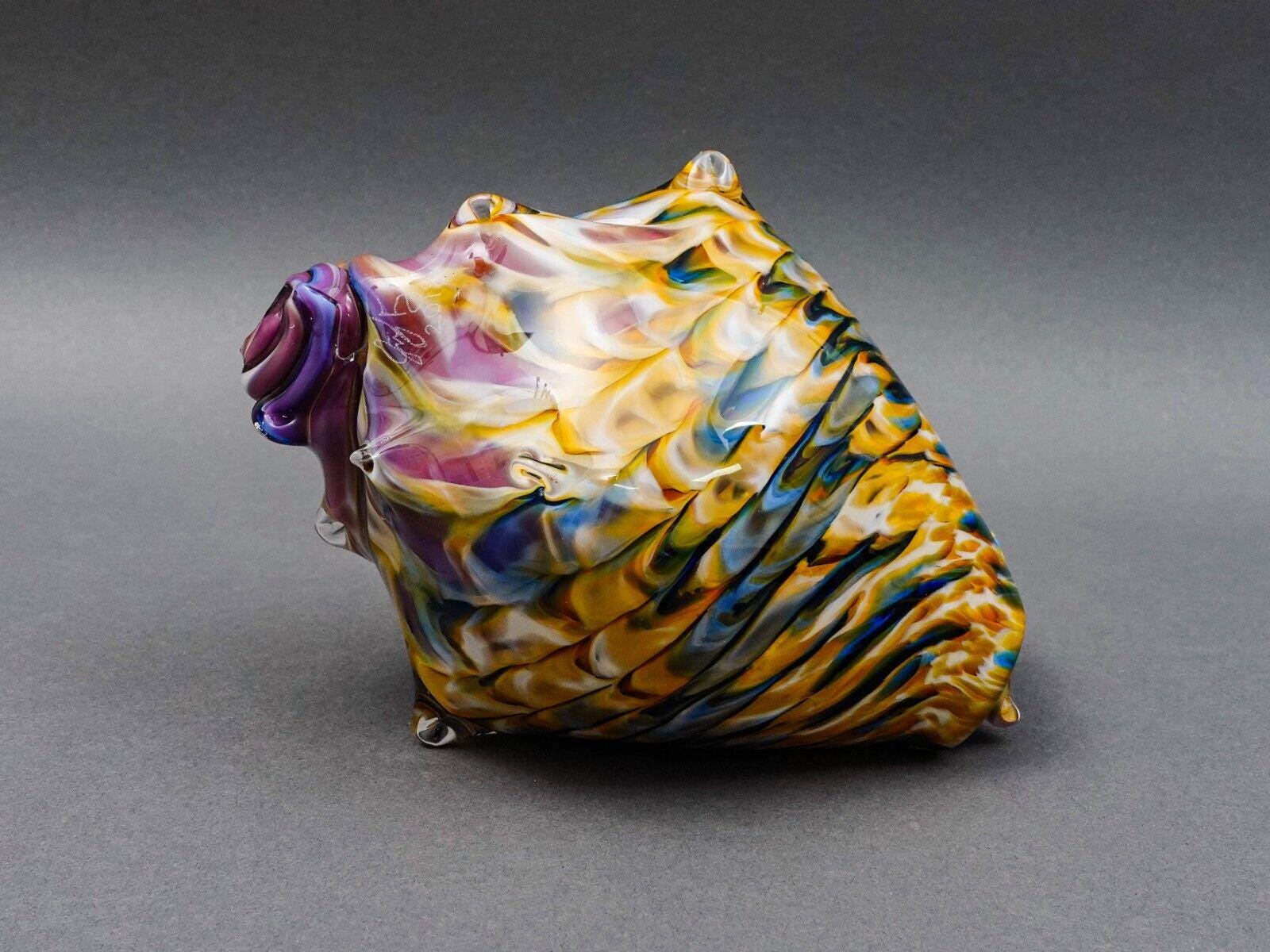 Artist Signed & Dated 2018 Conch Sea Shell Hand Blown Art Glass Sculpture 7"