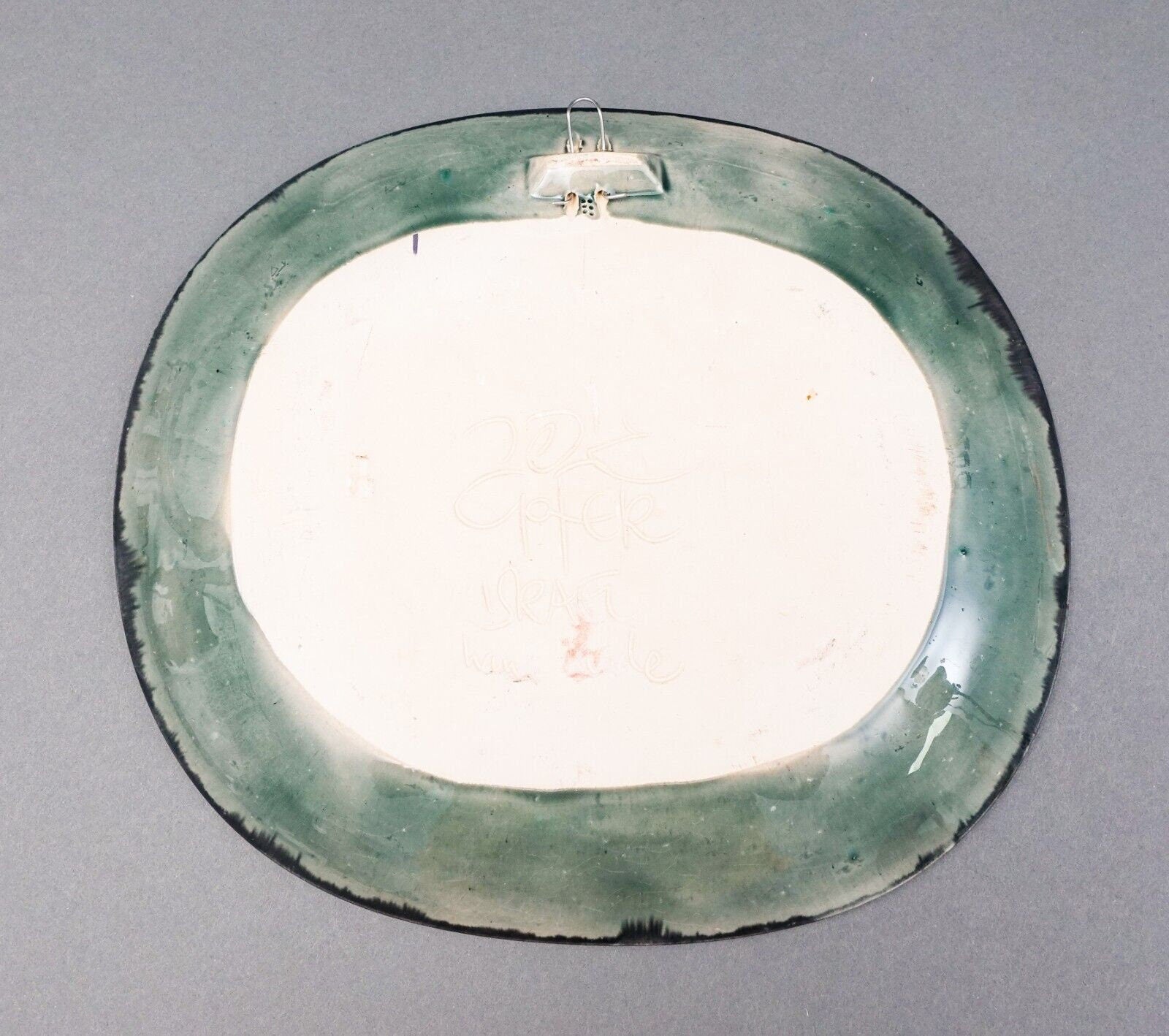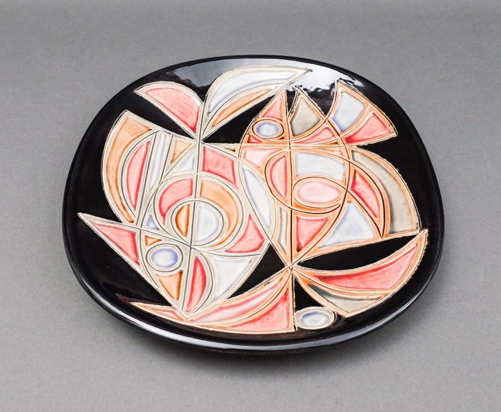 Avraham Gofer Israel Signed Mid Century Modern Abstract Fish Studio Art Pottery Plate.