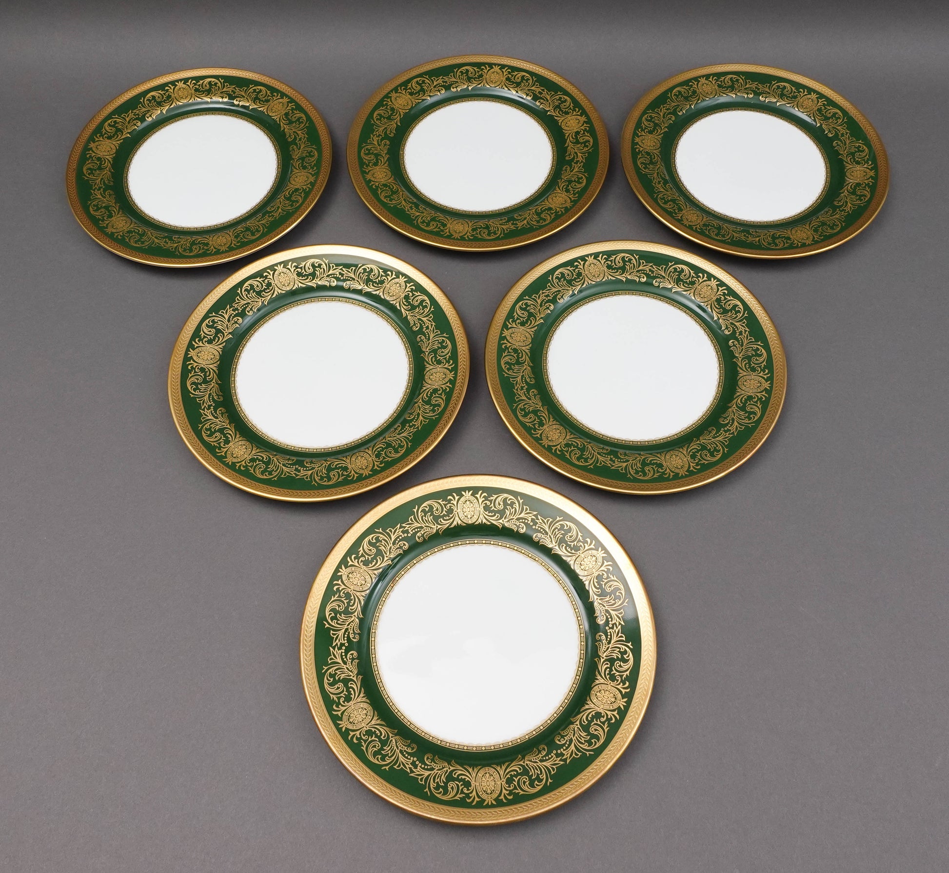 Aynsley England Imperial 193 Laurel Green Gold 8" Salad Plates Set Of 6
