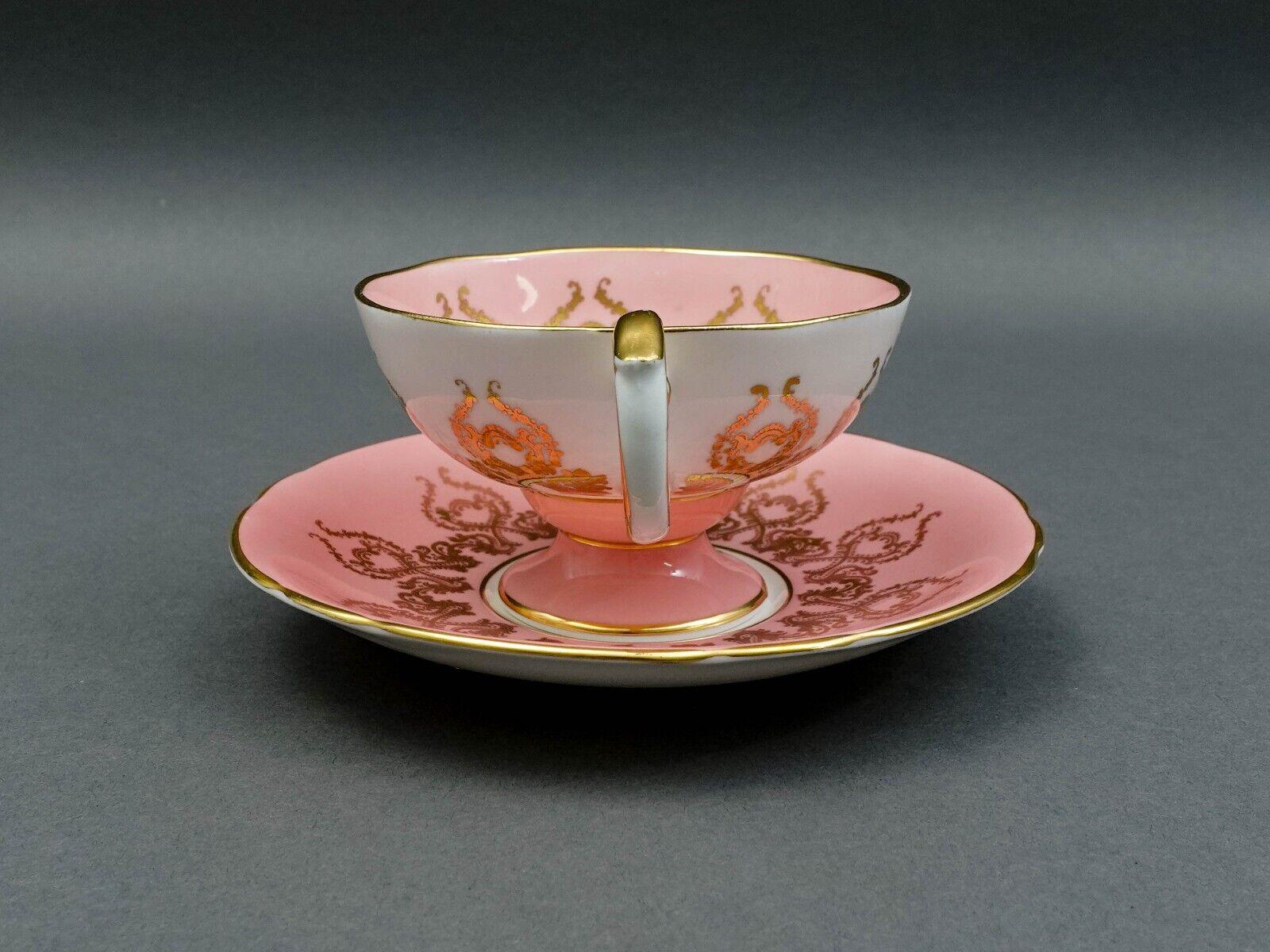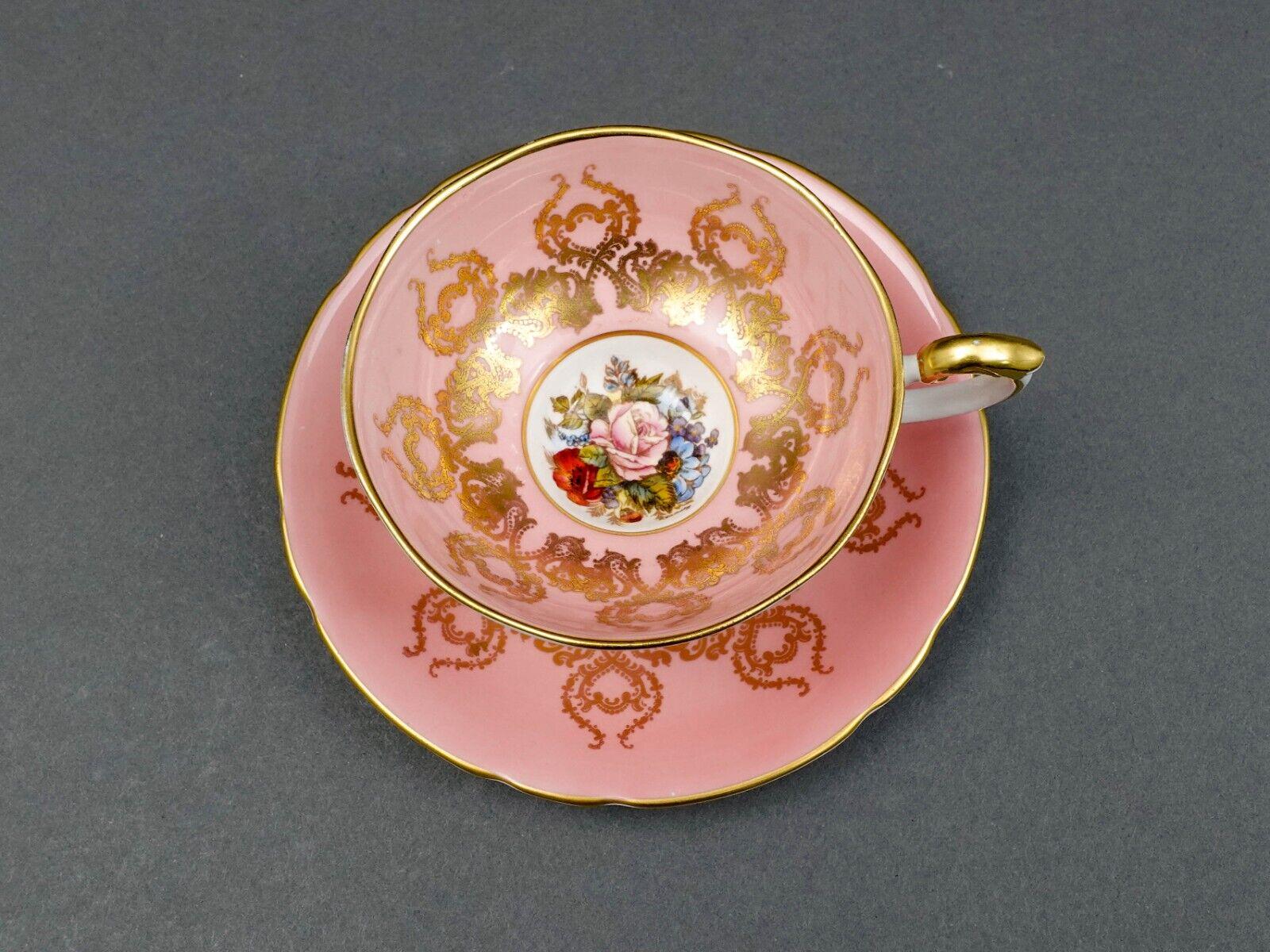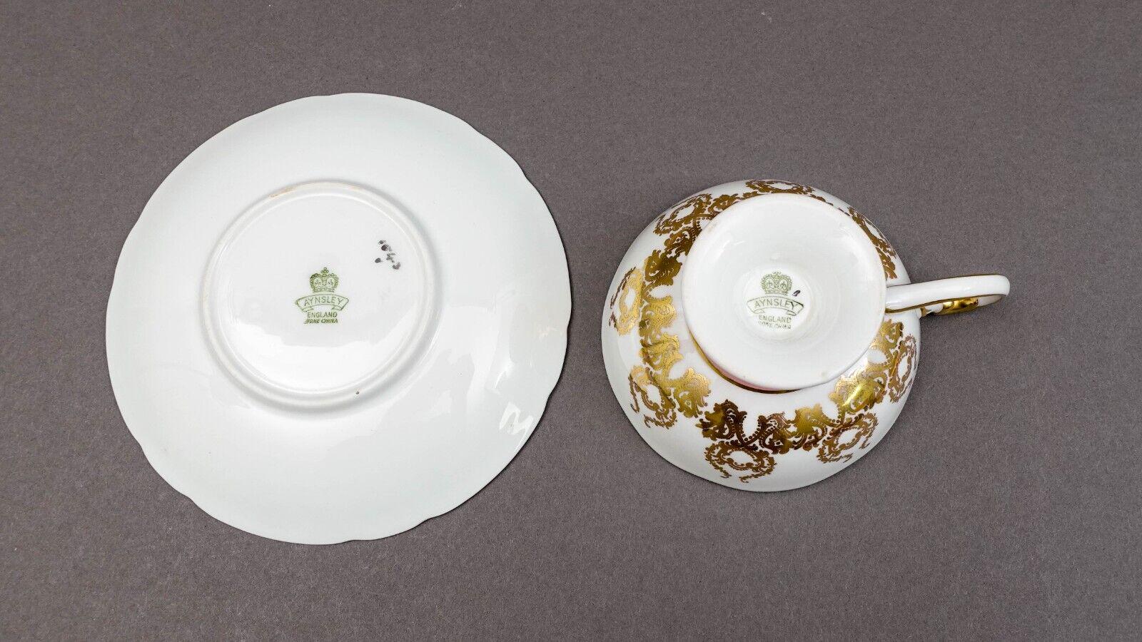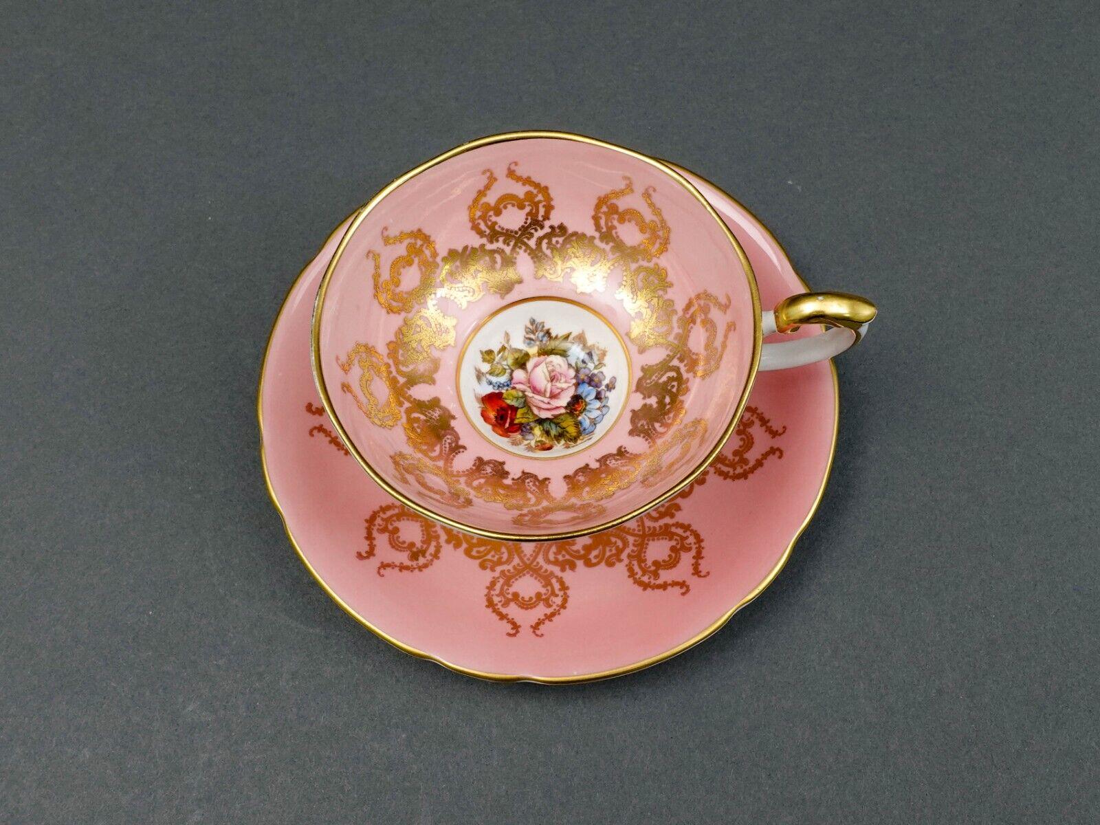 Aynsley England JA Bailey Signed Cabbage Rose Pink Bone China Tea Cup & Saucer