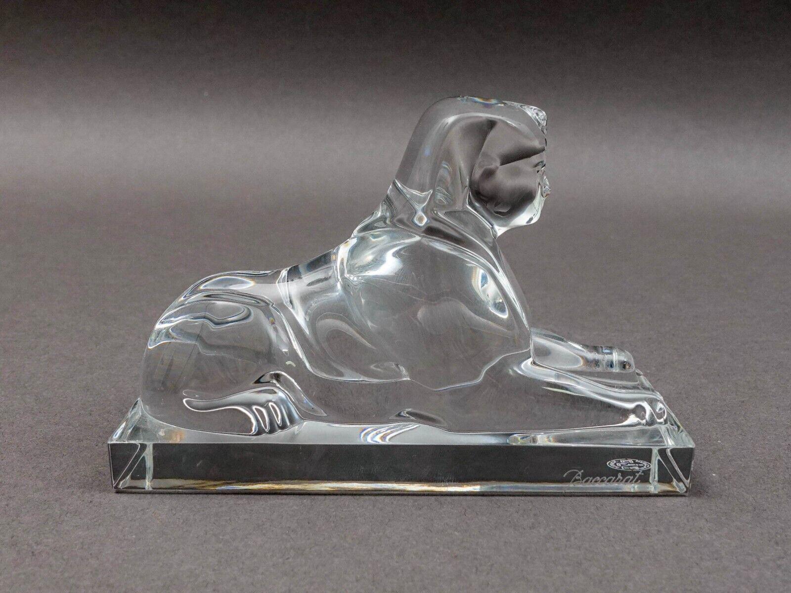 Baccarat France Signed Crystal Sphinx Art Glass Paperweight Figurine Sculpture.Measures approximately 4 3/4" long, 1 7/8" wide, 3 1/4" high.Excellent pre-owned condition. Item is being sold as found. No chips, cracks or
