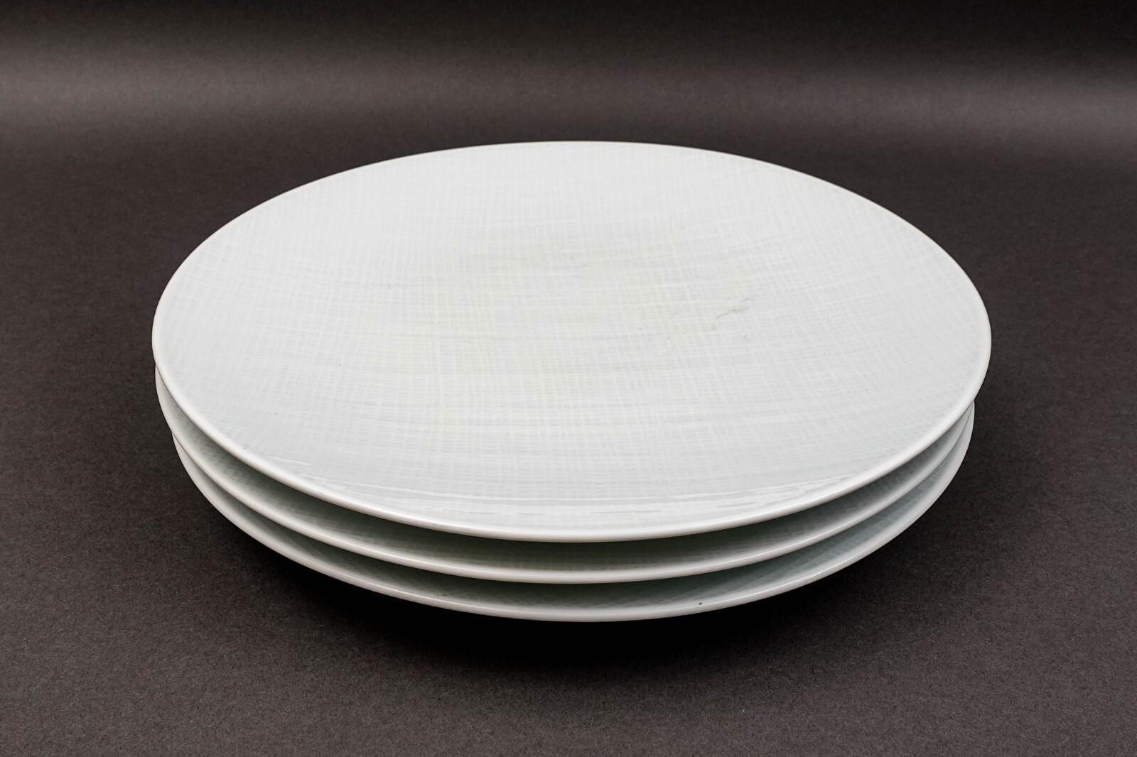 Bernardaud France Organza White Porcelain Coupe Plate Set Of 3Measures approximately 11 1/2" diameter.Good pre-owned condition. Item is being sold as found. No chips, cracks or