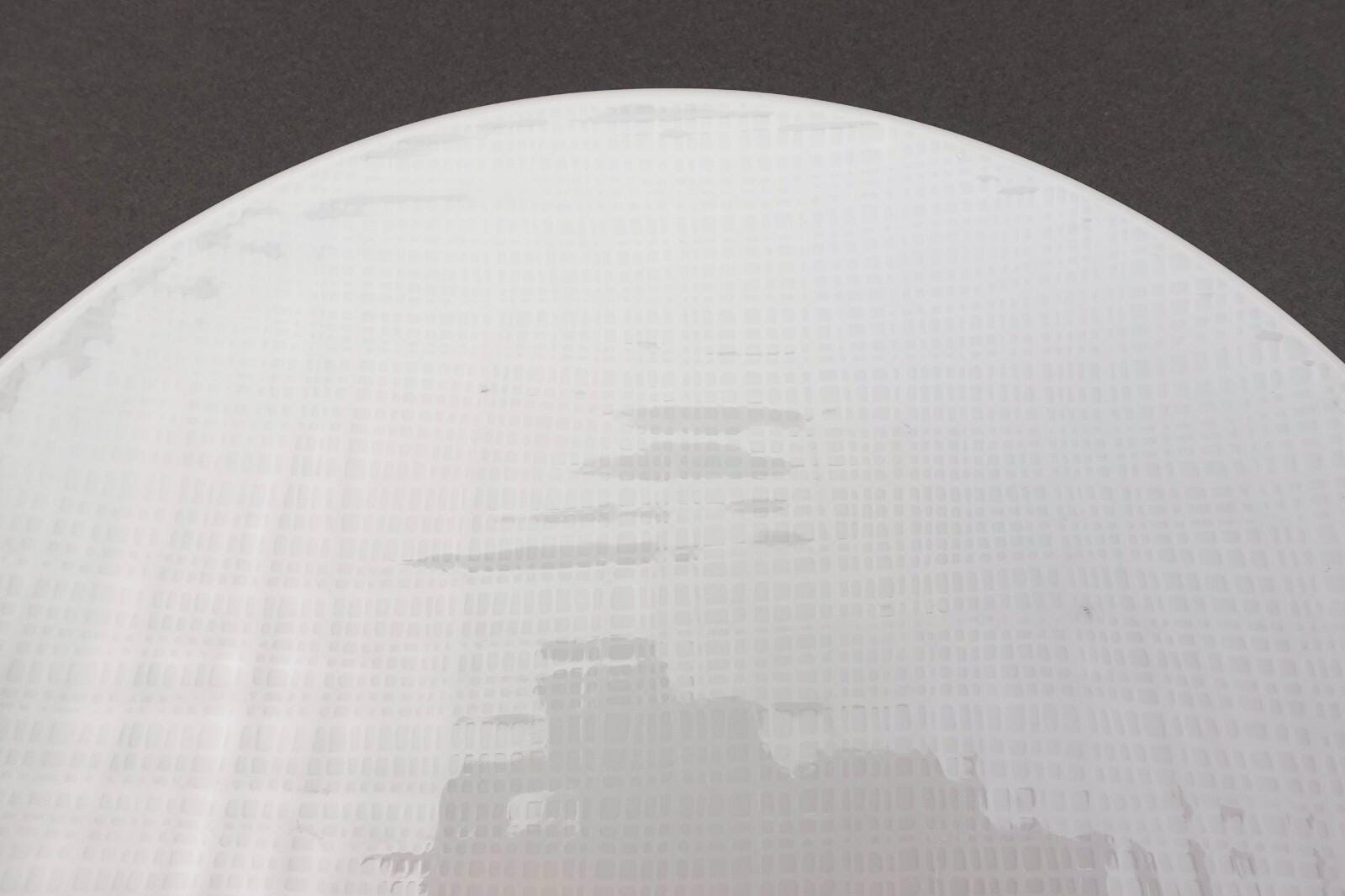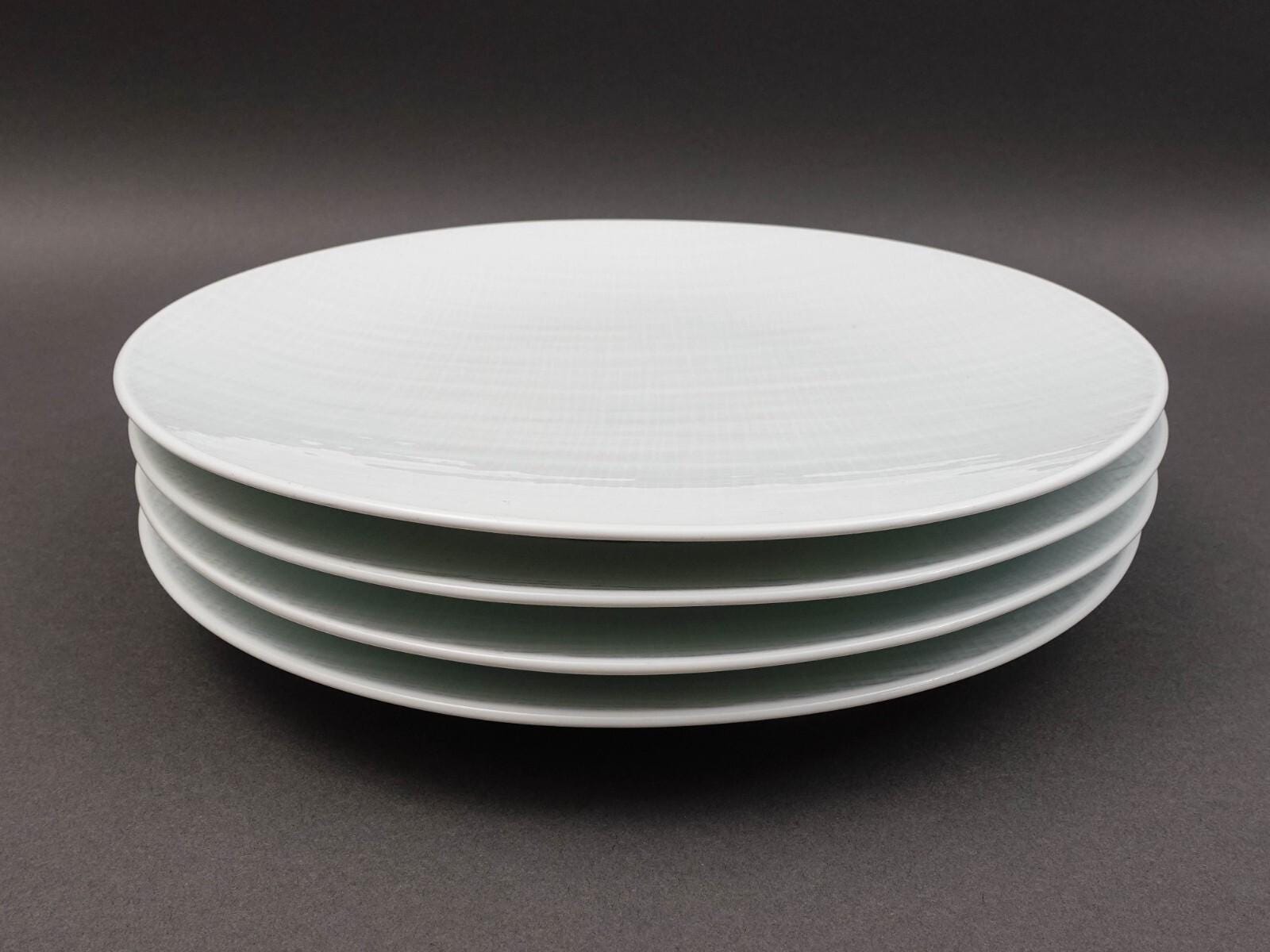 Bernardaud France Organza White Porcelain Coupe Plate Set Of 4Measures approximately 11 1/2" diameter.Very good pre-owned condition. Item is being sold as found. No chips, cracks or