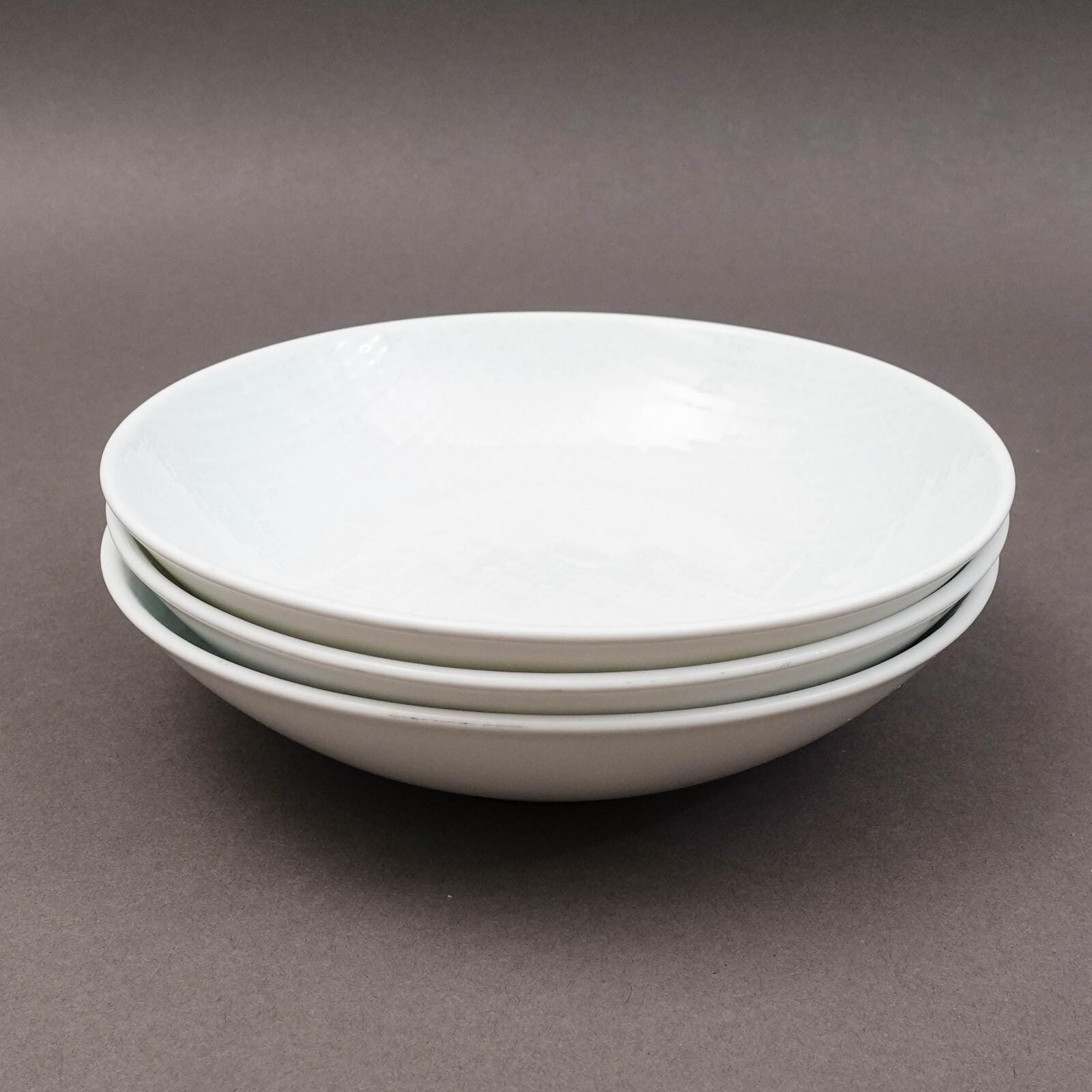 Bernardaud France Organza White Porcelain Cereal Soup Bowl Set Of 3.Measures approximately 7 1/4" diameter, 1 5/8" high.Good pre-owned condition. Item is being sold as found. No chips, cracks or