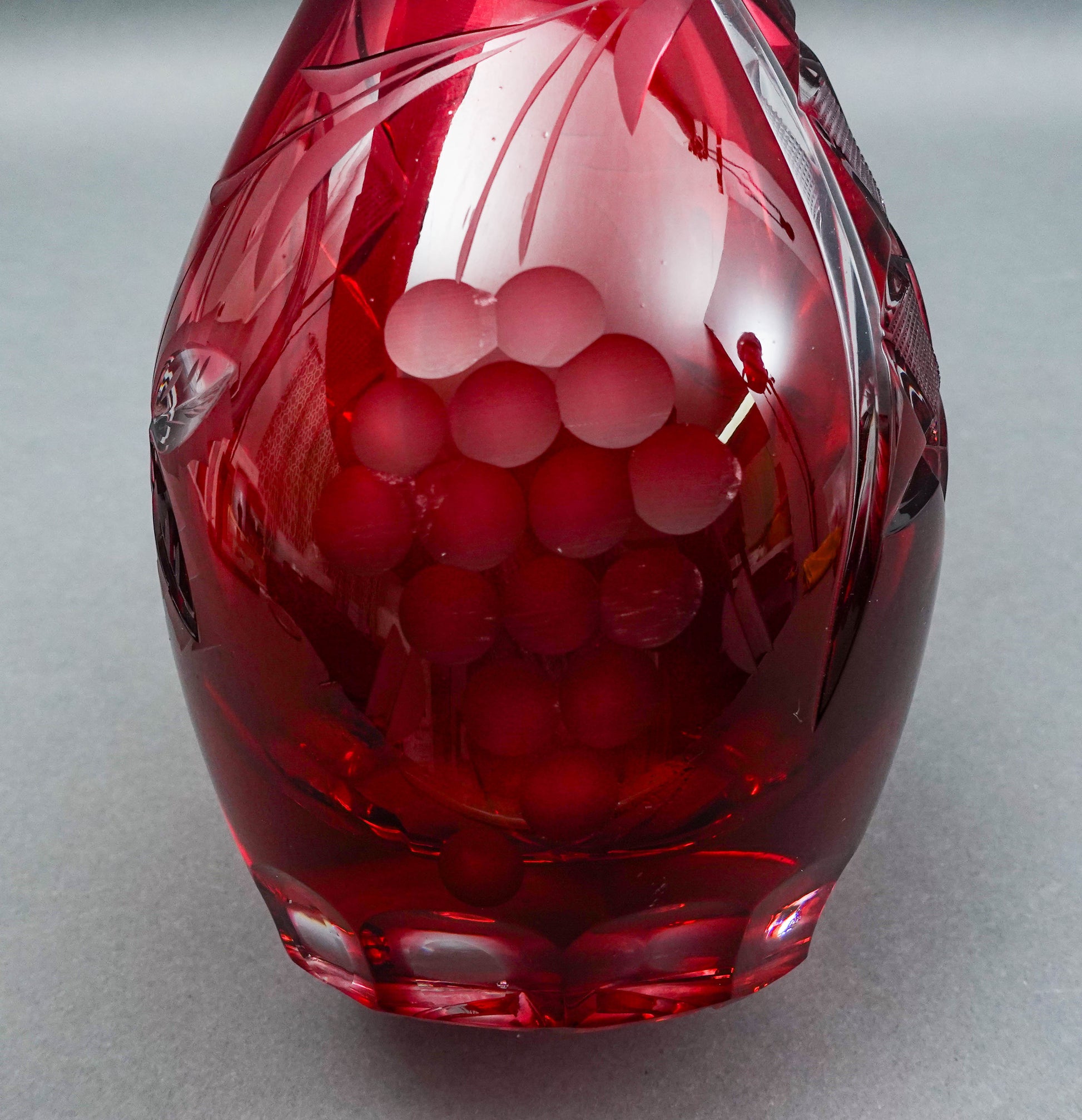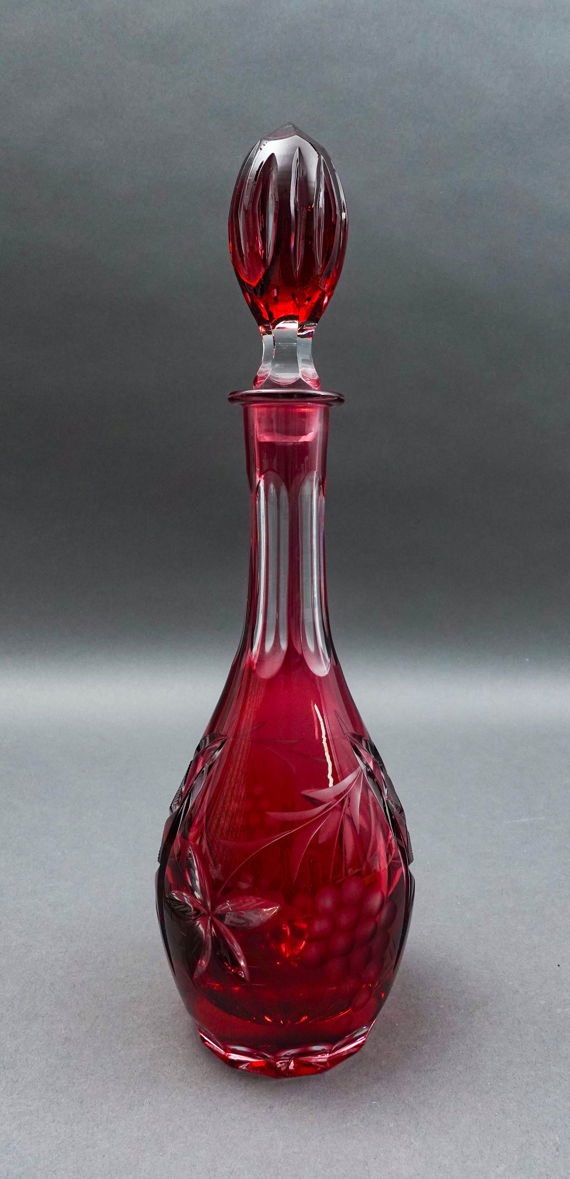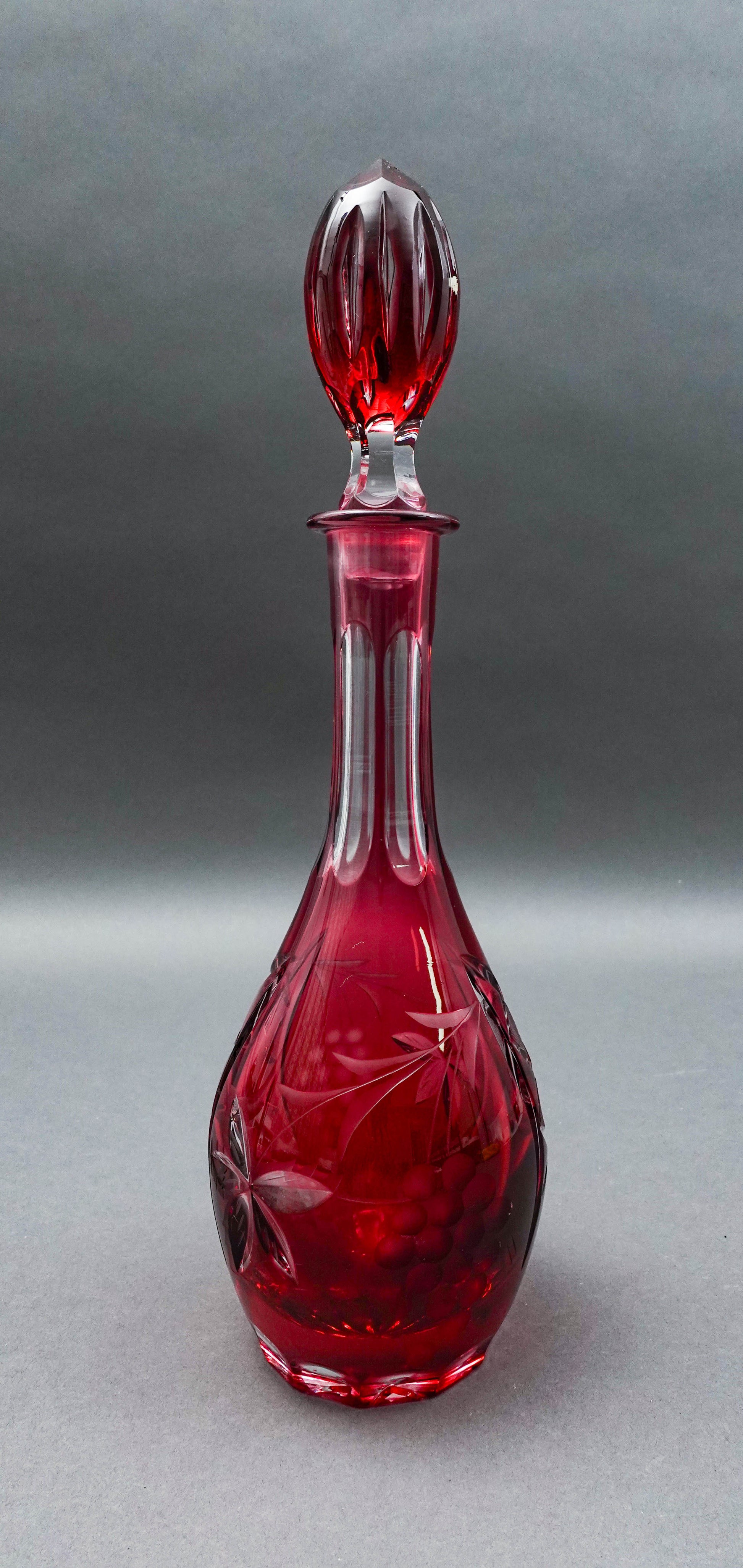 Natchtmann Bleikristall Crystal Germany Vintage Cranberry Cut To Clear Glass Decanter.