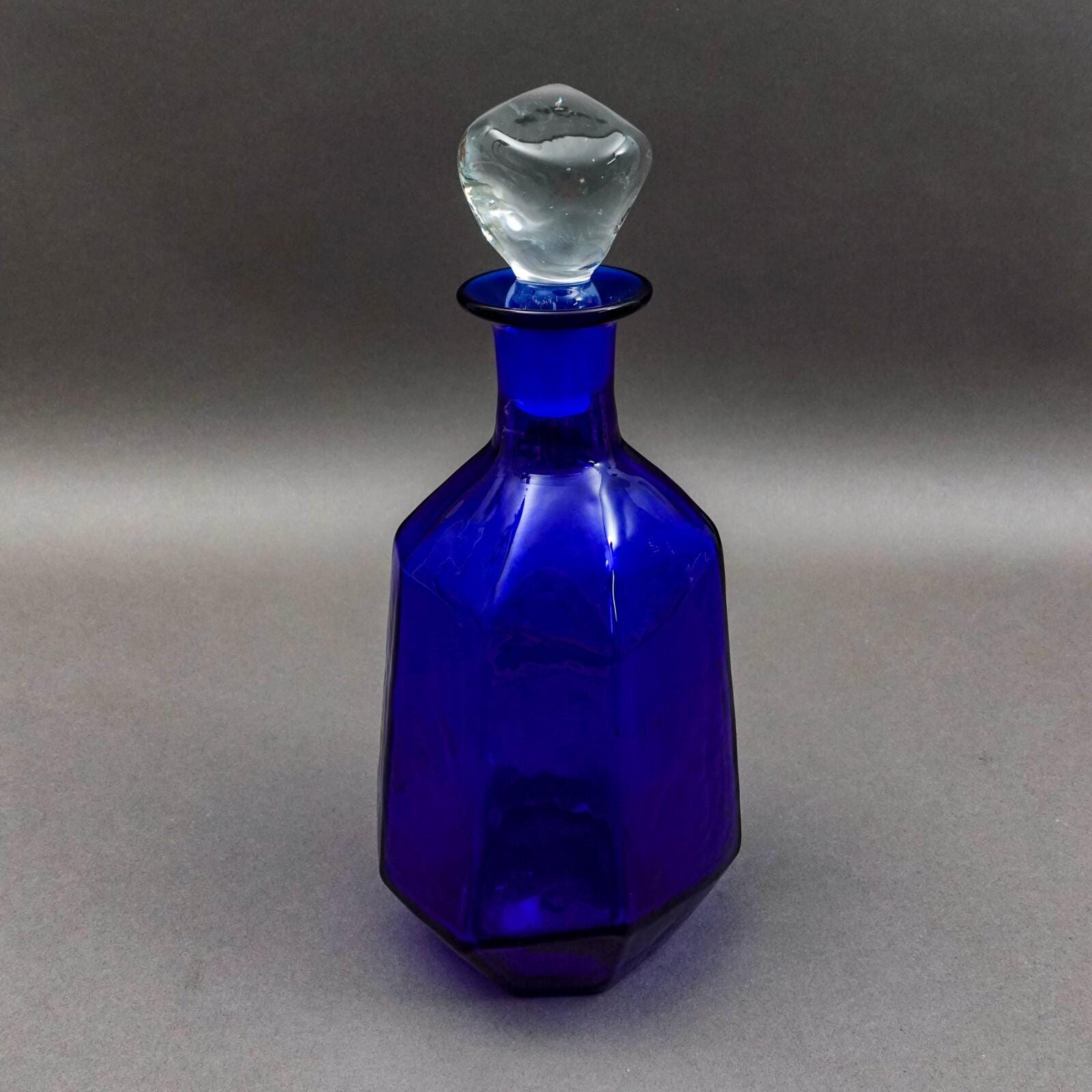 Blenko Don Sheppard 8132M Facet Line Sapphire Blue Glass Decanter With Stopper.Measures approximately 4 7/8" diameter, 11 3/8" high with stopper, 9 1/8"