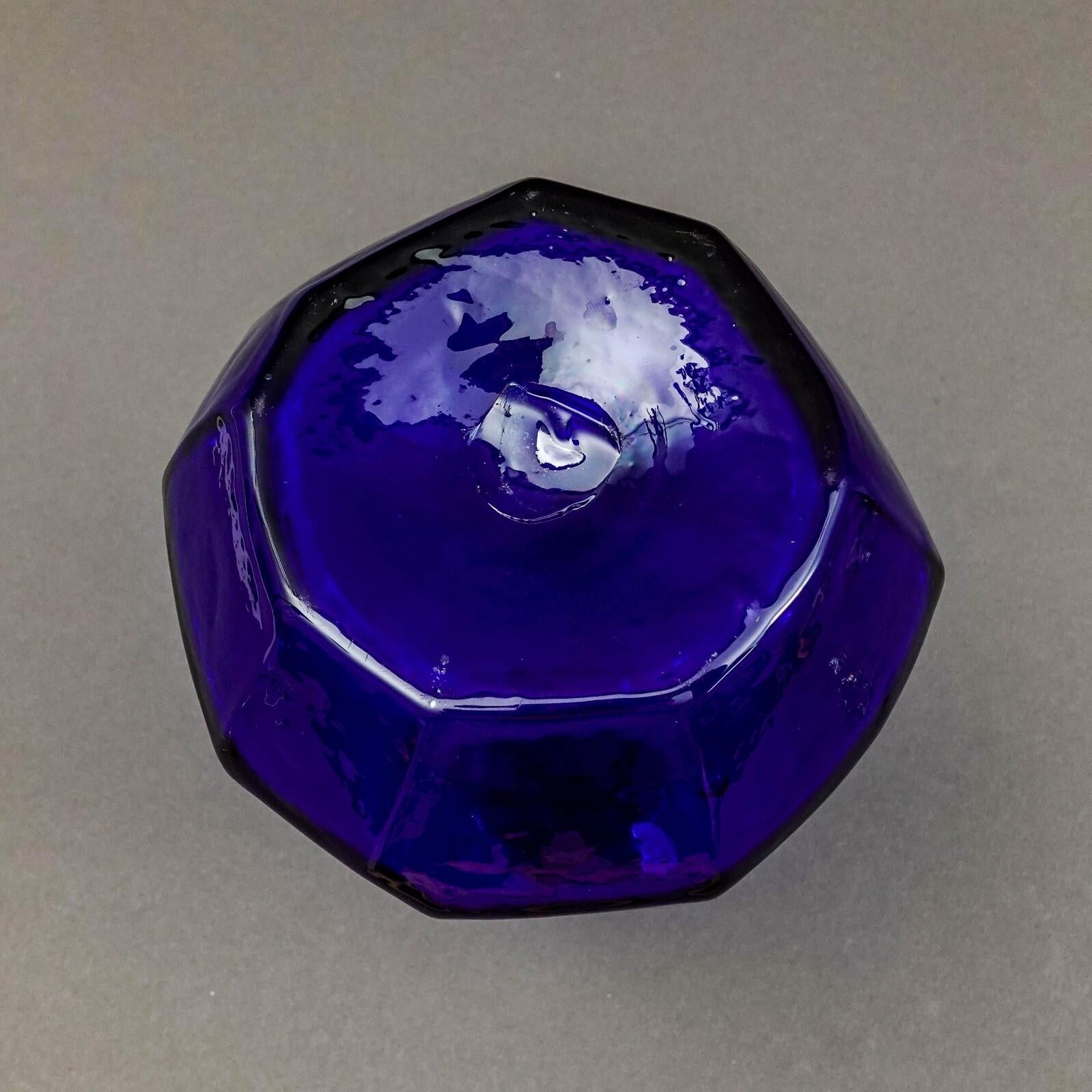 Blenko Don Sheppard 8132M Facet Line Sapphire Blue Glass Decanter With Stopper