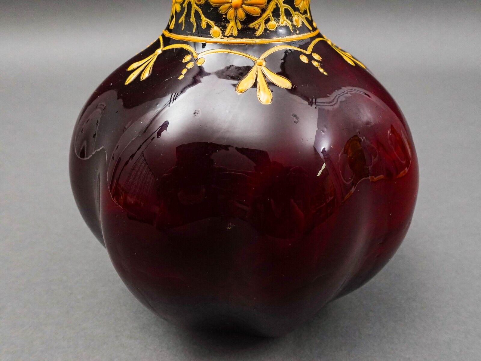 Bohemian Ox Blood Red Floral Gilded Cased Art Glass Vase 6 1/4"