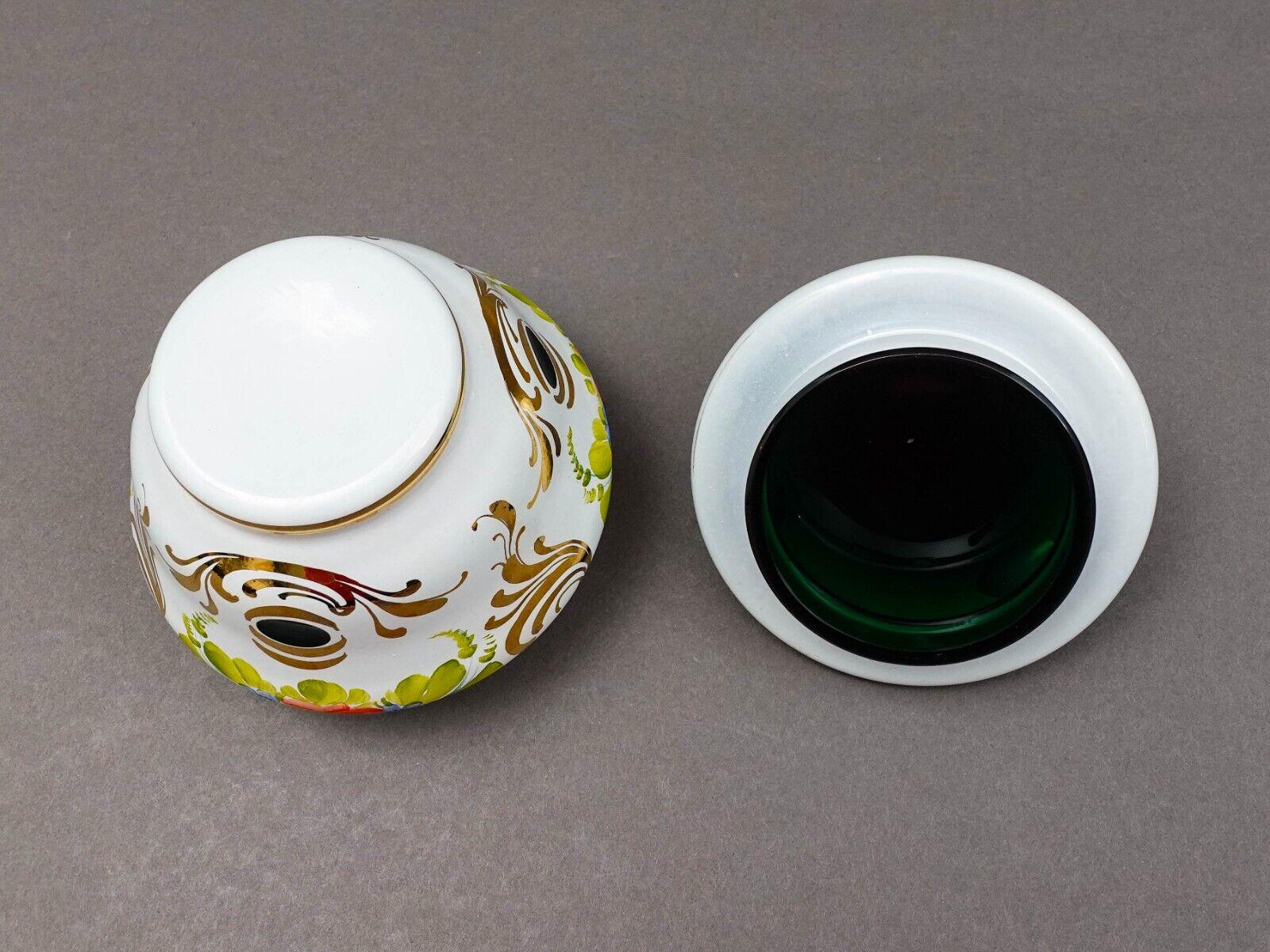 Bohemian Czech White Cut To Green Cased Gold Gilt Hand Painted Floral Sugar Bowl