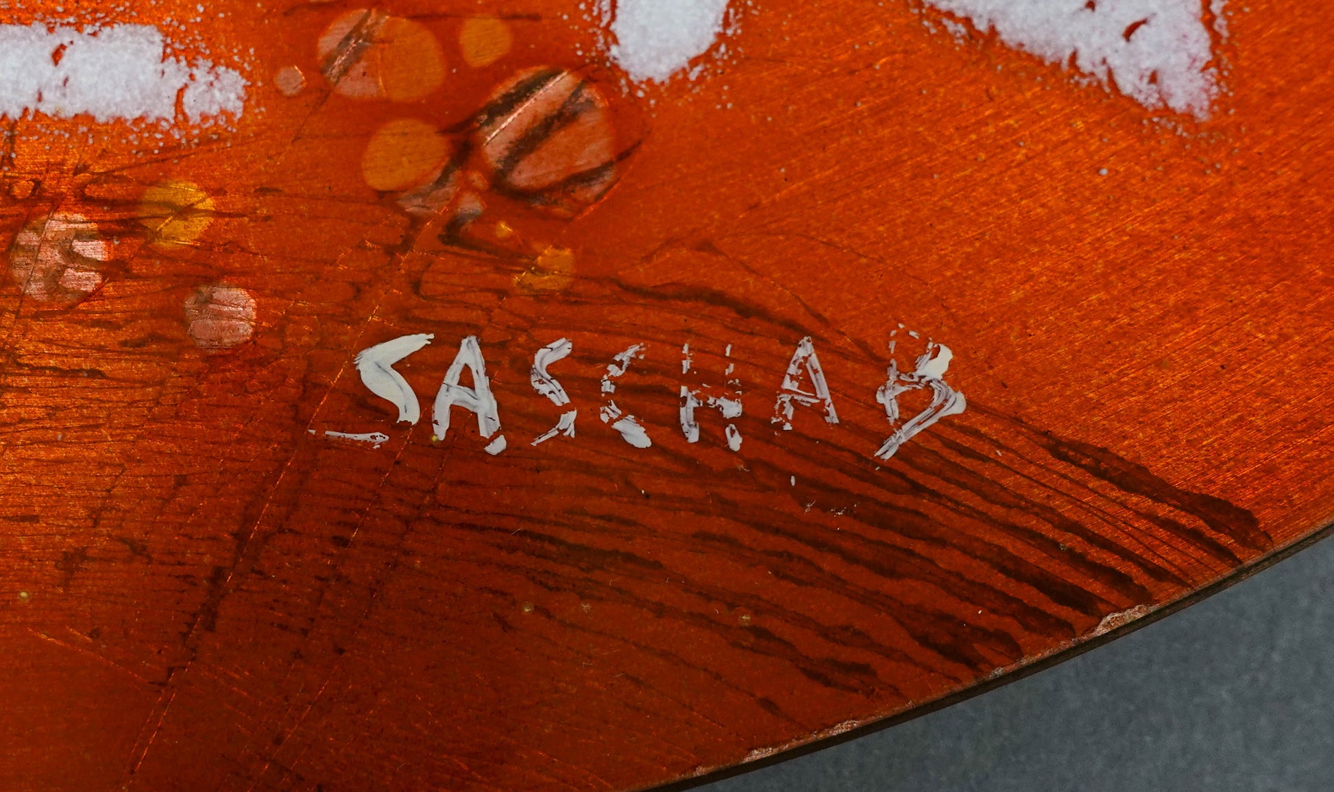 Sasha Brastoff Signed California Vintage Mid Century Modern Floral Daisies Enamel On Copper Hanging Plate.