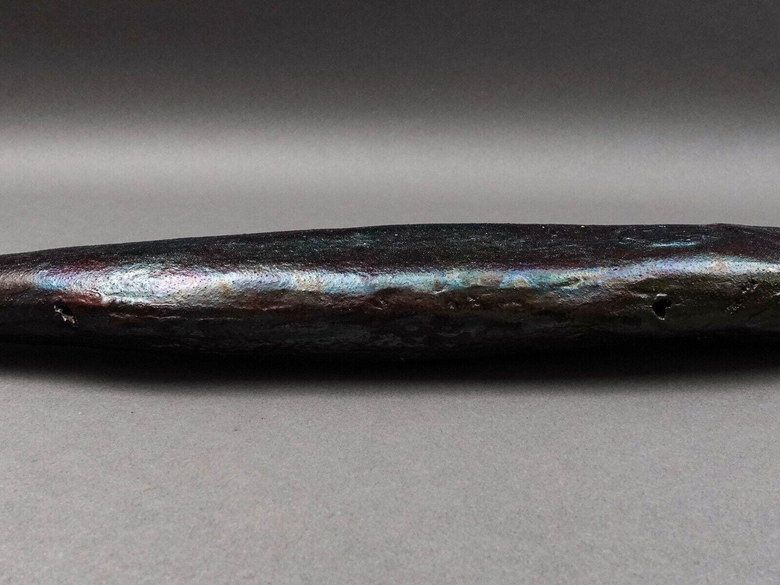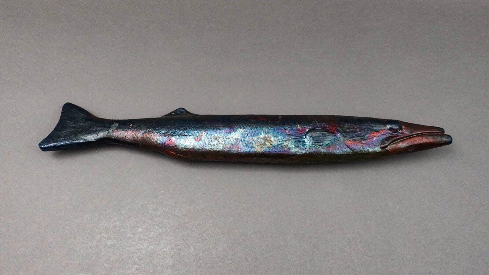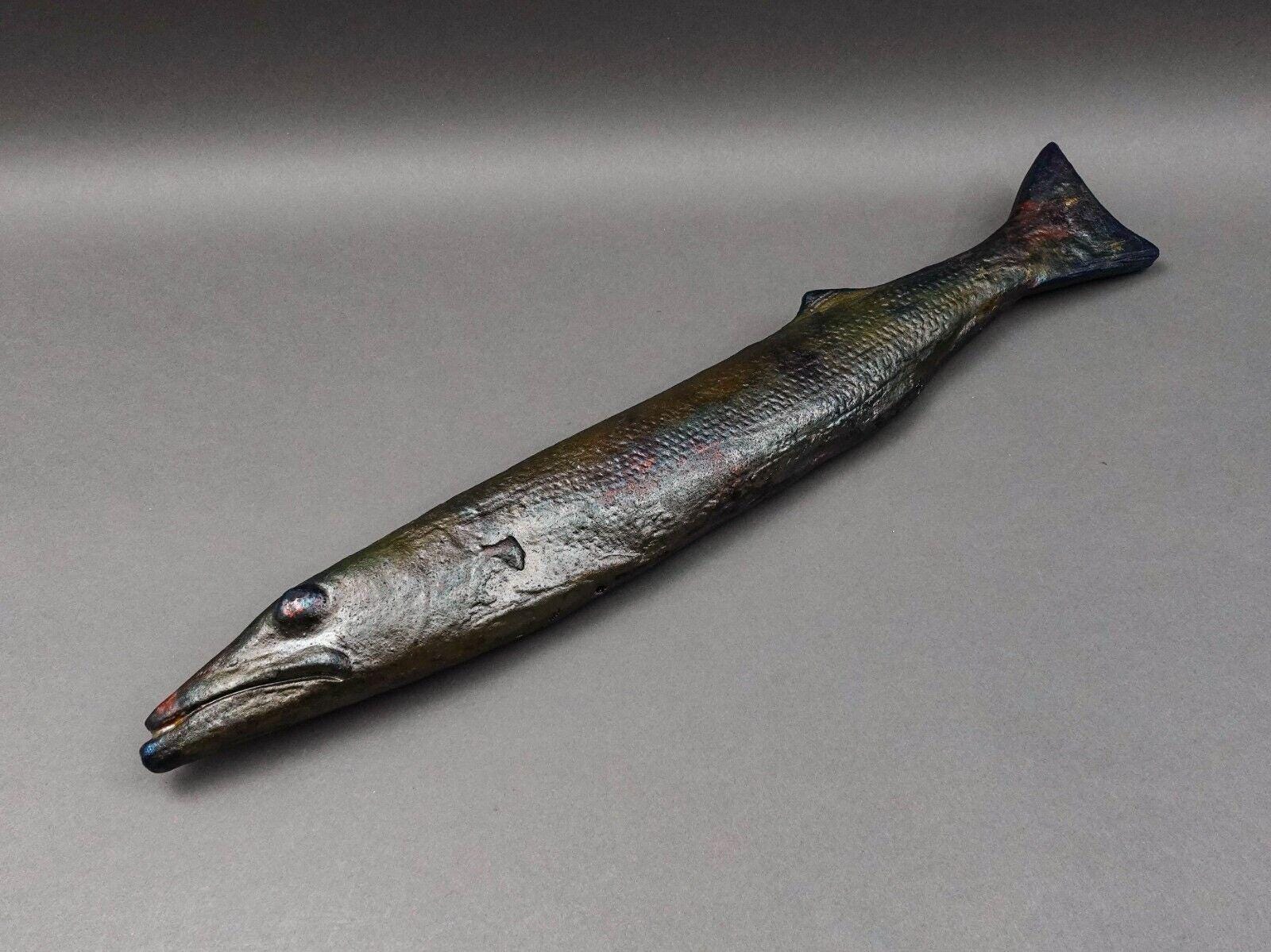 Pottery Sculpture. Item was purchased with a Charles Pearson collection. Fish has two holes to bottom, where it looks like it was set on a base which is not included, original owner hung on wall with wire.Measures approximately 25 1/2" long, 3 1/8" wide, 2 1/4" high.Great pre-owned condition. Item is being sold as found. No chips, cracks or repairs. Some small paint flecks. Overall fantastic appearance!!!