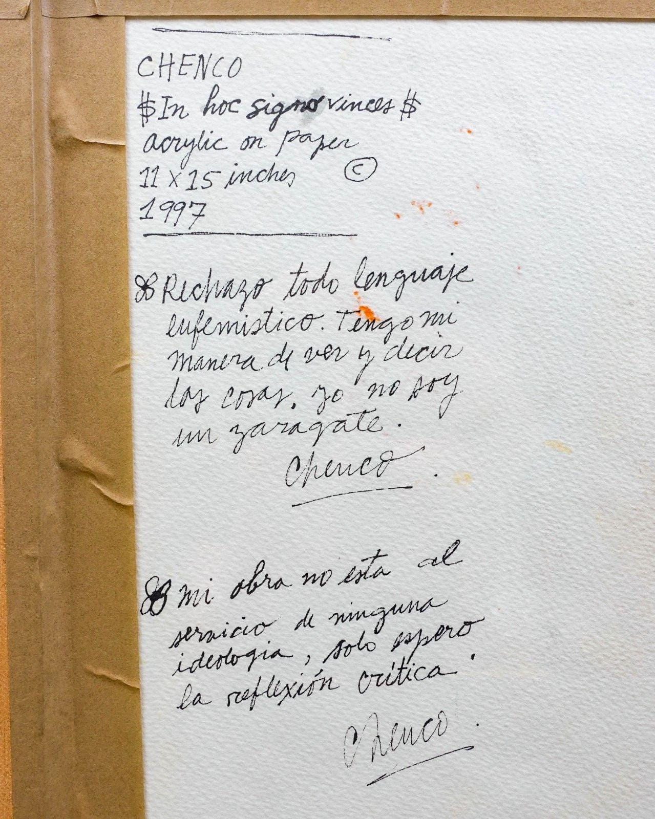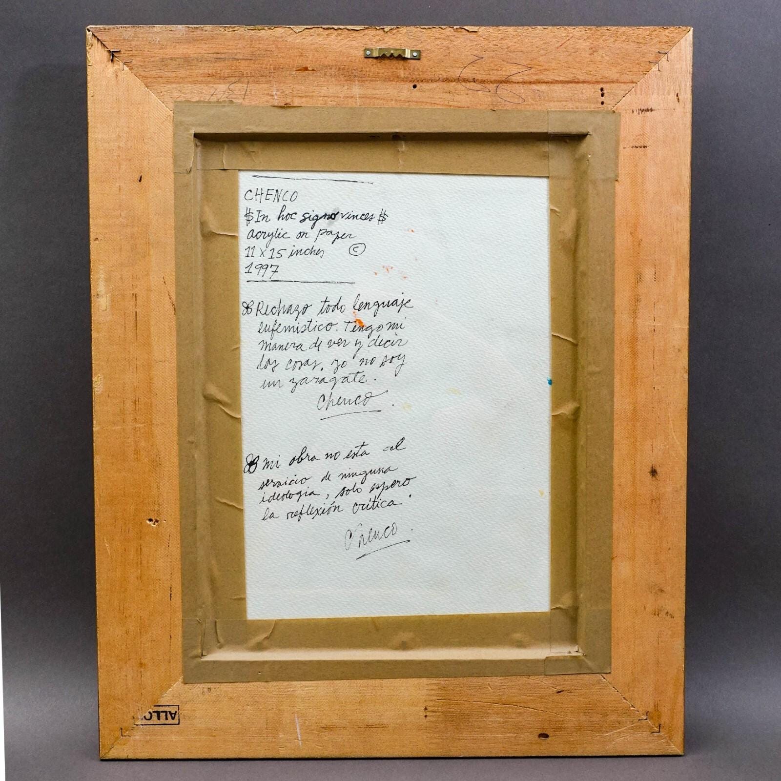 Chenco Columbian Artist "In Hoc Signo Vinces" Acrylic On Paper Painting 1997.Chenco, Simon Gomez Ruiz, is a Columbian born painter who is the father of