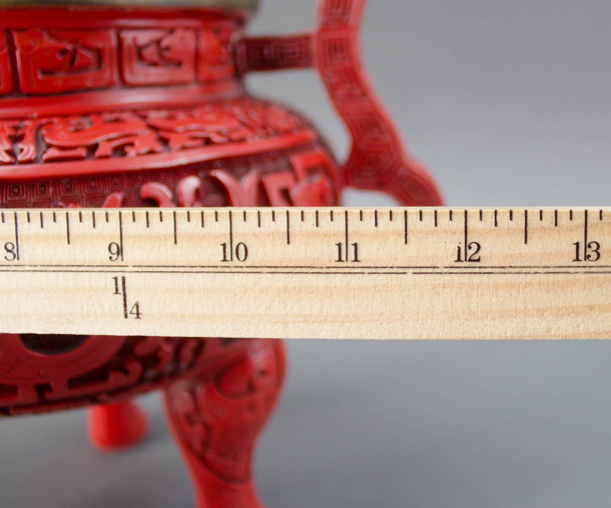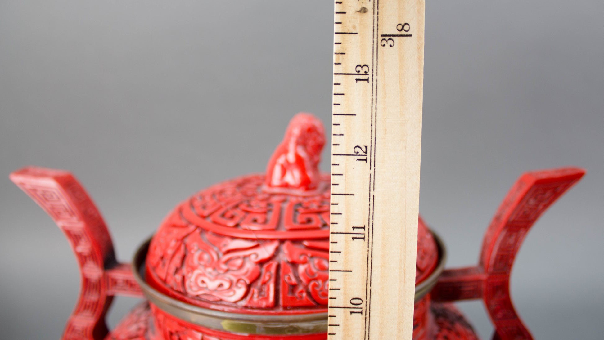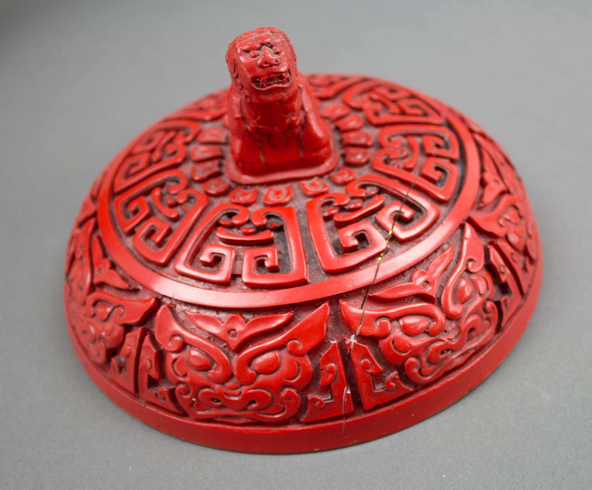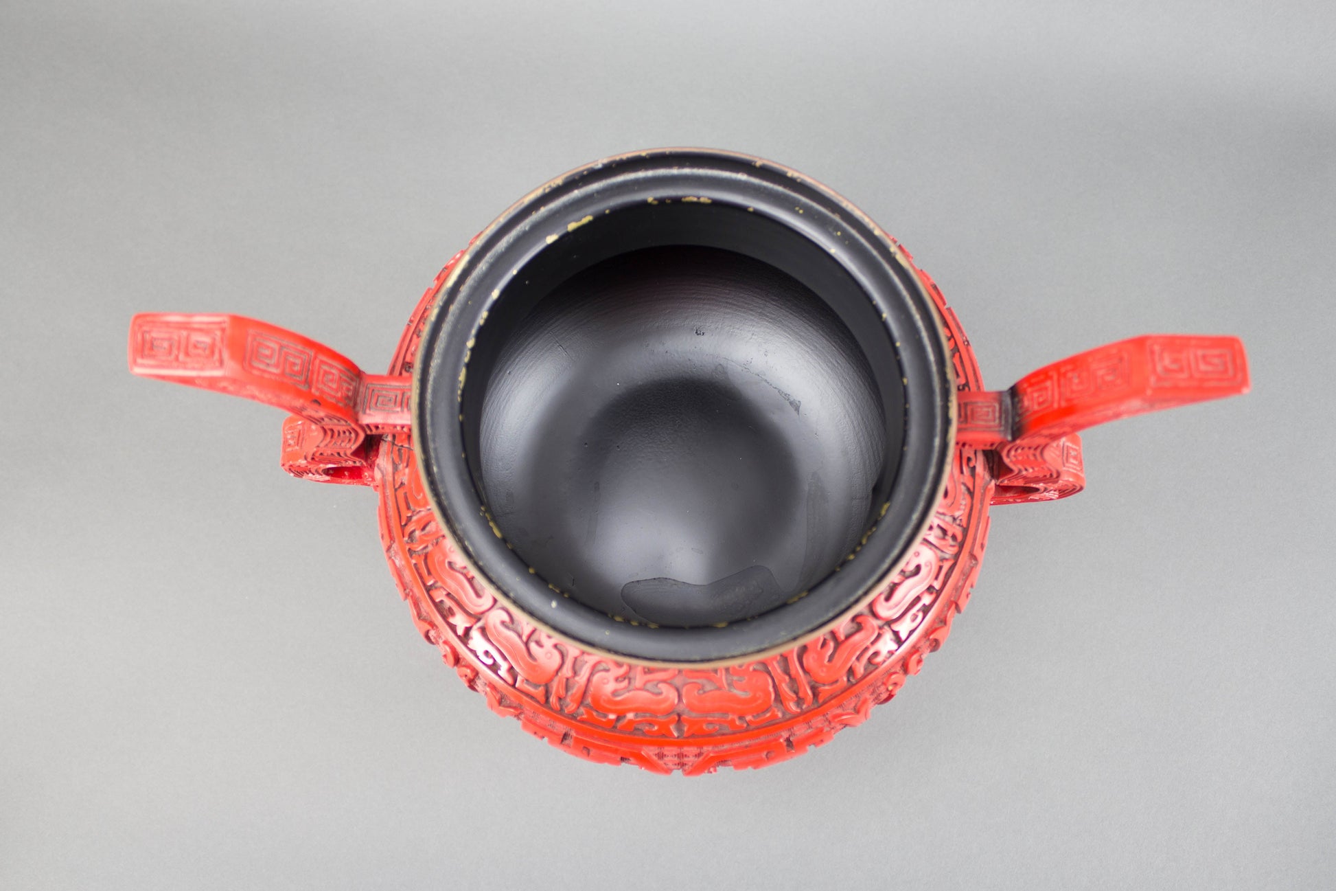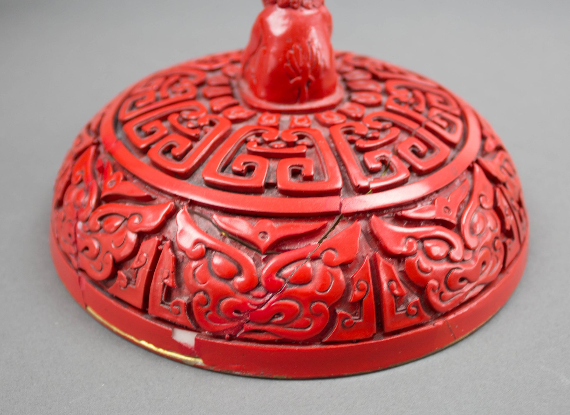 Chinese Republic Large Cinnabar Lacquered Tripod Incense Burner Foo Dog