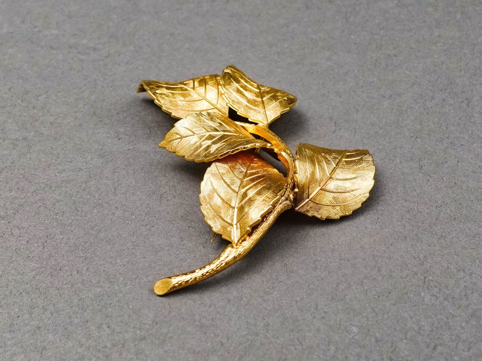 Christian Dior Grosse Germany Signed 1960 Vintage Gold Tone Leaf Brooch Pin