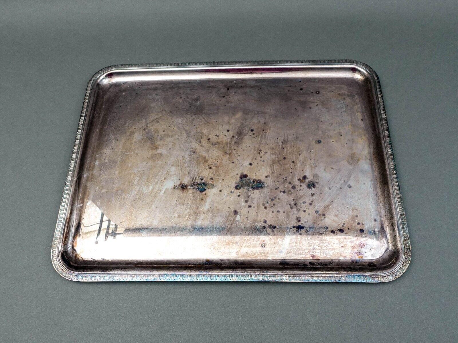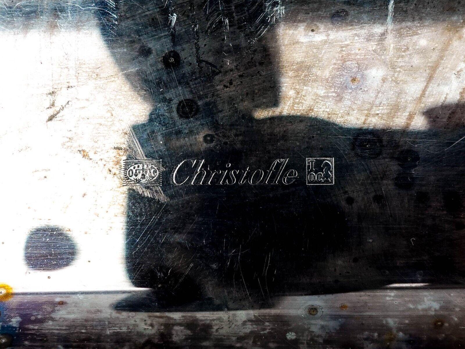Christofle France Silver Plated Malmaison Large Rectangle Serving Platter Tray.Measures approximately 16 1/2" long, 12 1/2" wide.Very good pre-owned condition. Item is being sold as found. No chips, cracks or