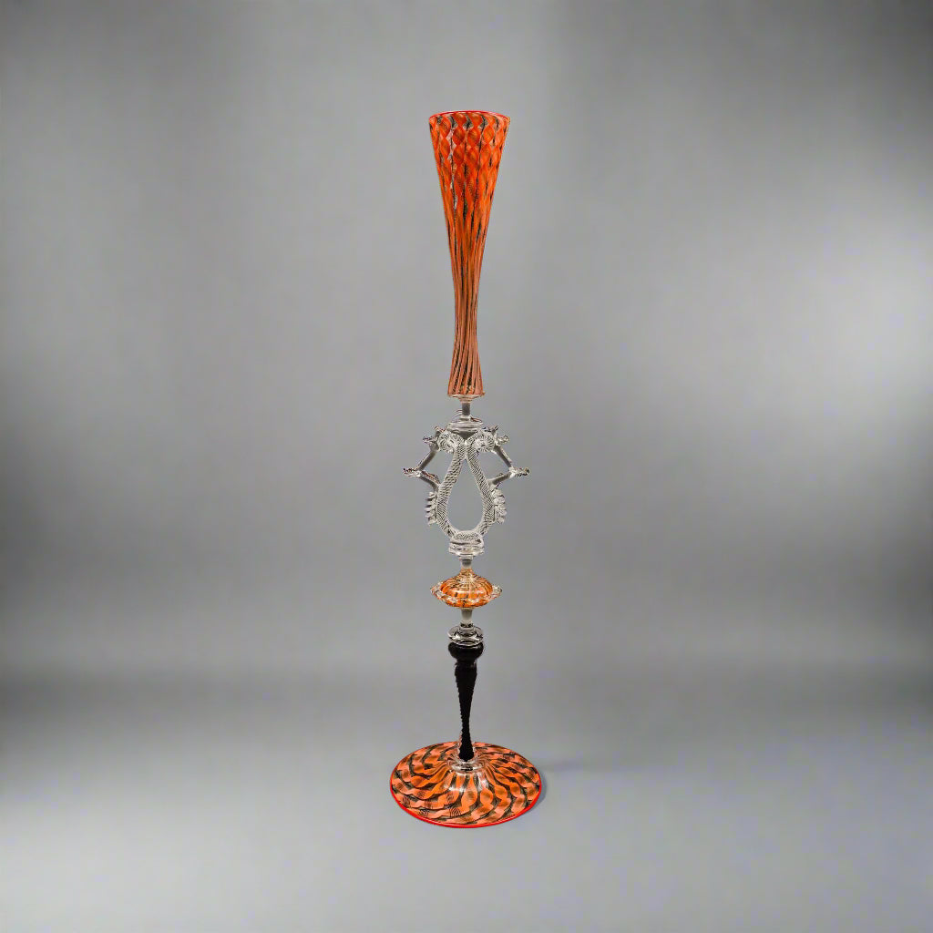 Chuck Savoie Signed Salviati Venetian Murano Latticino Art Glass Compote Goblet