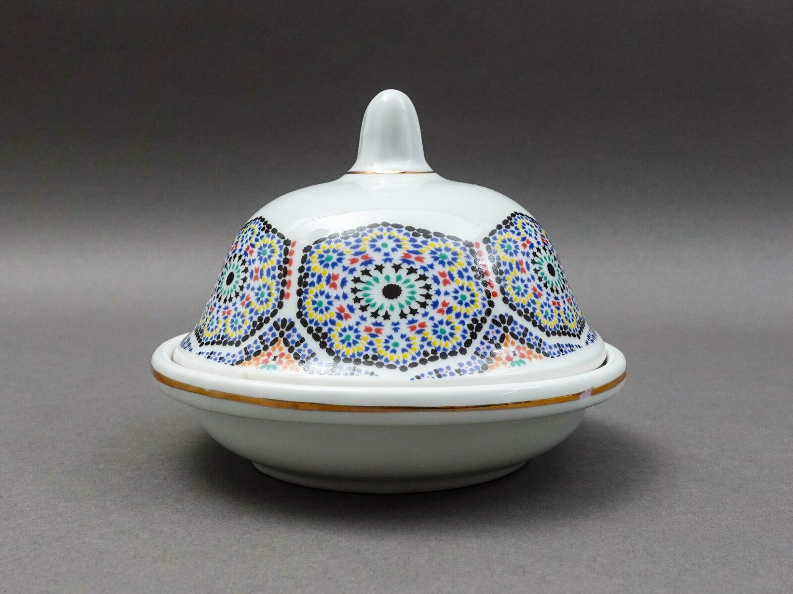 Cocema Fes Maroc Morocco Tile Mosaic Porcelain Covered Cheese Or Butter Dish