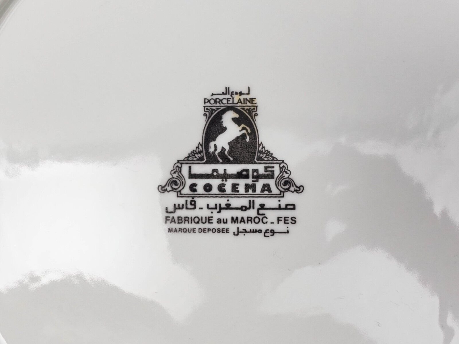 Cocema Fes Maroc Morocco Tile Mosaic Porcelain Dinner Plate Set Of 4.Measures approximately 9 3/4" diameter.Very good pre-owned condition. Item is being sold as found. No chips, cracks or