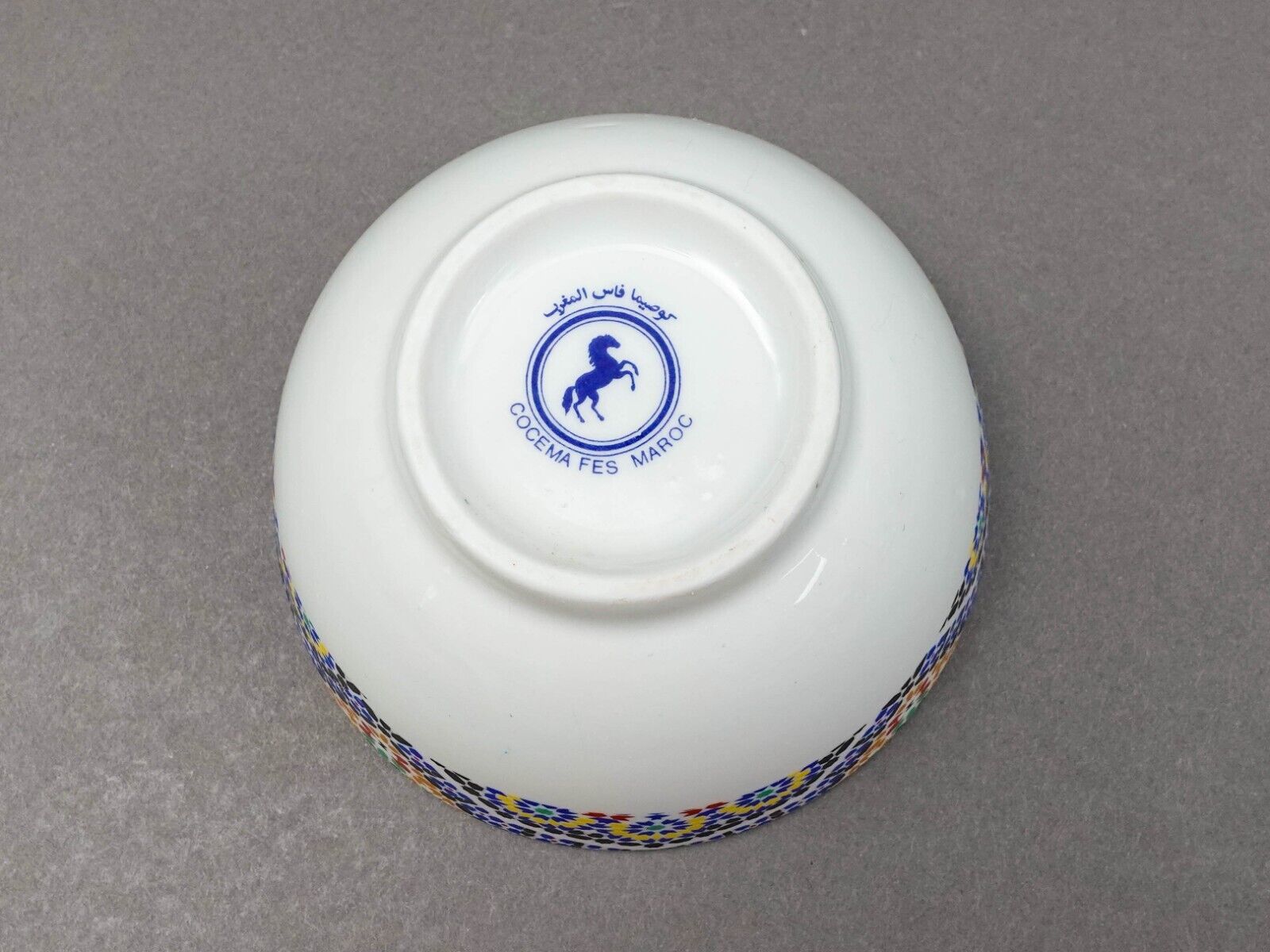 Cocema Fes Maroc Morocco Tile Mosaic Porcelain Fruit Cereal Bowl Set Of 4Measures approximately 4 3/4" diameter, 2 1/4" high.Excellent pre-owned condition. Item is being sold as found. No chips, cracks or