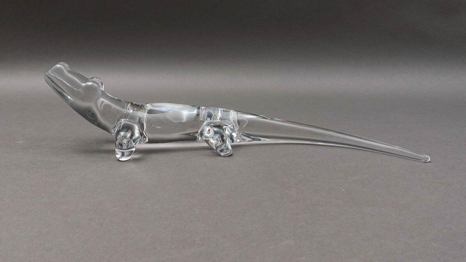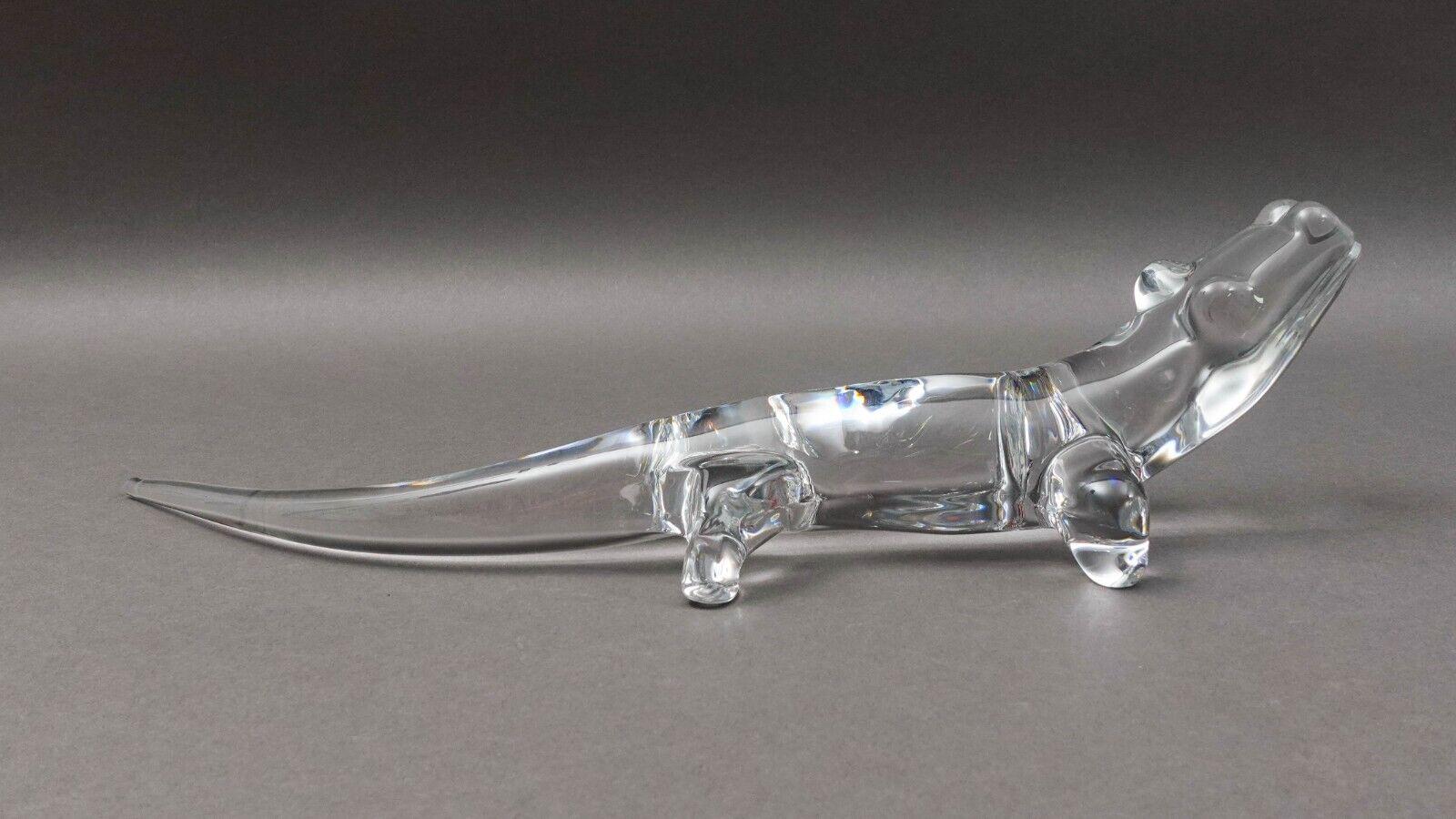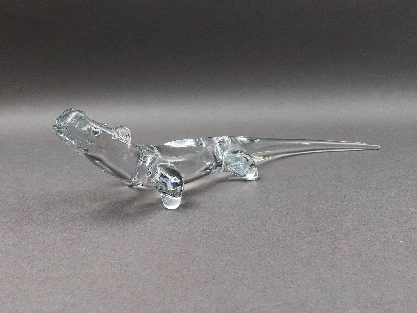 Daum Crystal France Signed Alligator Glass Figurine Sculpture.Measures approximately 16 1/2" long, 4" wide, 4" high.Excellent pre-owned condition. Item is being sold as found. No chips, cracks or