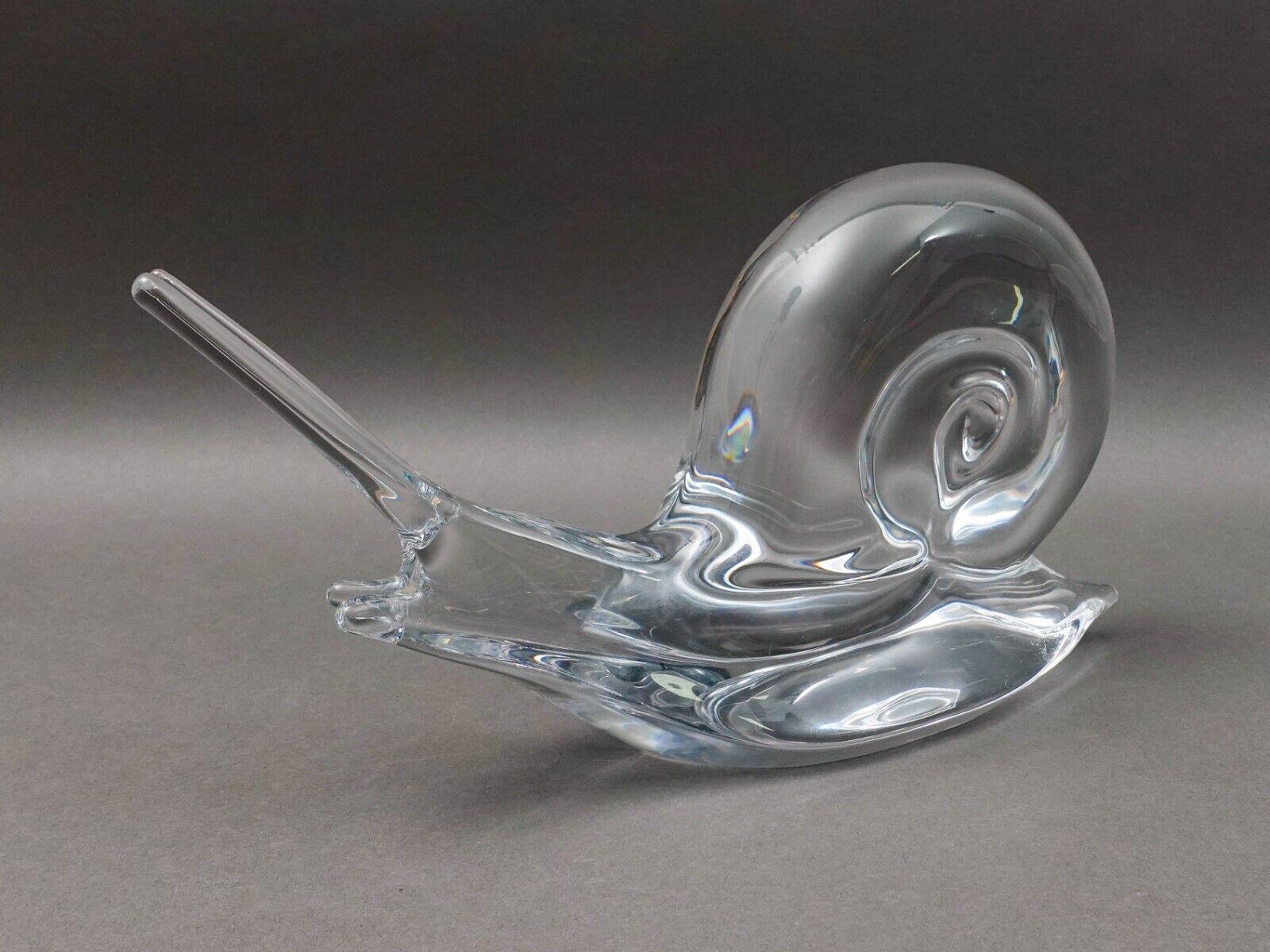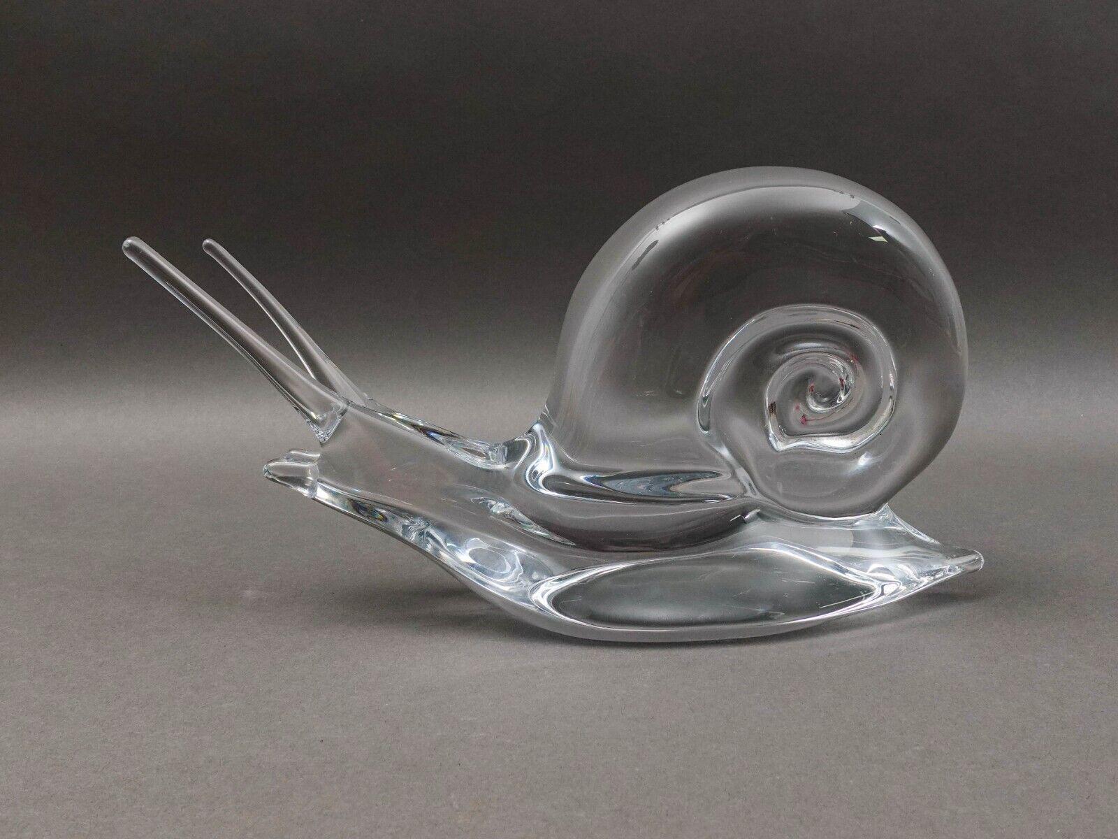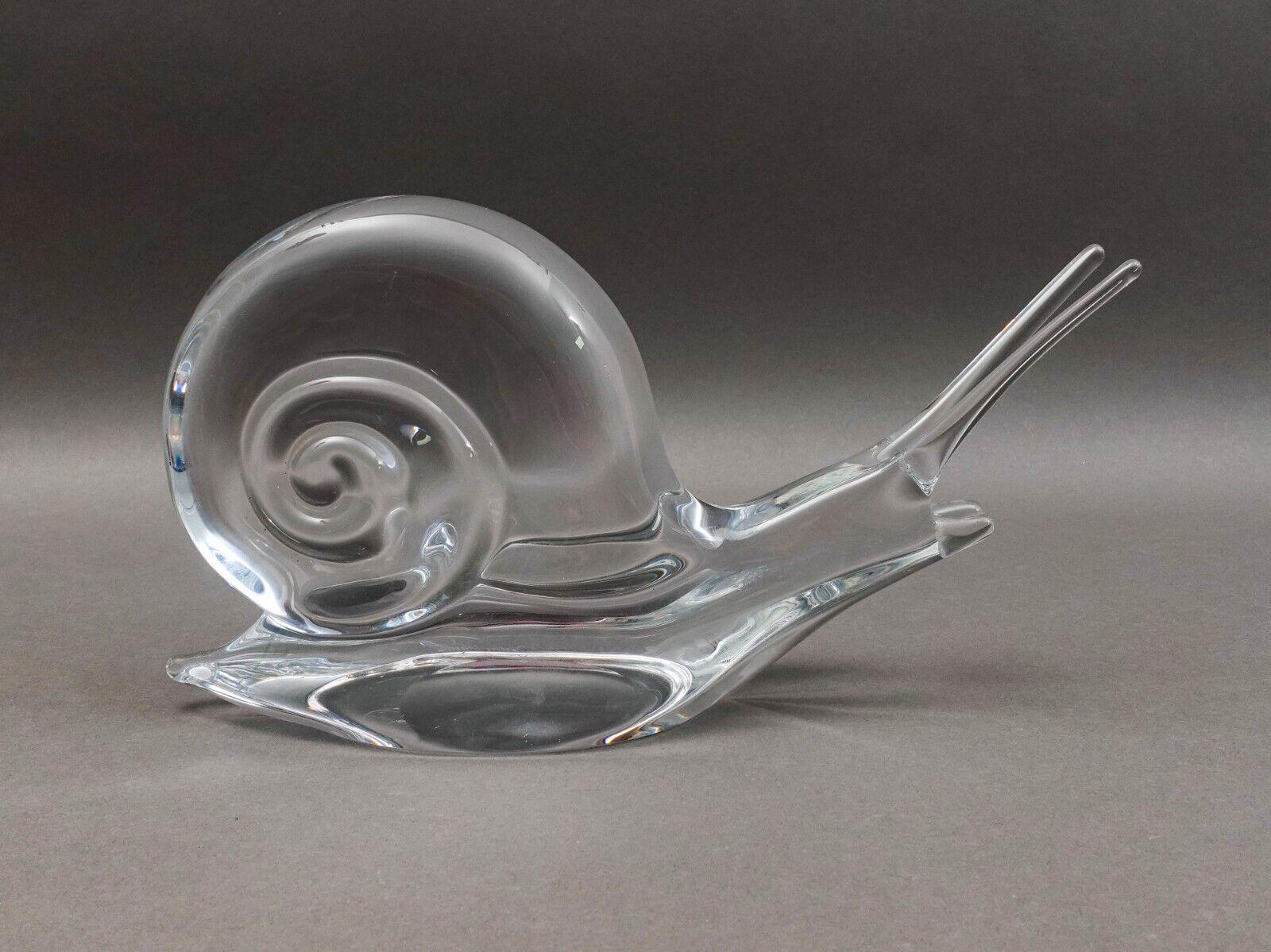 Daum Crystal France Signed Snail Escargot Large Glass Figurine Sculpture.Measures approximately 13 1/8" long, 4" wide, 7" high.Excellent pre-owned condition. Item is being sold as found. No chips, cracks or