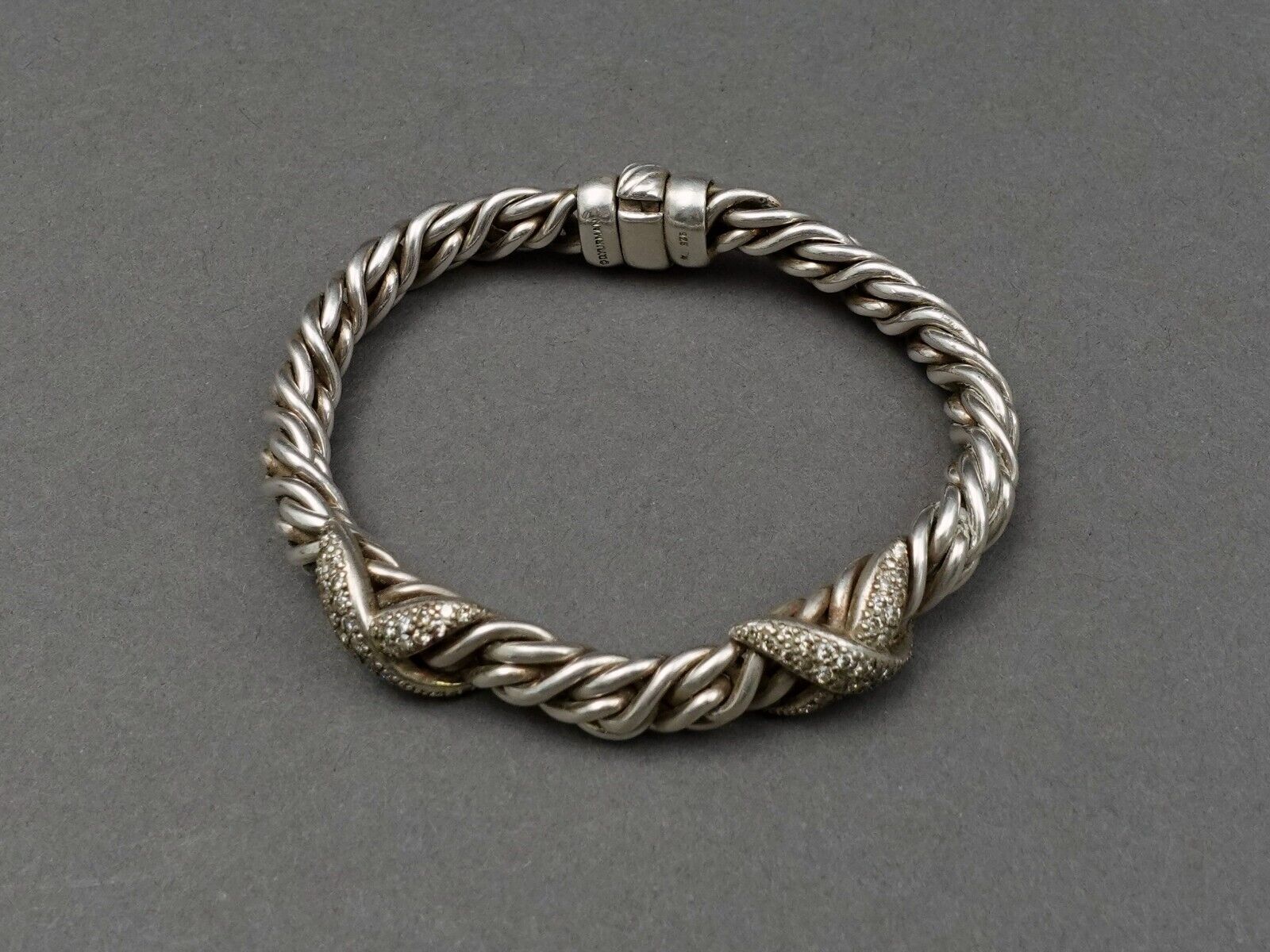 David Yurman Lyrica Double X Pave Diamond Sterling Silver Braided Link Bracelet