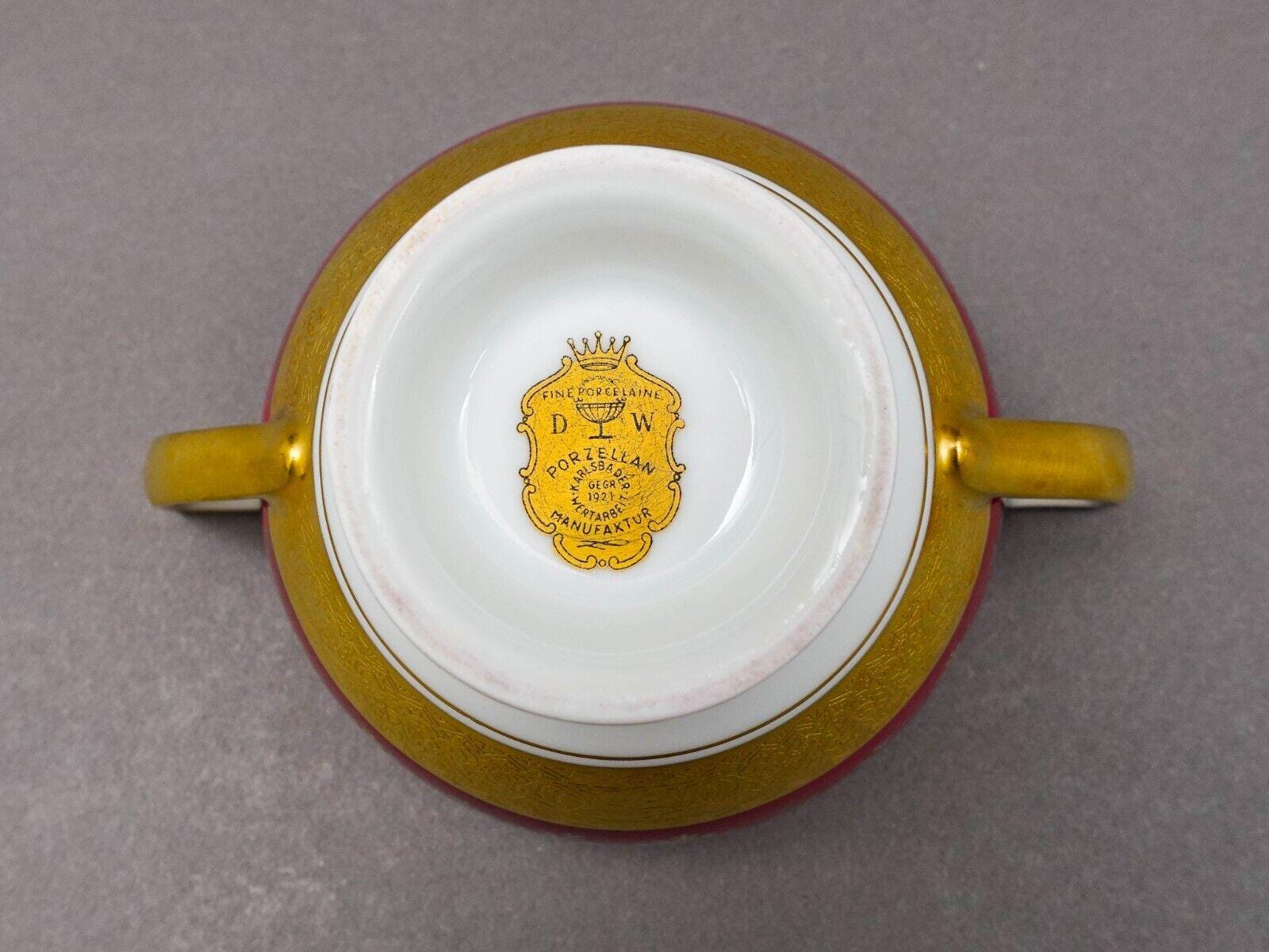 DW Porzellan Karlsbader Wertarbeit Fuchsia Gold Encrusted Creamer Sugar Bowl Set
