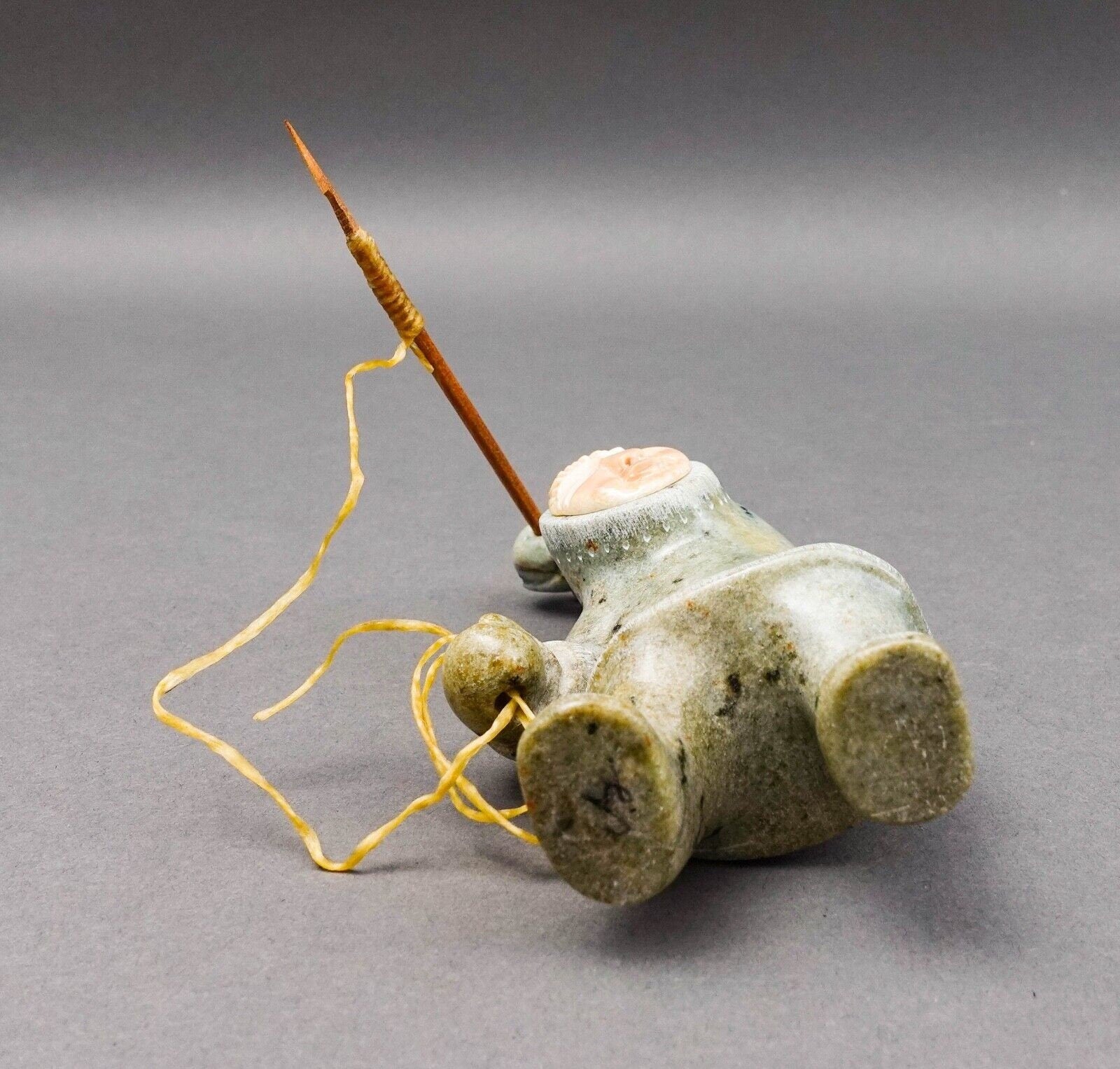 EddIe Lee Alaskan Hand Carved Soapstone Inuit Eskimo Spear Fisherman Art Figurine Sculpture.