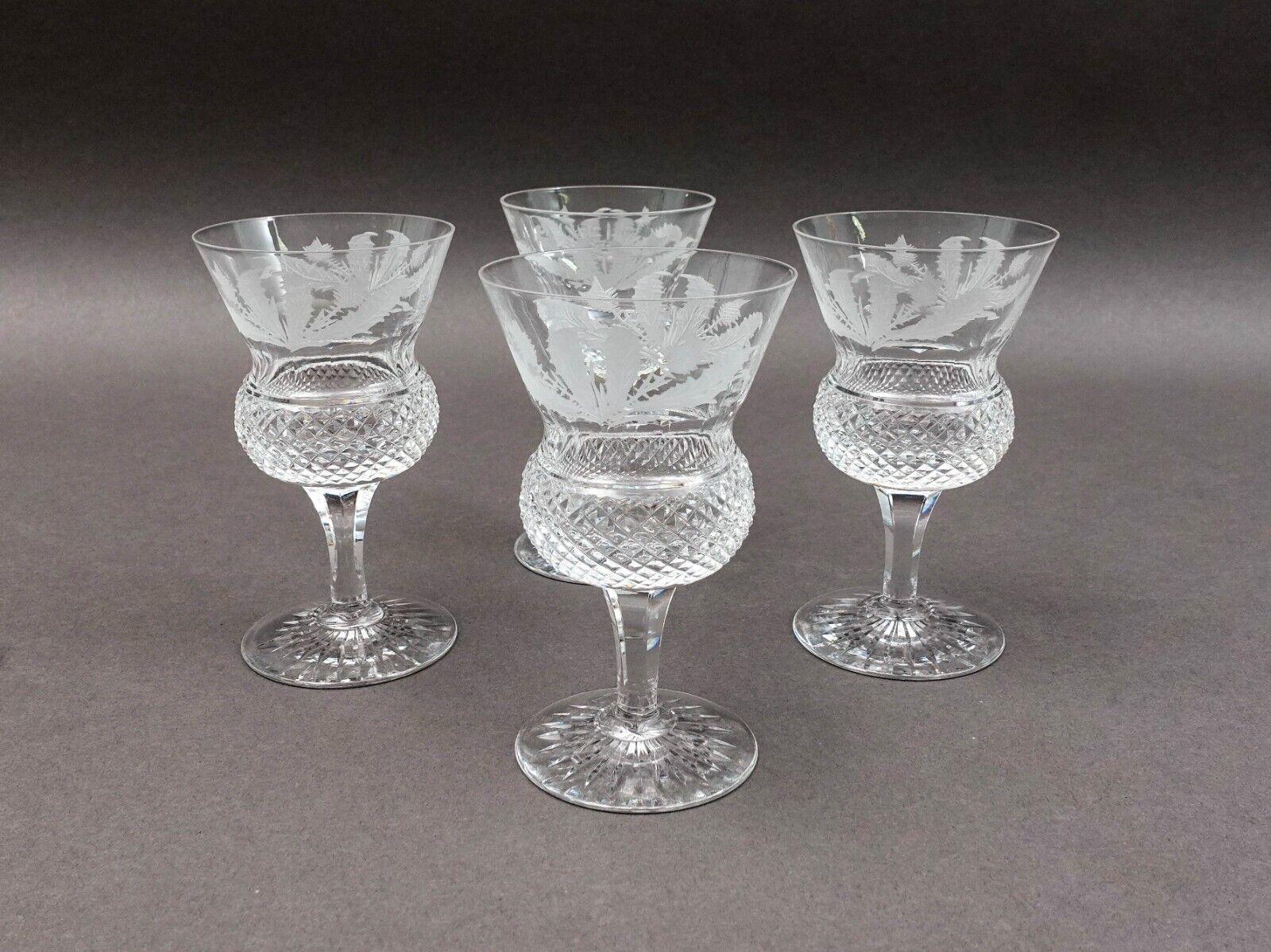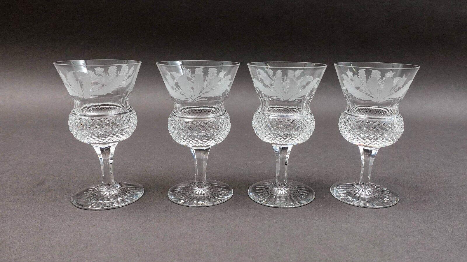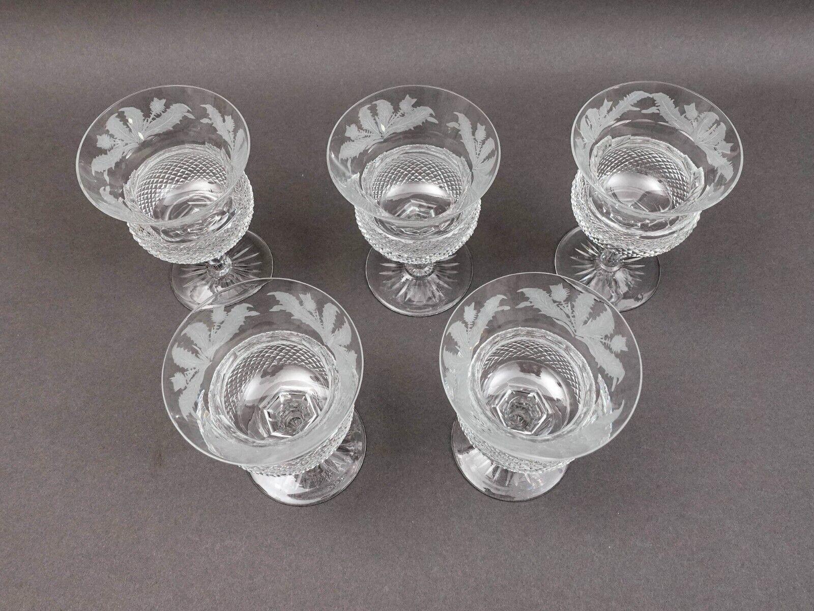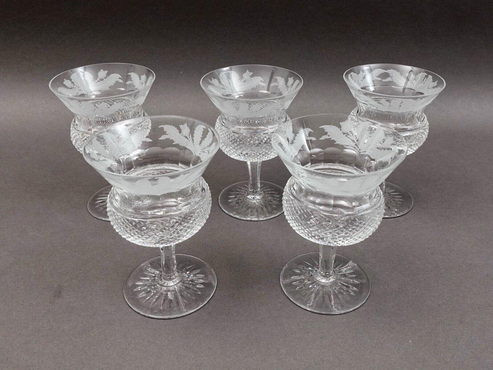Edinburgh Crystal Scotland Thistle Champagne Sherbet Glasses Set Of 5.Measures approximately 3 1/4" diameter, 4 7/8" high.Great pre-owned condition. Item is being sold as found. No chips, cracks or