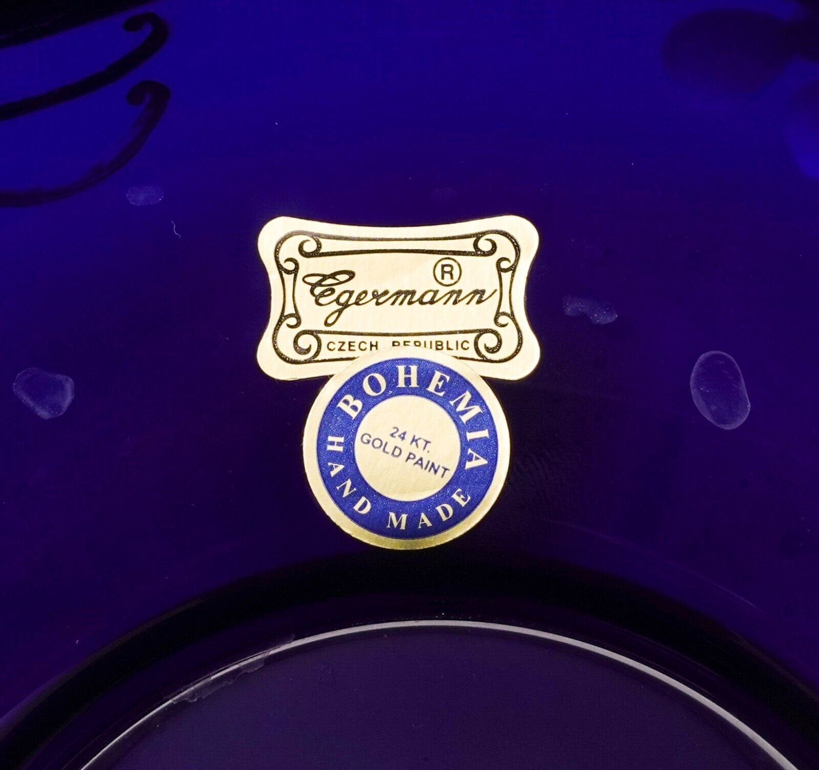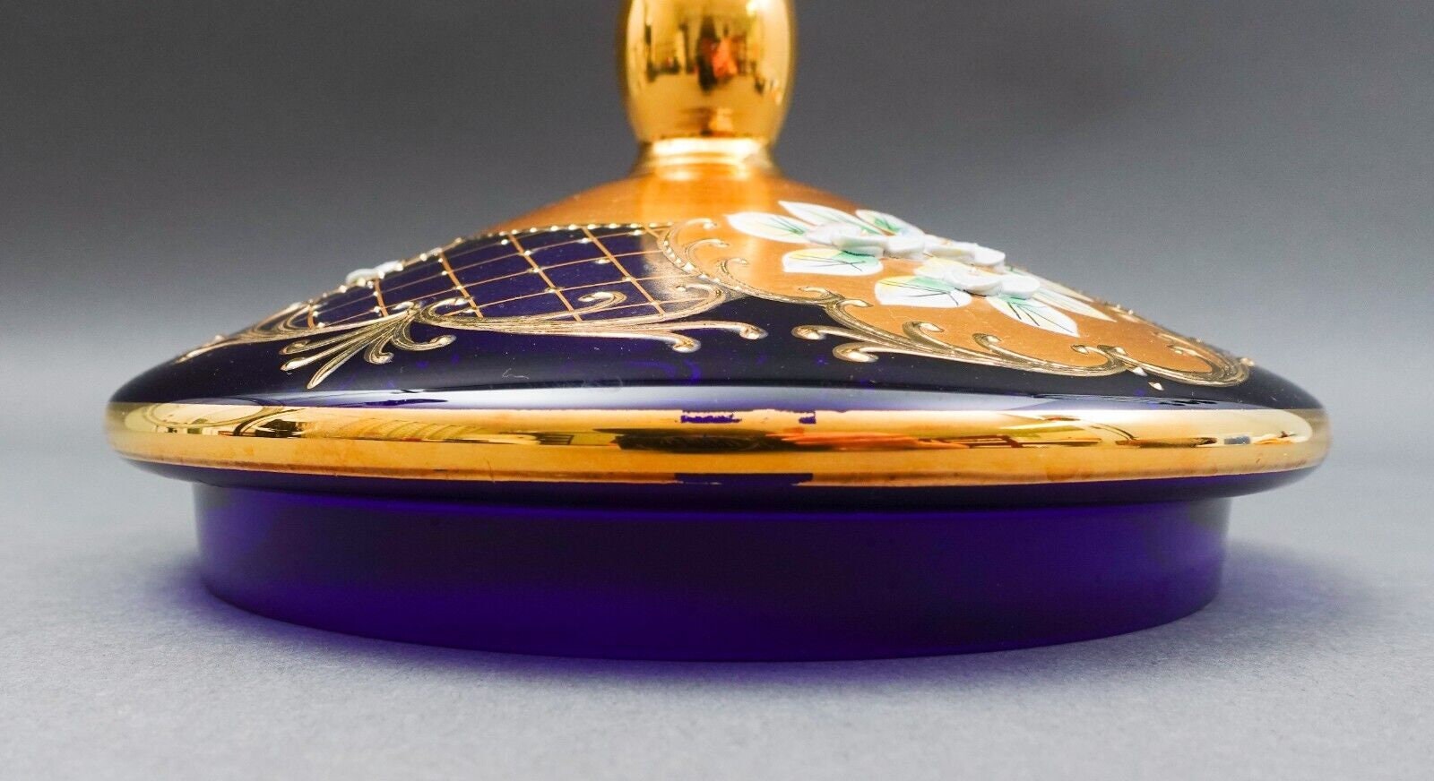 Egermann Czech Bohemian Cobalt Blue 24K Gold Enamel Lidded Bowl Dish Trinket Box