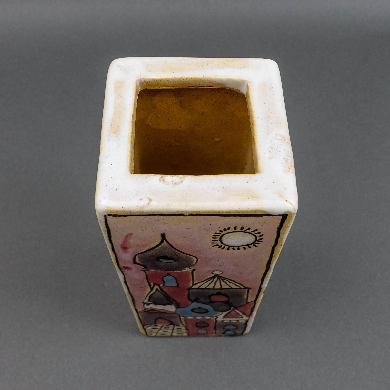 Elio Schiavon (1925-2004) Italy Vintage Mid Century Art Pottery Vase.Measures approximately 3 3/8" long, 3 3/8" wide, 8 3/4" high.Excellent pre-owned condition. Item is being sold as found. No chips, cracks or