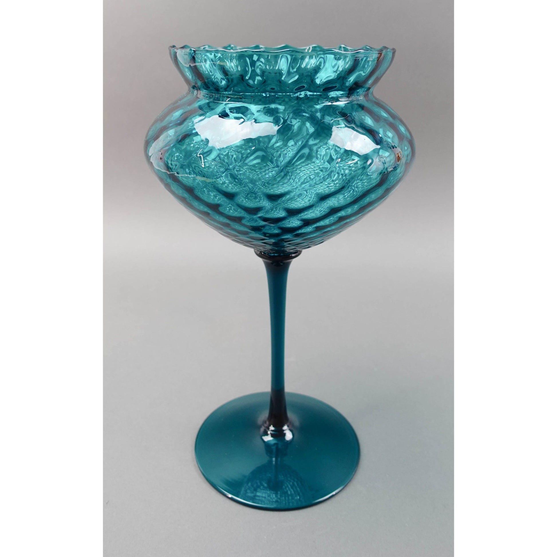 Empoli Italian MCM Teal Optic Art Glass Stem Goblet Bowl Compote Vase.