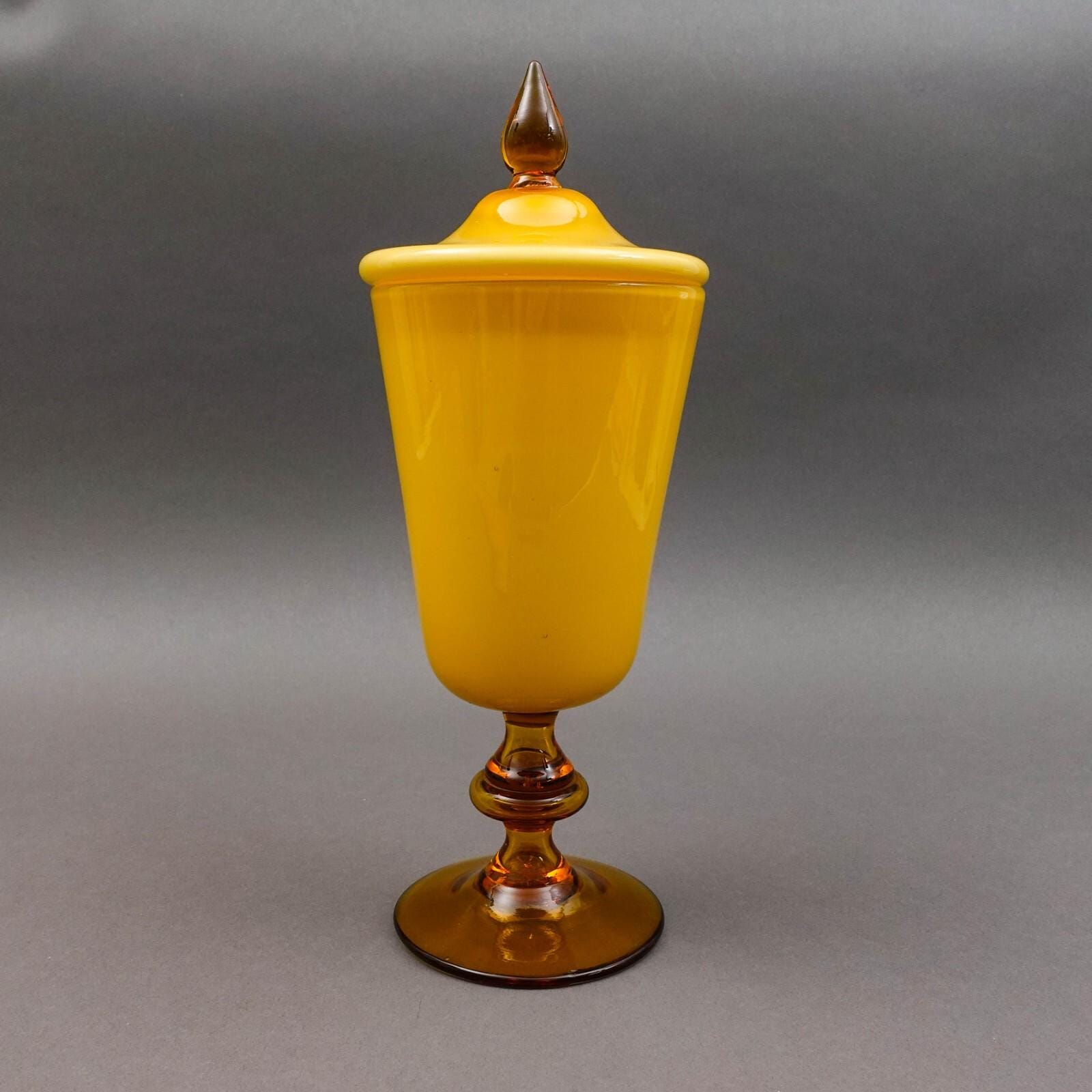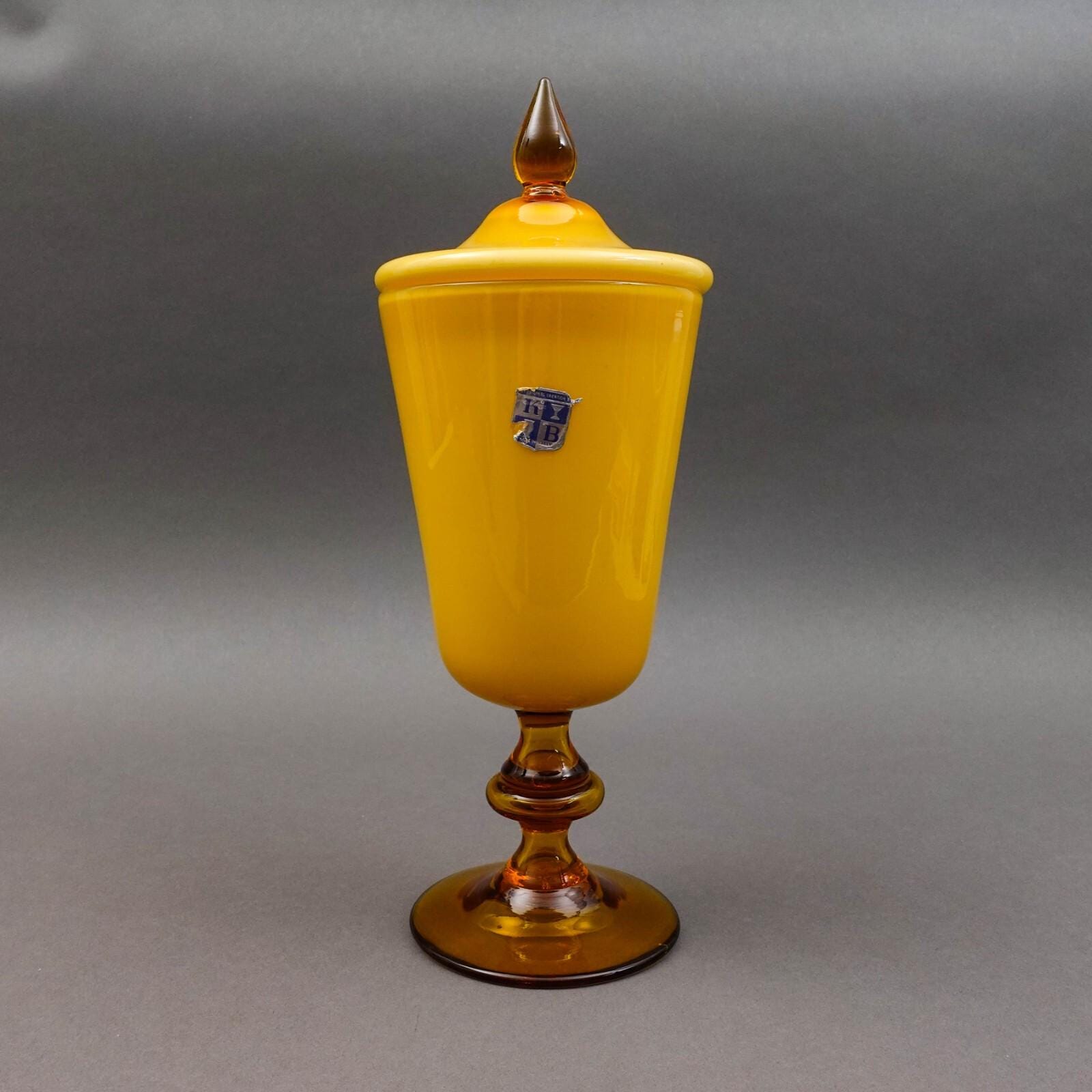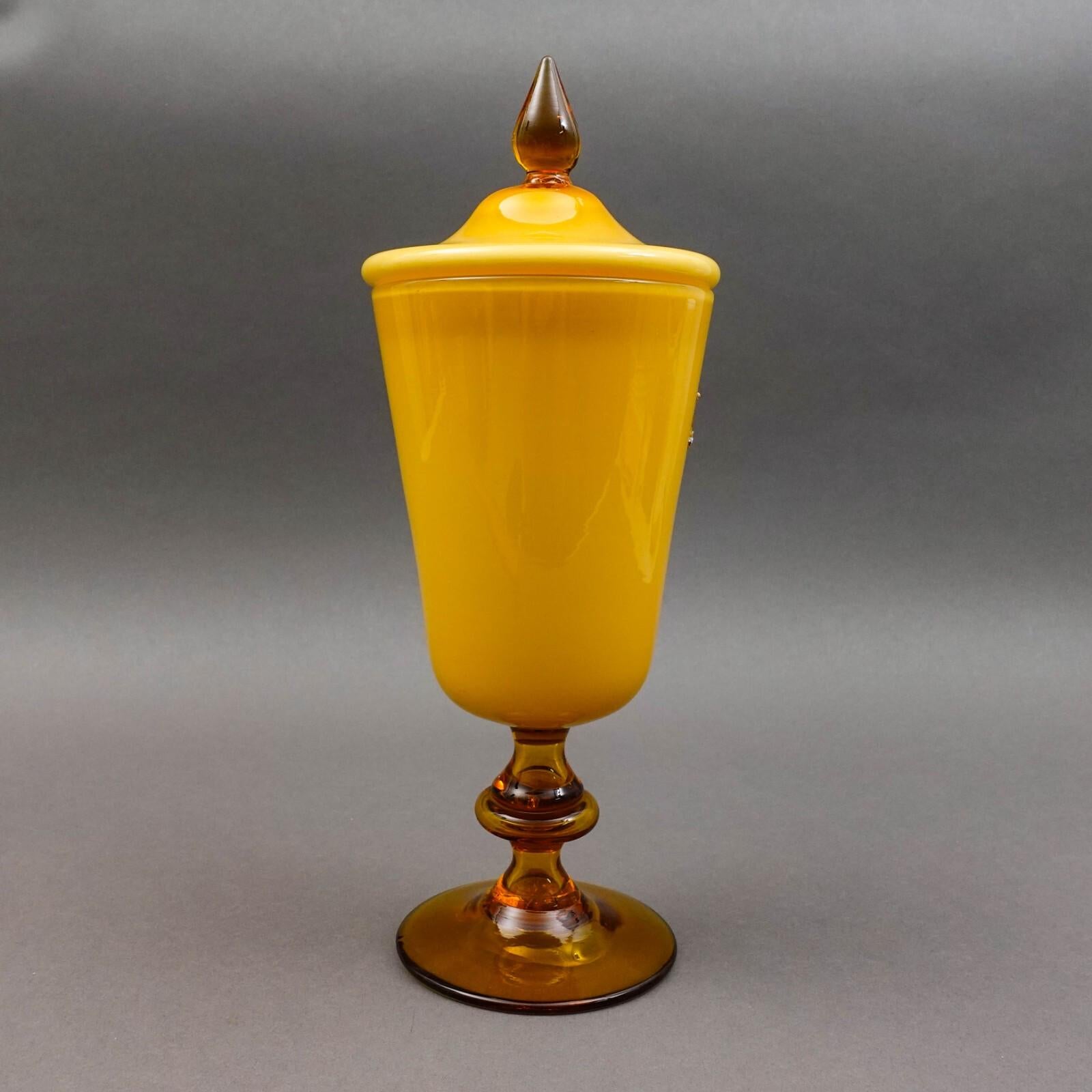 Empoli Italy For KB MCM Amber Cased Art Glass Lidded Apothecary Jar 13 1/2"