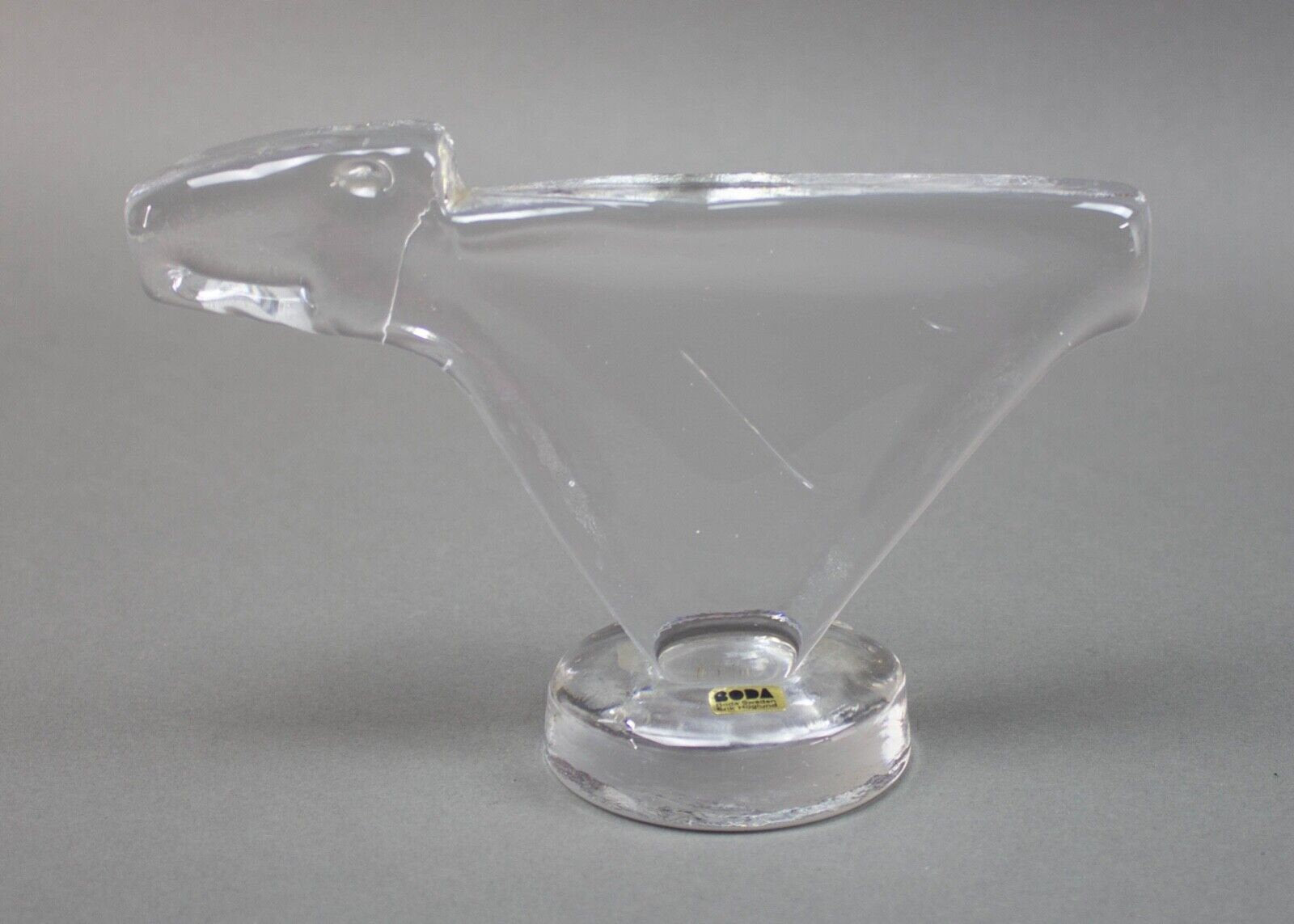 Erik Hoglund Kosta Boda Sweden Abstract Polar Bear Glass Modernist Sculpture