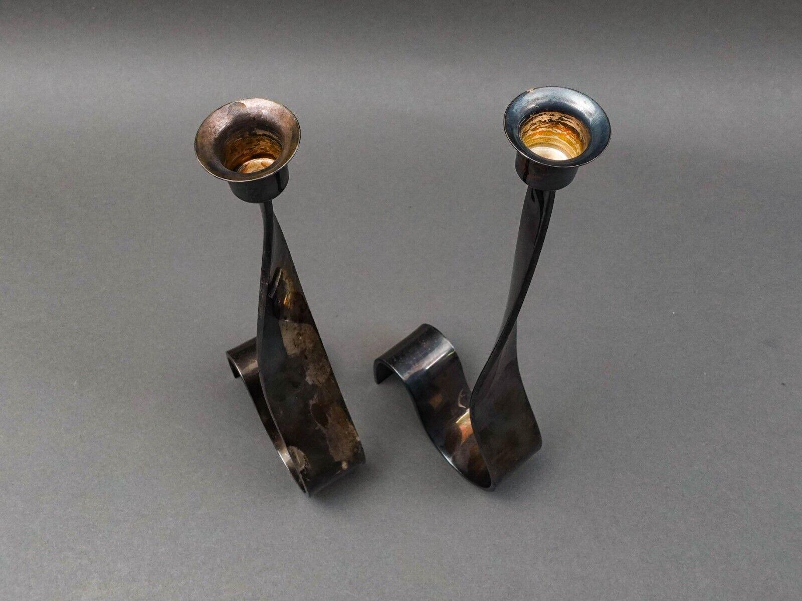 FALA Italy Guido Neist Modernist Silver Plated Candlestick Candle Holder Pair